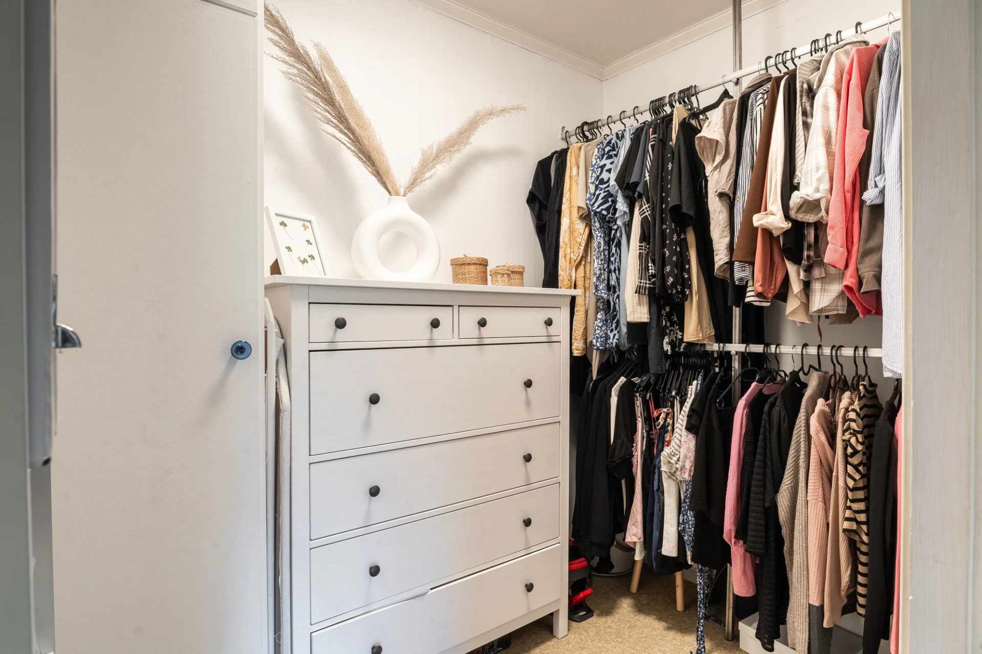 Praktisk klädkammare som idag används som en rymlig walk-in-closet med gott om förvaringsmöjligheter. Rummet kan enkelt nyttjas som hemmakontor eller arbetsrum om så önskas.