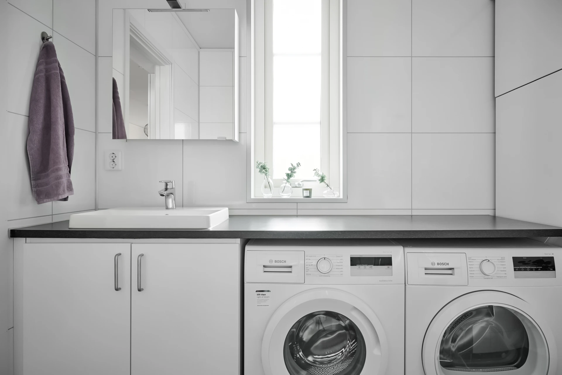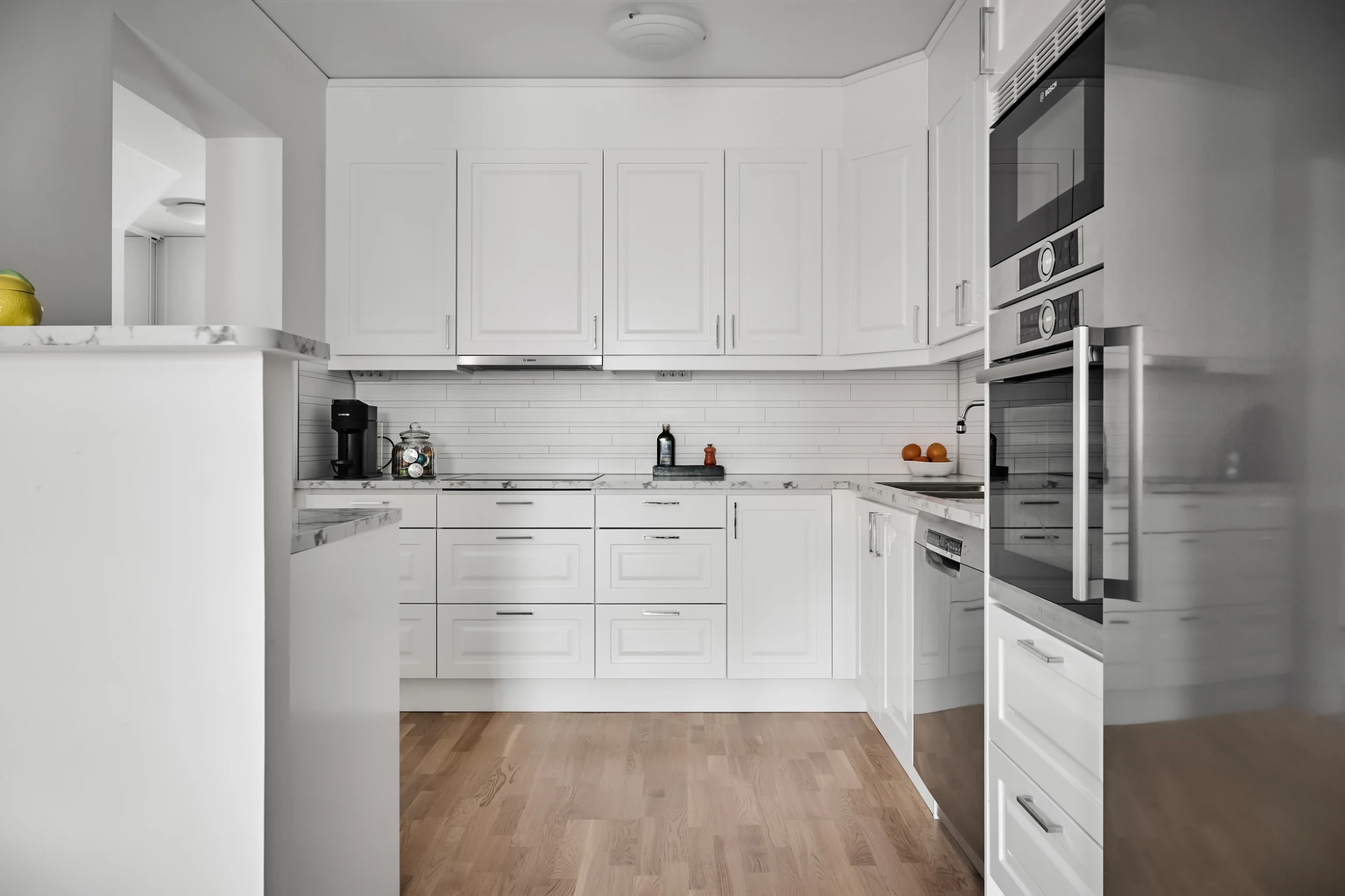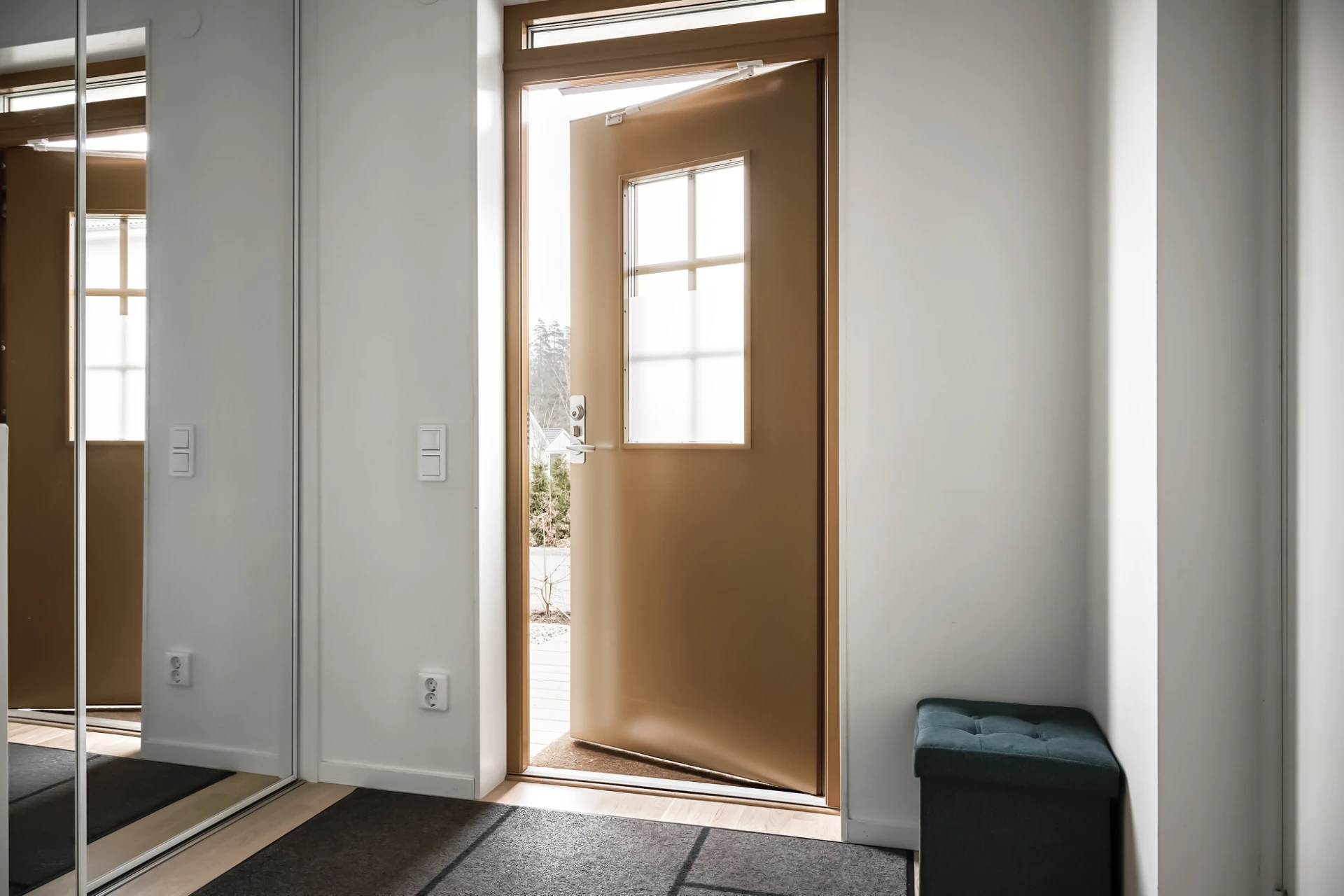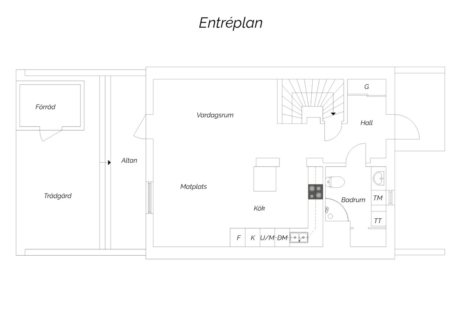 På entréplanet välkomnas du av en ljus och inbjudande atmosfär. Det rymliga vardagsrummet bjuder in till både umgänge och middagar, med plats för en större matgrupp. Köket är modernt och funktionellt med generösa arbetsytor och bra förvaringsmöjligheter – perfekt för den som älskar att laga mat. Här finns även ett stort badrum med en praktisk tvättsektion, vilket gör vardagen smidig och bekväm.
