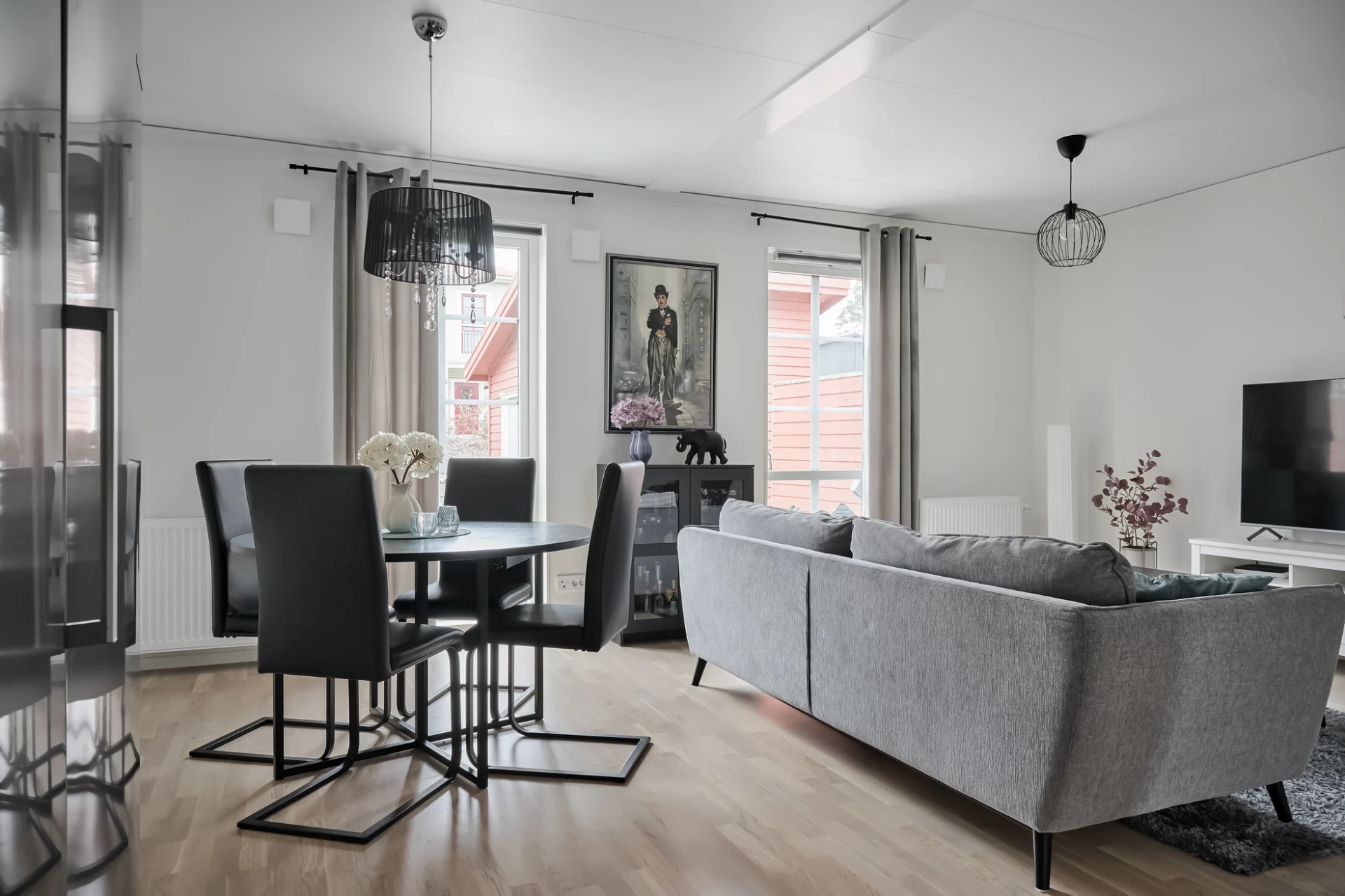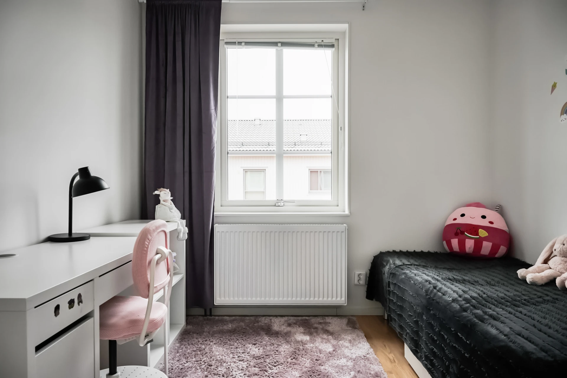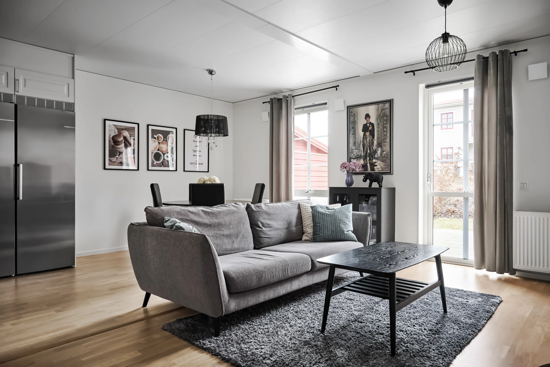 Här erbjuds ett hemtrevligt och välplanerat boende på 107 kvm, fördelat över två plan med genomtänkta ytor och känslan av ett eget hus. Med sina fyra rum och kök är detta ett hem som passar både den växande familjen och dig som önskar gott om plats för umgänge och avkoppling.