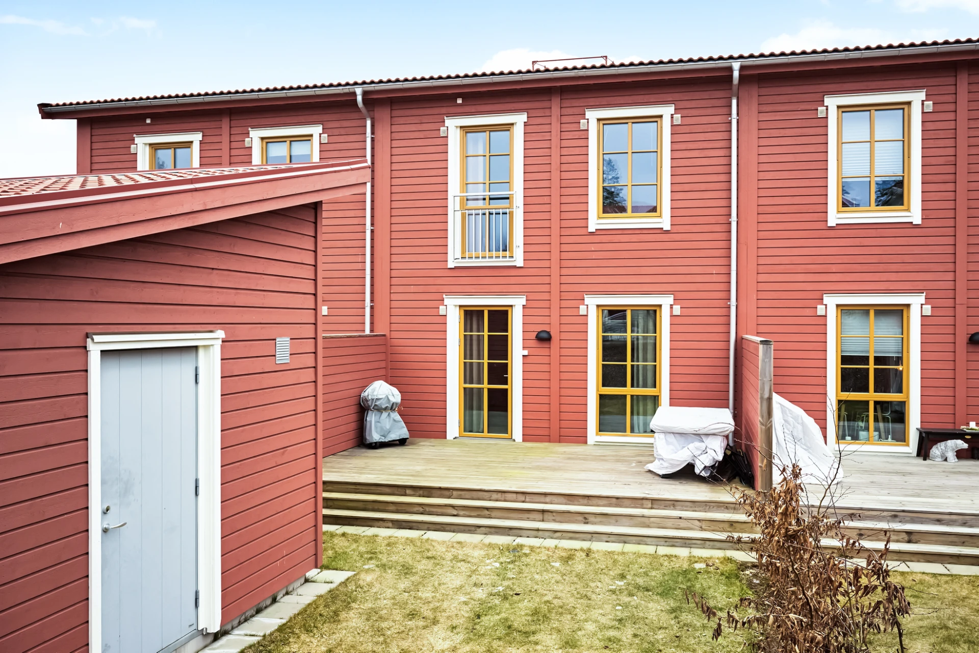 Utomhus väntar en härlig uteplats i soligt västerläge, perfekt för sommarens grillkvällar, trädgårdsprojekt eller avkoppling i kvällssolen. Runt hörnet finns två tillhörande parkeringsplatser, vilket ger extra bekvämlighet i vardagen.