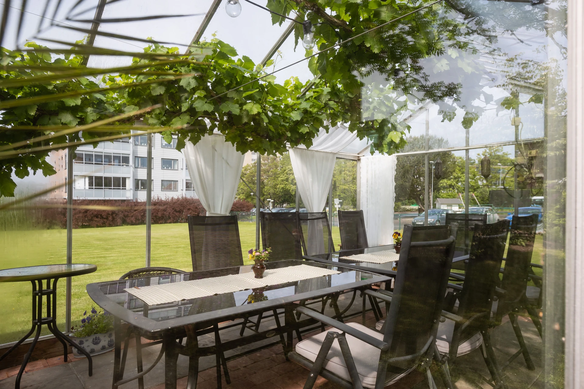 I rosariet kan du strosa runt i lummiga gångar, njuta av dofter, färger och utsikten mot sjön – en plats för både avkoppling och inspiration.
