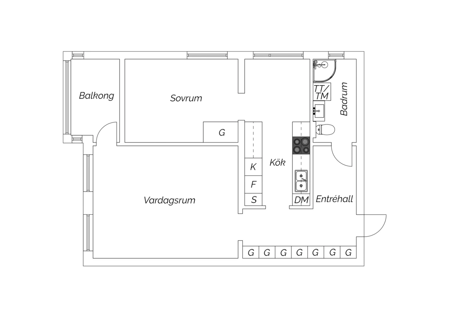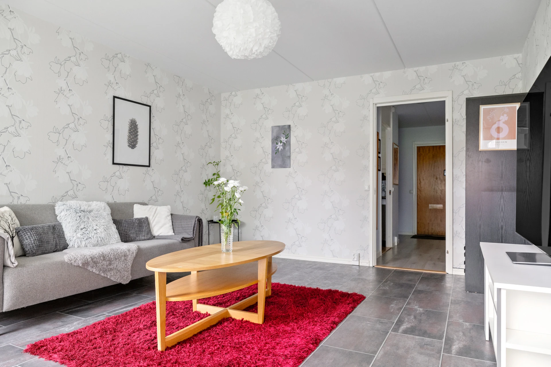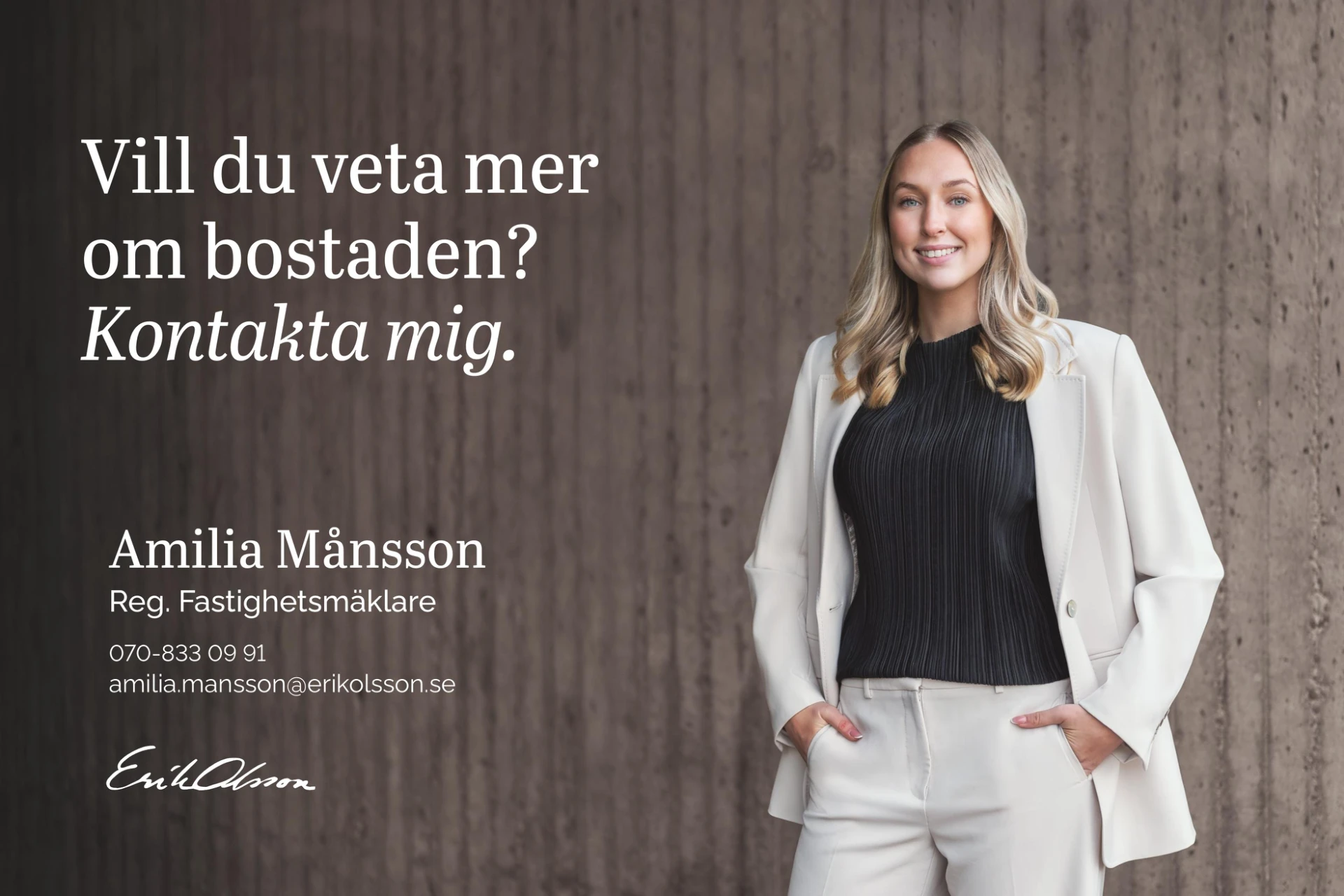 Rymligt och lättmöblerat vardagsrum med stora fönster som släpper in rikligt med ljus. Rummet erbjuder gott om plats för en större, mysig soffgrupp, perfekt för både avkoppling och sociala stunder. Från rummet nås även den inglasade balkongen, en härlig extra yta att njuta av året om.