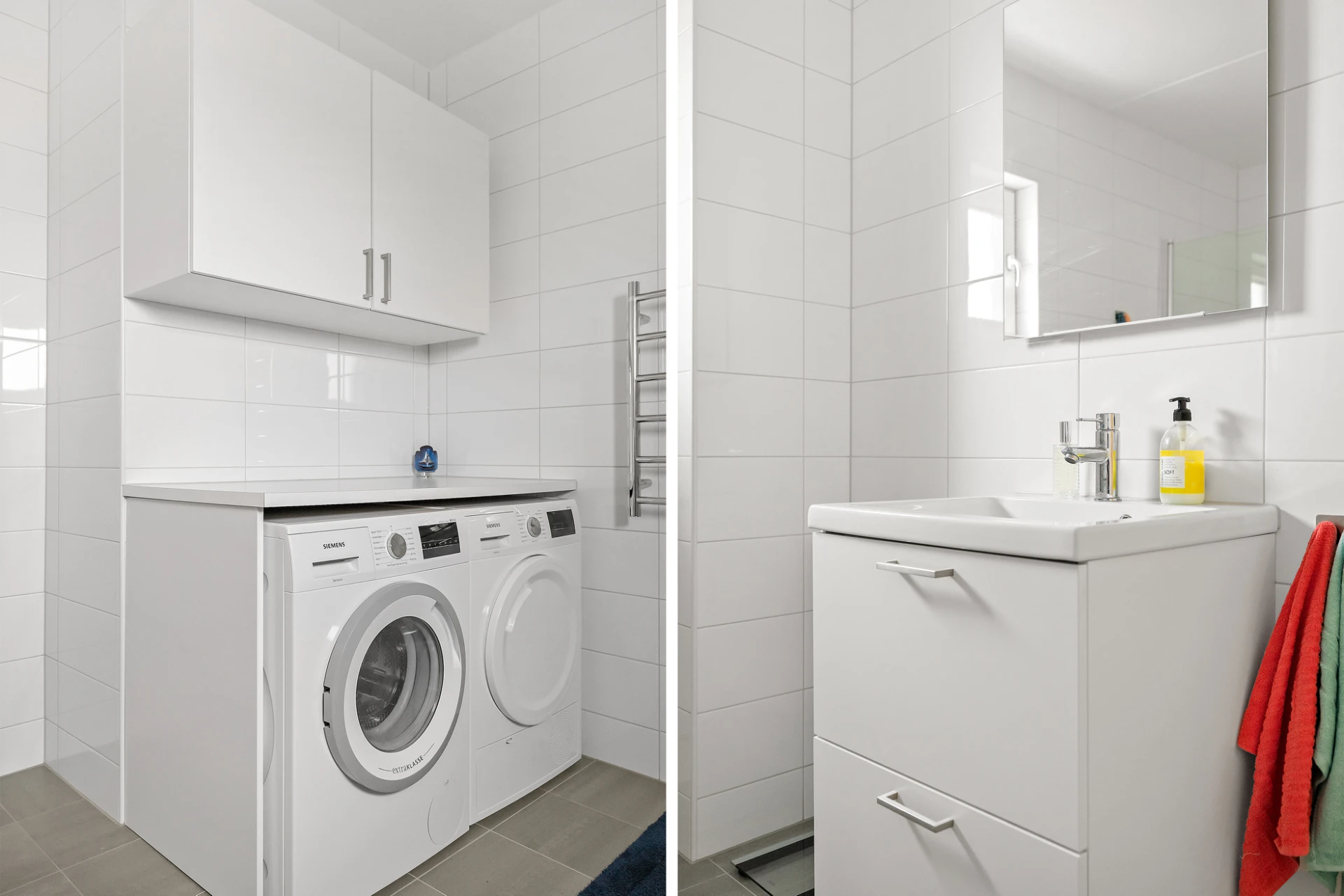 I samtliga lägenheter finns tvättmaskin och torktumlare, ingen gemensam tvättstuga finns. I föreningen finns cykel- och barnvagnsrum.