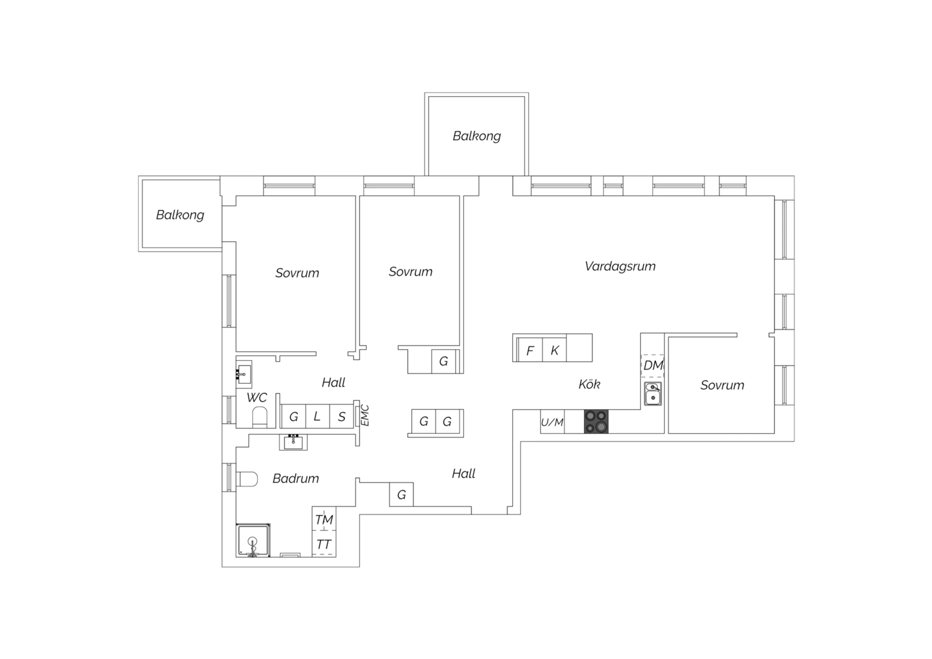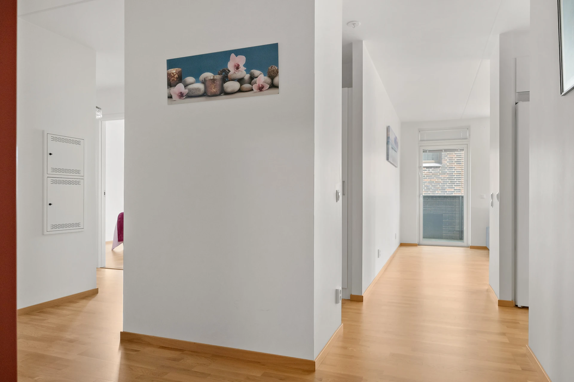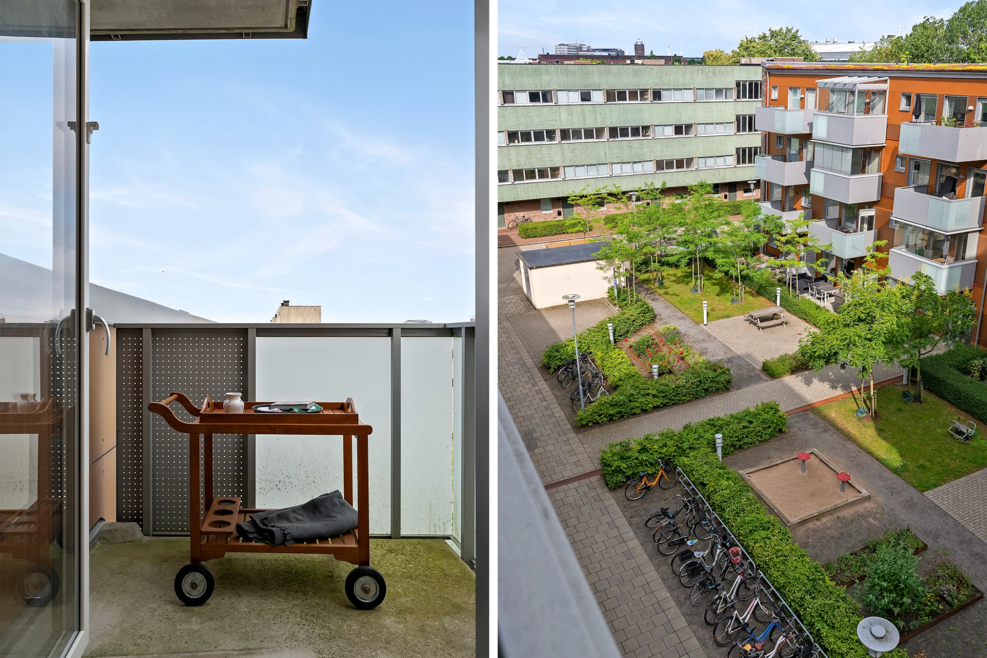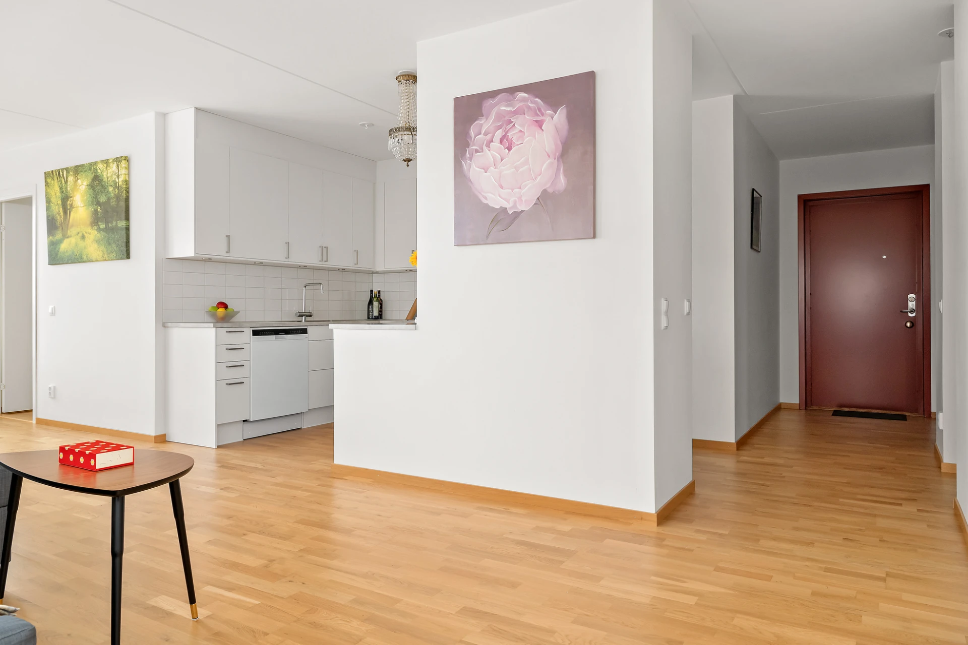 Välkomna till ett hem som överraskar och imponerar – en underbar fyrarummare med dubbla balkonger och ett genomgående ljusflöde från hela tre väderstreck som skapar en otroligt rymd. Högt upp i huset, med hiss hela vägen upp, bor vi på ett lugnt och upphöjt läge med utsikt över omgivningen. Bostadens hjärta består av en öppen yta med vardagsrum, kök och matplats i ett - omgivet av asymmetriska fönster som skapar karaktär. Helt enkelt den självklara samlingsplatsen där vi gärna bjuder in till härliga stunder med nära och kära. Det genomgående köket går i tidlöst vitt och bjuder på full utrustning om delvis inbyggda vitvaror samt kyl och frys i fullhöjd - en fröjd för den matlagningsglade. Från vardagsrummet når vi en av bostadens två balkonger och den andra balkongen, i sydväst, nås från master bedroom lugnt beläget mot gården. Som om det inte vore nog har vi här ytterligare två sovrum, både badrum med tvättutrustning och gäst-wc i ljusa utföranden och lyxen om fönster. Lägg därtill kompletta ljusa ytskikt i sampel med klassisk parkett som utgör den perfekta basen att sätta vår egen prägel!