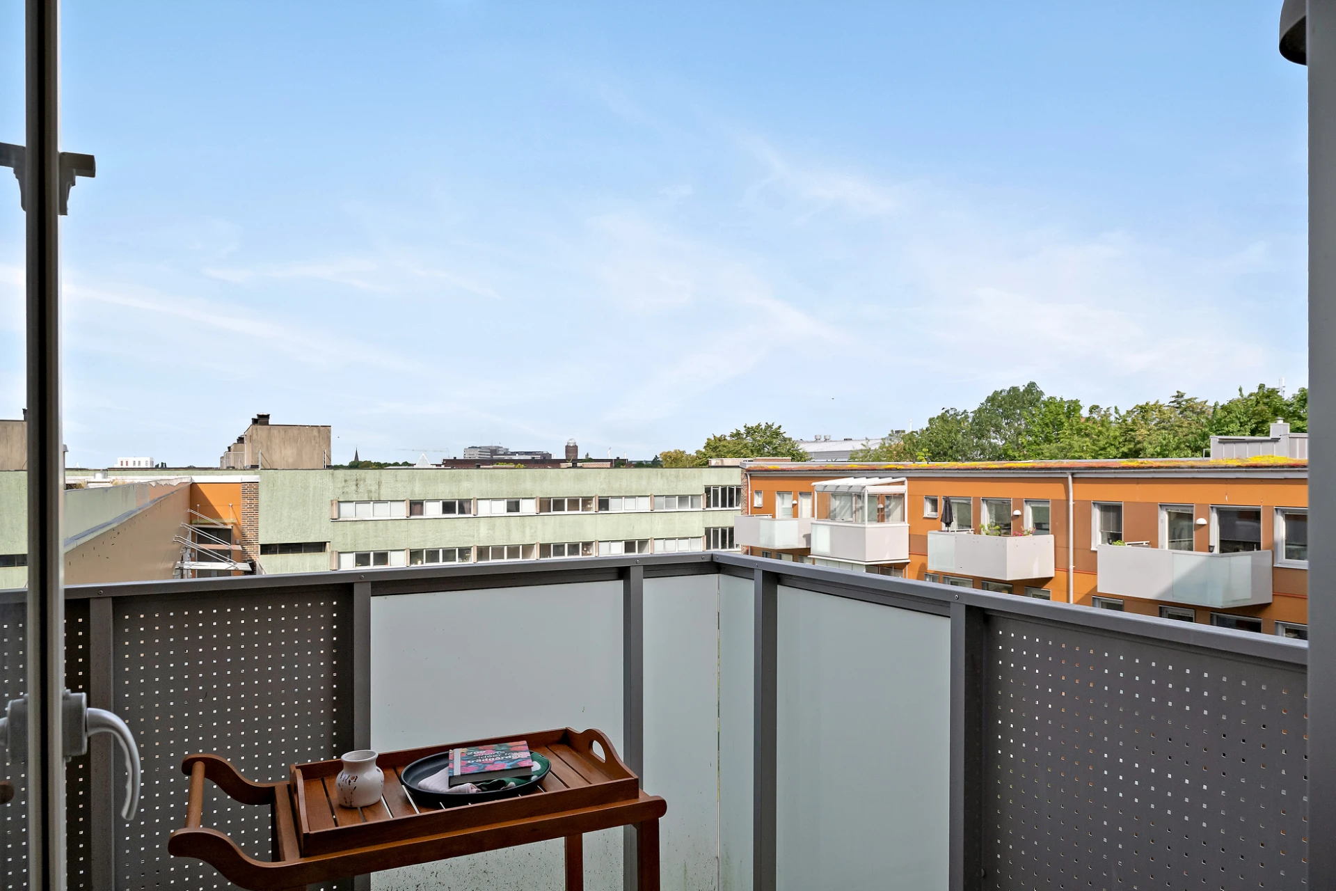Högt belägen & ljus gavelfyra med dubbla balkonger!
