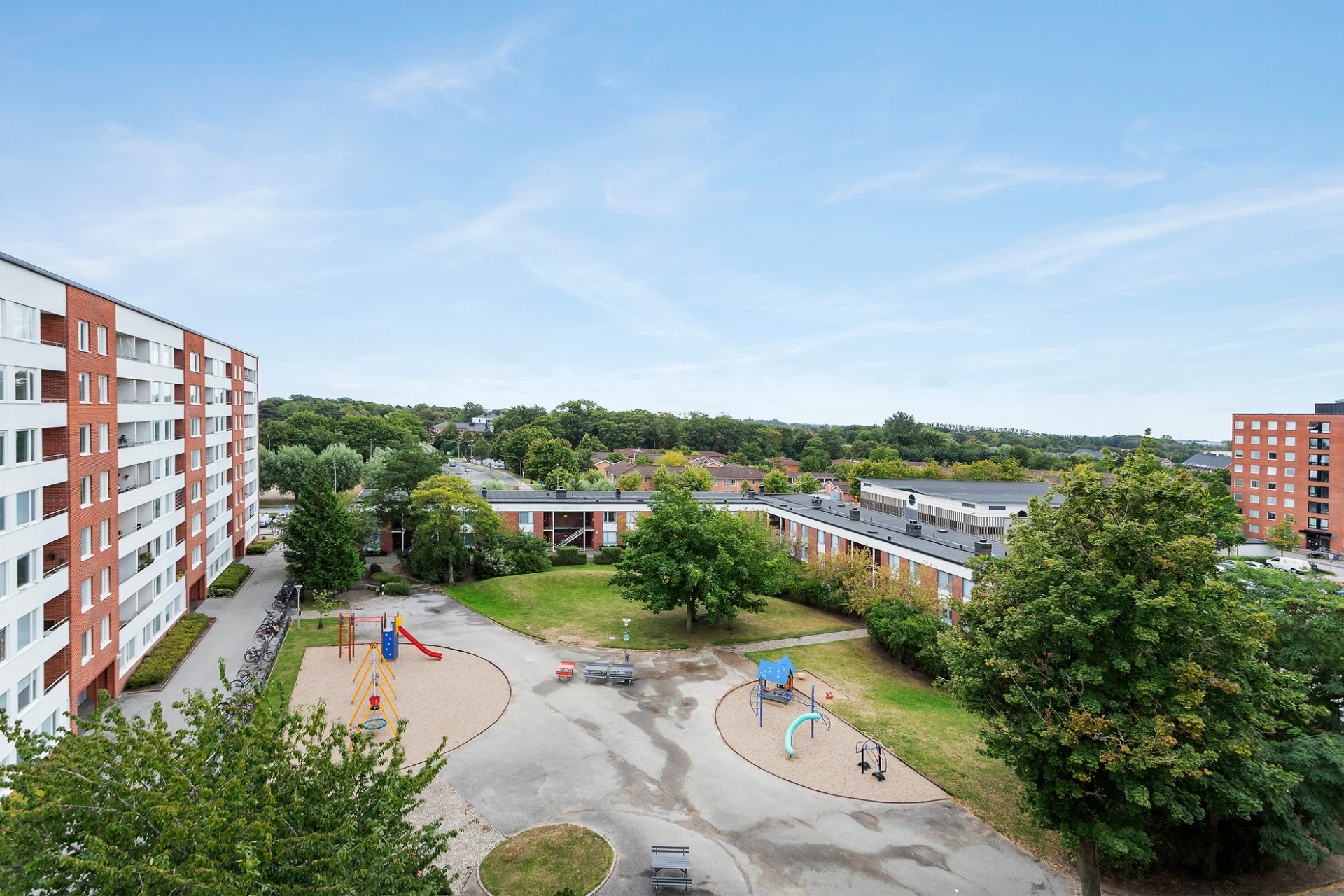 På populära Klostergården kan vi nu presentera en av de välplanerade och ljusa gavellägenheterna med balkong i perfekt söderläge och en fri, härlig vy. Vi tar hissen upp till sjunde våningen och möts av en hemtrevlig atmosfär och stora fönsterpartier i flera väderstreck som fyller bostaden med dagsljus från olika håll.