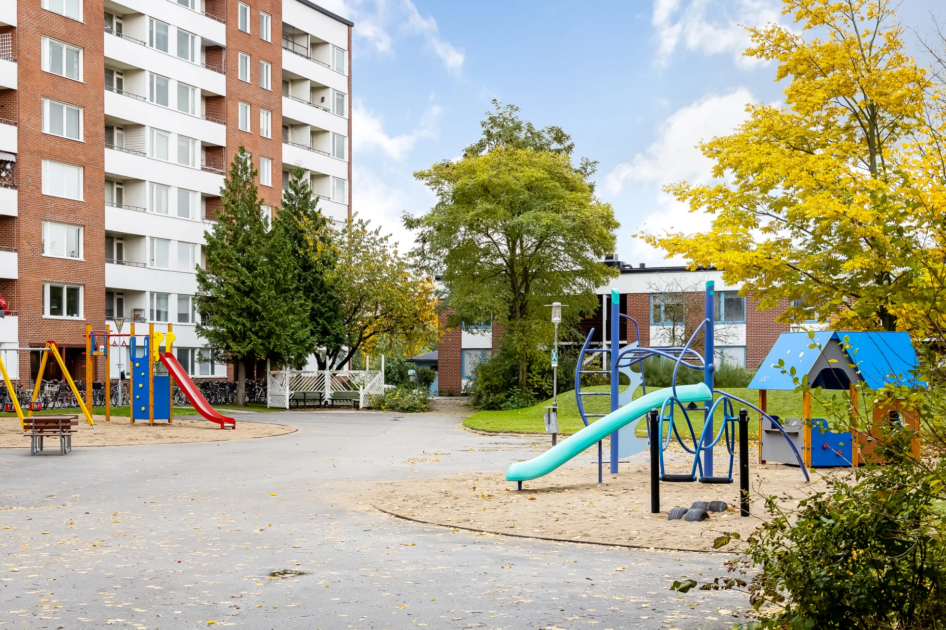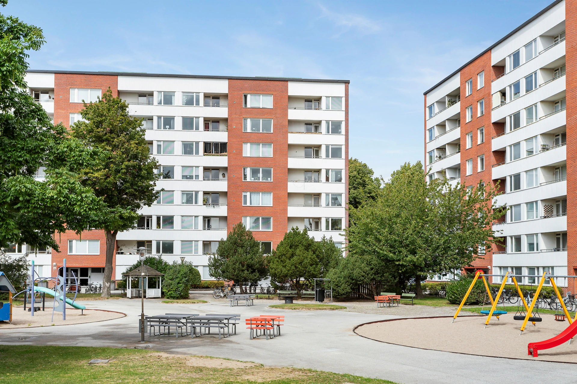 Här bor vi i en välskött förening med stabil ekonomi, bilfria innergårdar och lekplats som gör området barnvänligt och lugnt. Området är omgivet av grönska, med närhet till matbutiker, skolor och goda kommunikationer med såväl buss som tåg. Med en kort cykeltur når vi centrum med sitt stora utbud av butiker, restauranger och nöjen. Varmt välkommen på visning!