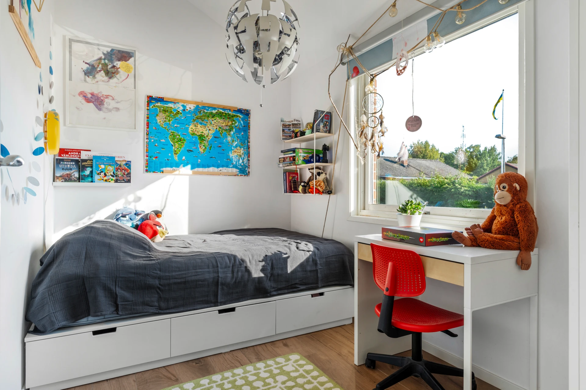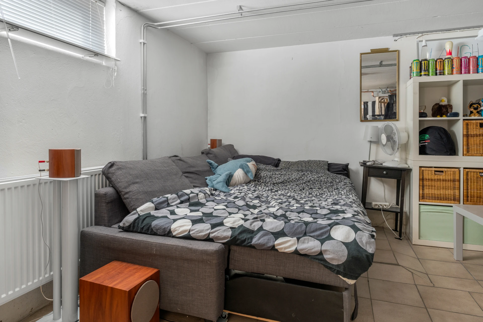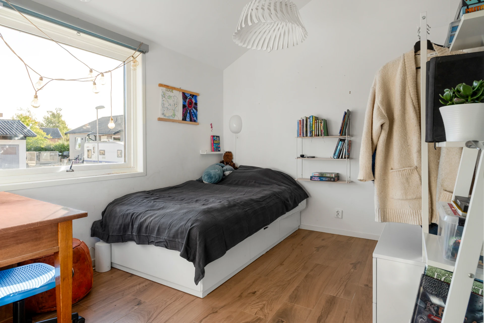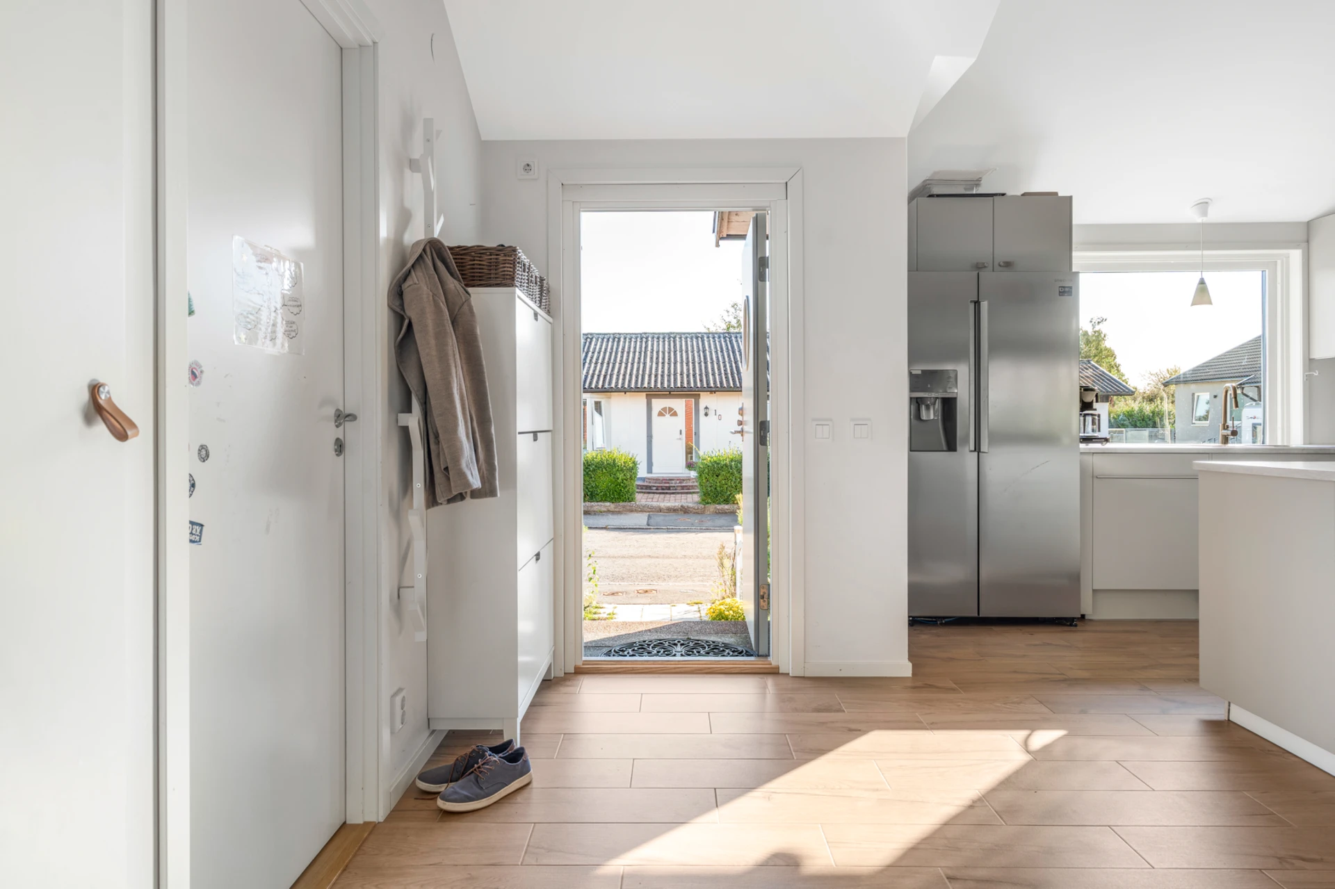 Klinker på golvet med vattenburen golvvärme och vitmålade väggar. Bra avhängningsmöjlighet och förvaring i inbyggd garderob.