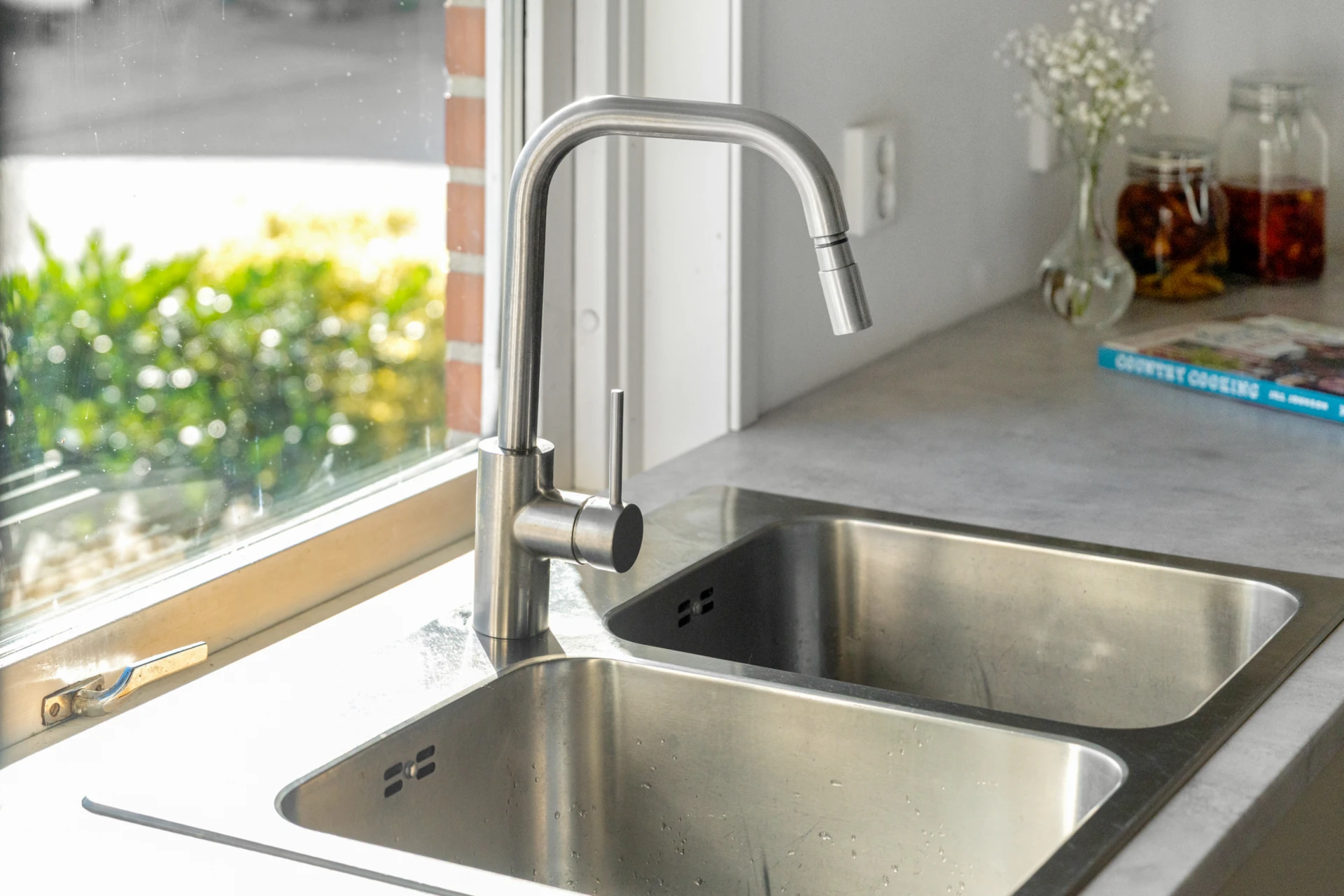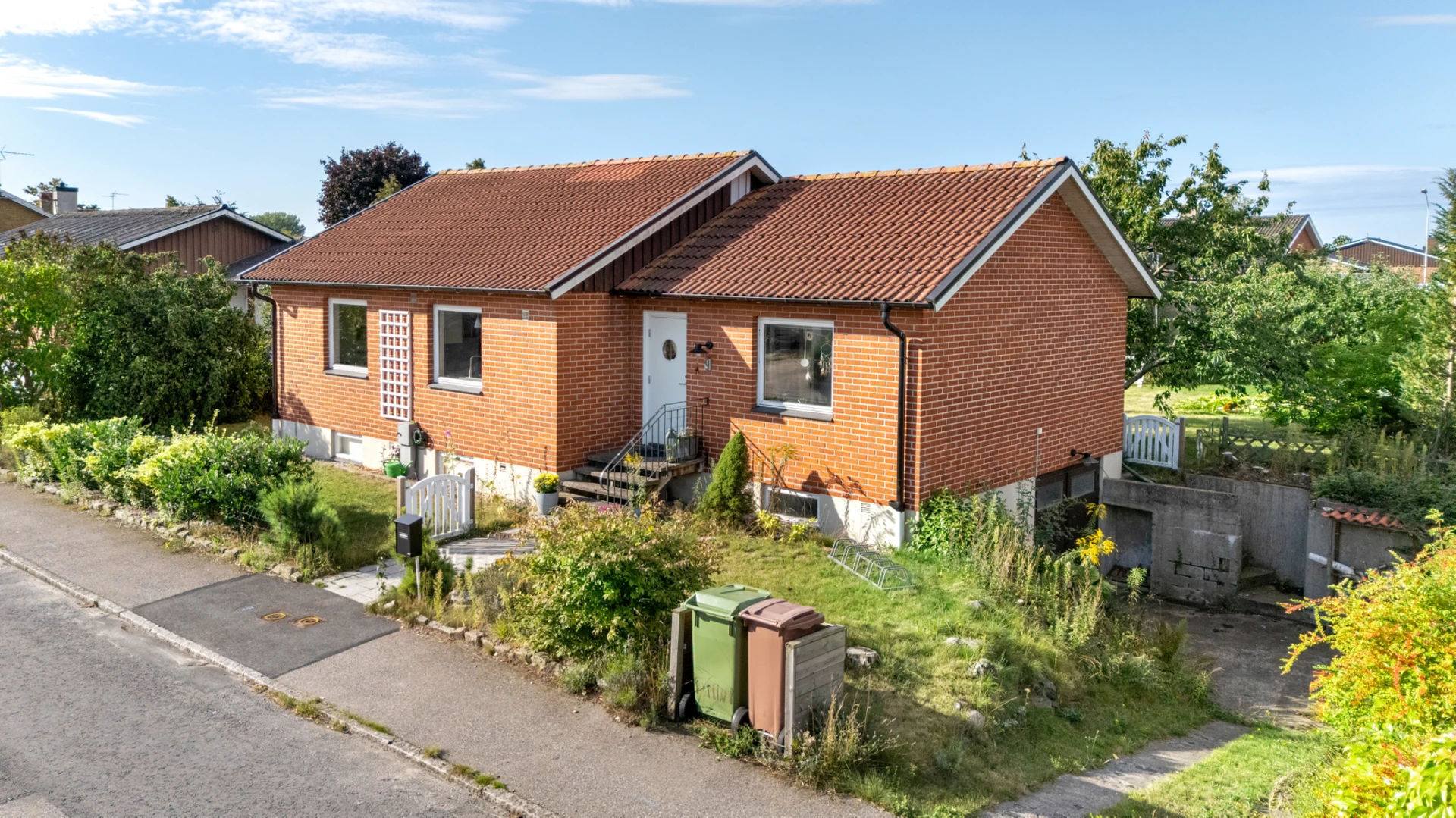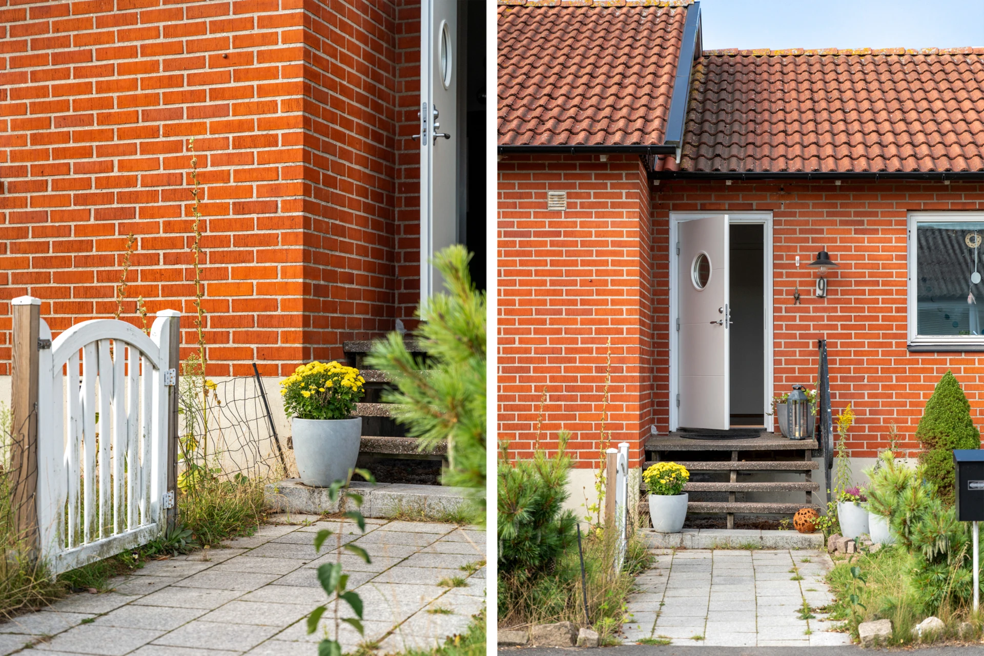 Klinker på golvet och vitmålade väggar.