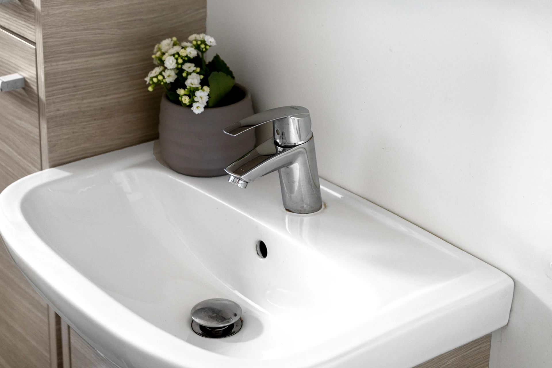 2025 monterades nytt handfat i badrum med dusch.