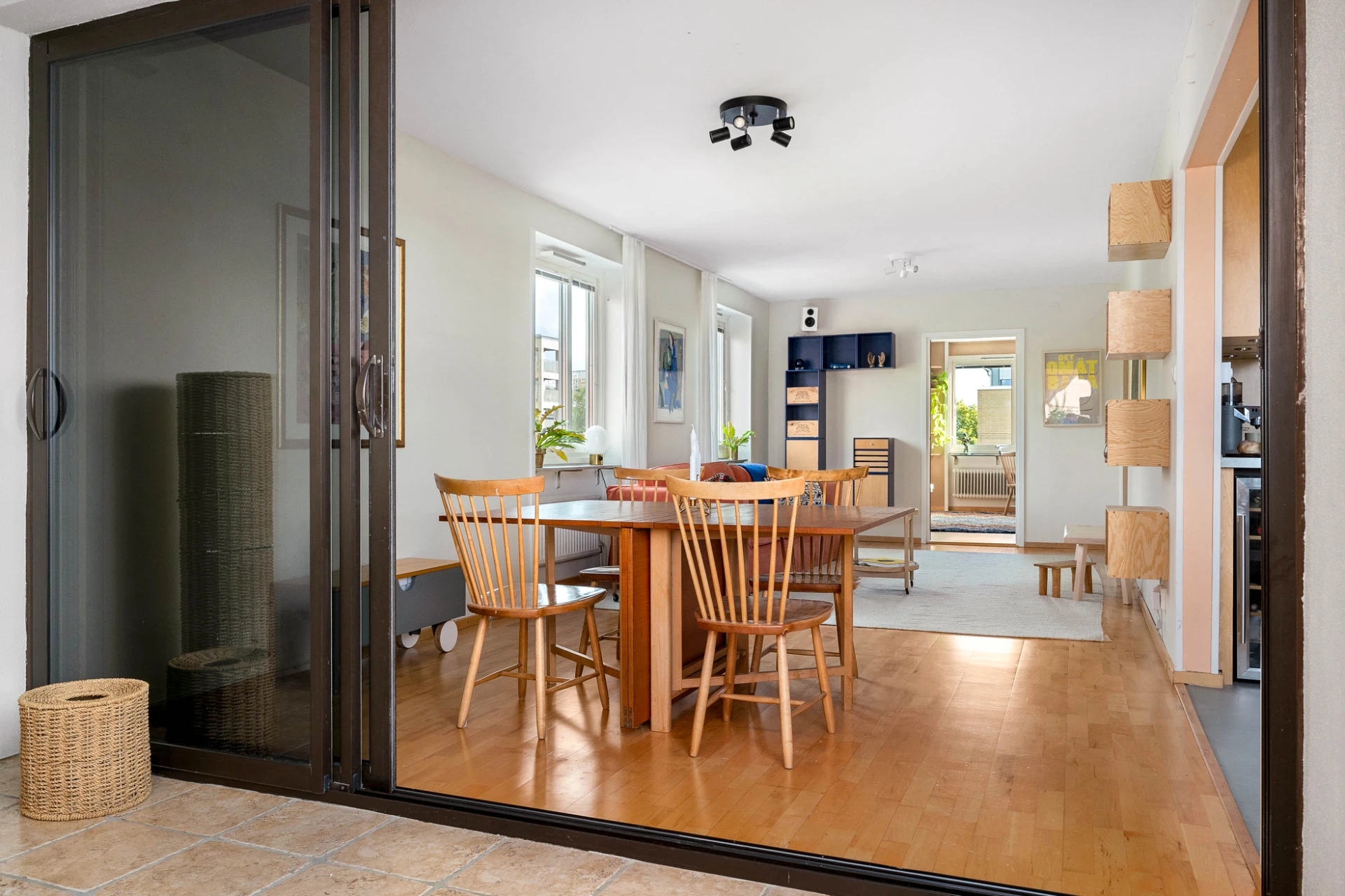 Nu har vi nöjet att presentera en ljus och välplanerad bostad med fönster i hela tre väderstreck - något som ger ett härligt ljusinsläpp hela dagen. Lägenheten erbjuder rymliga sovrum med gott om förvaring samt ett luftigt vardagsrum med plats för både soffhörna och matsalsgrupp. Den inglasade balkongen är en av föreningens största, vilket ger generösa möjligheter till varierad och trivsam möblering - perfekt för både avkoppling och sociala tillställningar. Här finns alla bekvämligheter du kan önska: diskmaskin, tvättmaskin, torktumlare samt en integrerad vinkyl i köket som ger det lilla extra. Läget är svårslaget - med grönområden, matbutiker, caféer och universitetet på gångavstånd. Goda kommunikationer finns precis utanför dörren, och stadskärnan når du på bara några minuter med cykel. Varmt välkommen på visning!