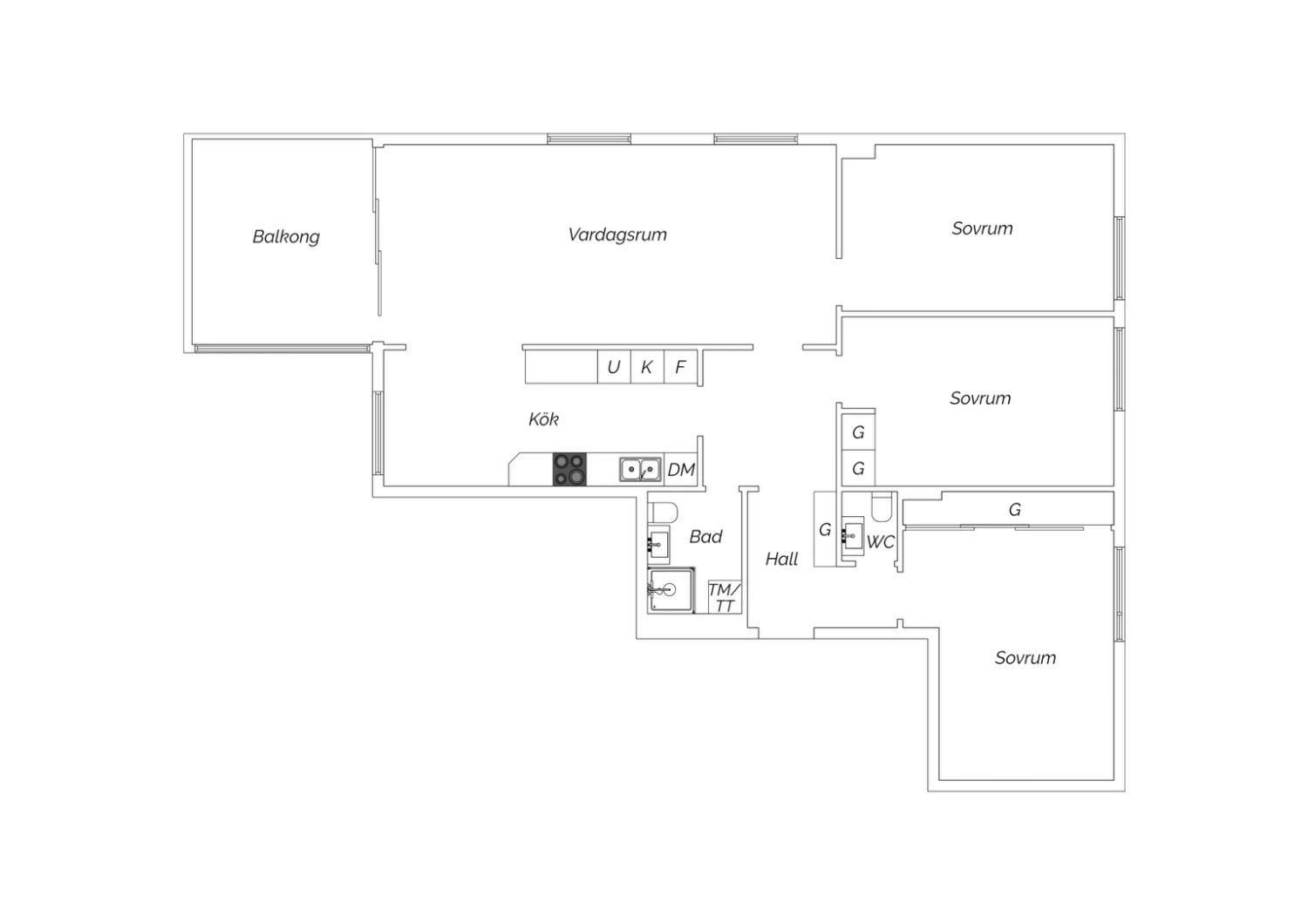 Ljus gavellägenhet om fyra rum och kök med rymlig balkong!