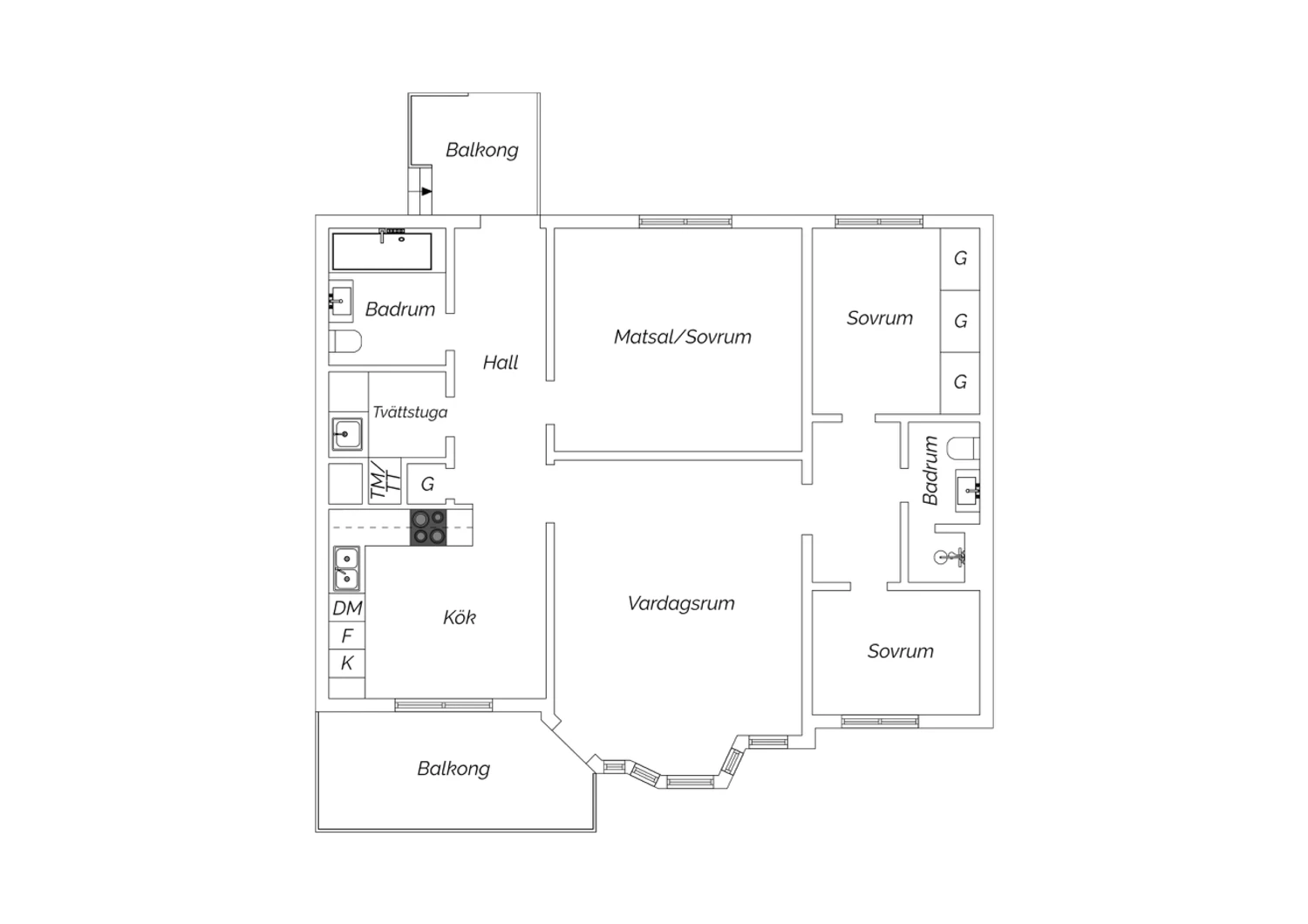 • Två balkonger