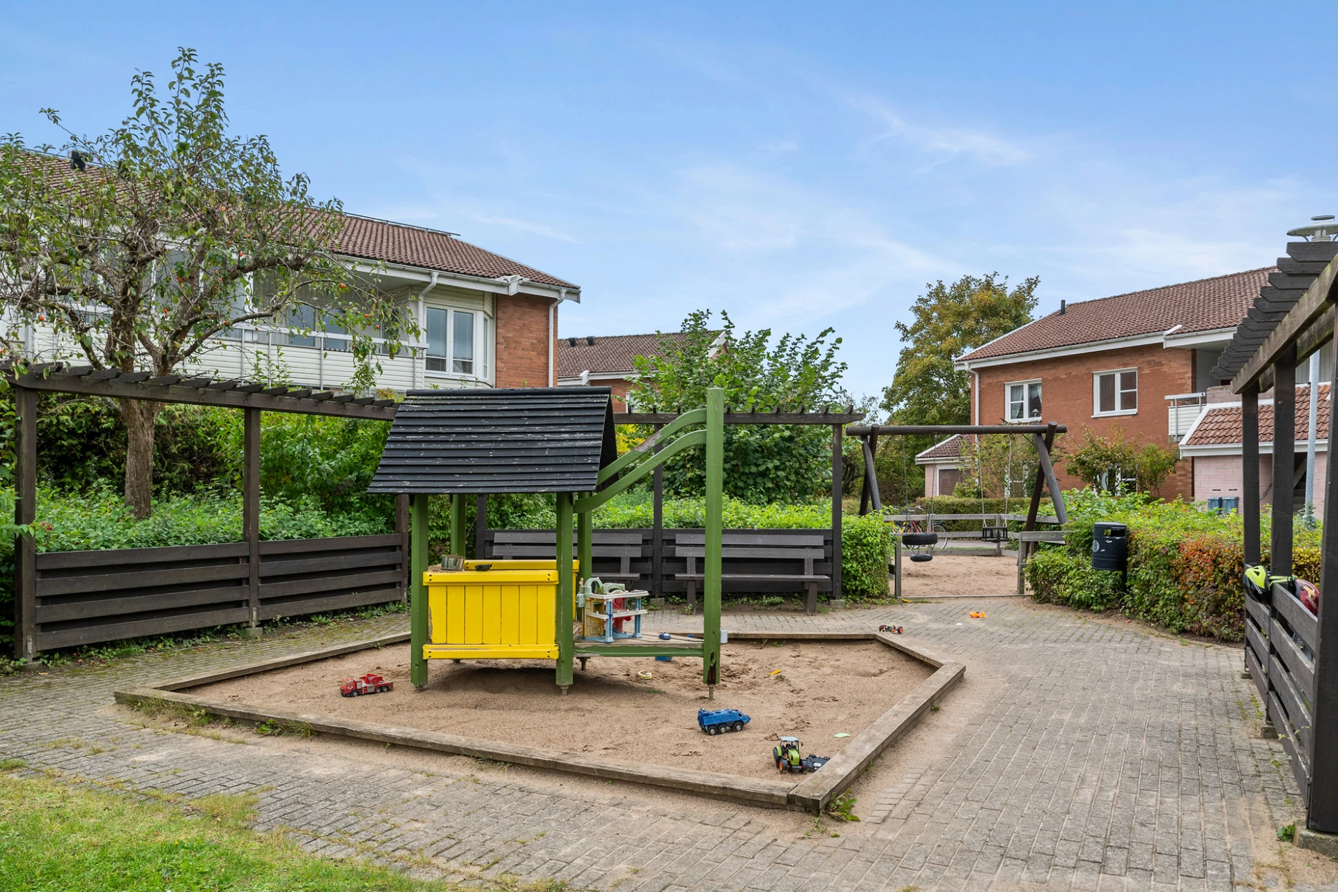 Föreningens område är bilfritt med gott om grönytor och plats för lek.