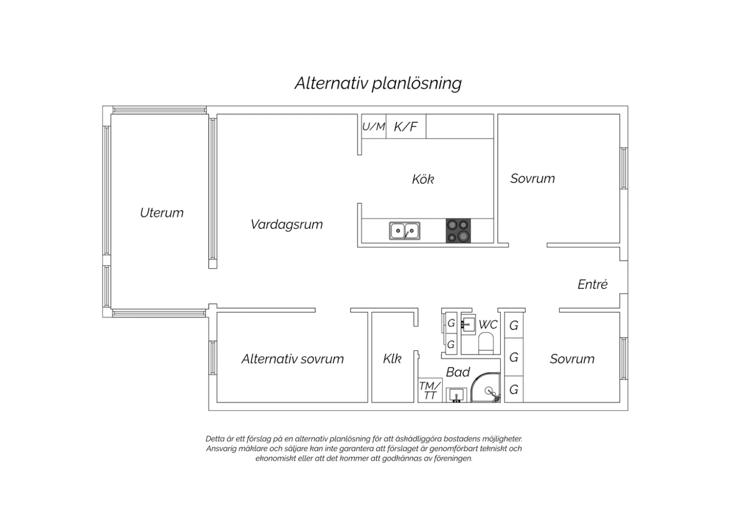 Förråd på husets framsida. Ny värmepump 2024. Lägenheten är registrerad som 3 rum i föreningens register.