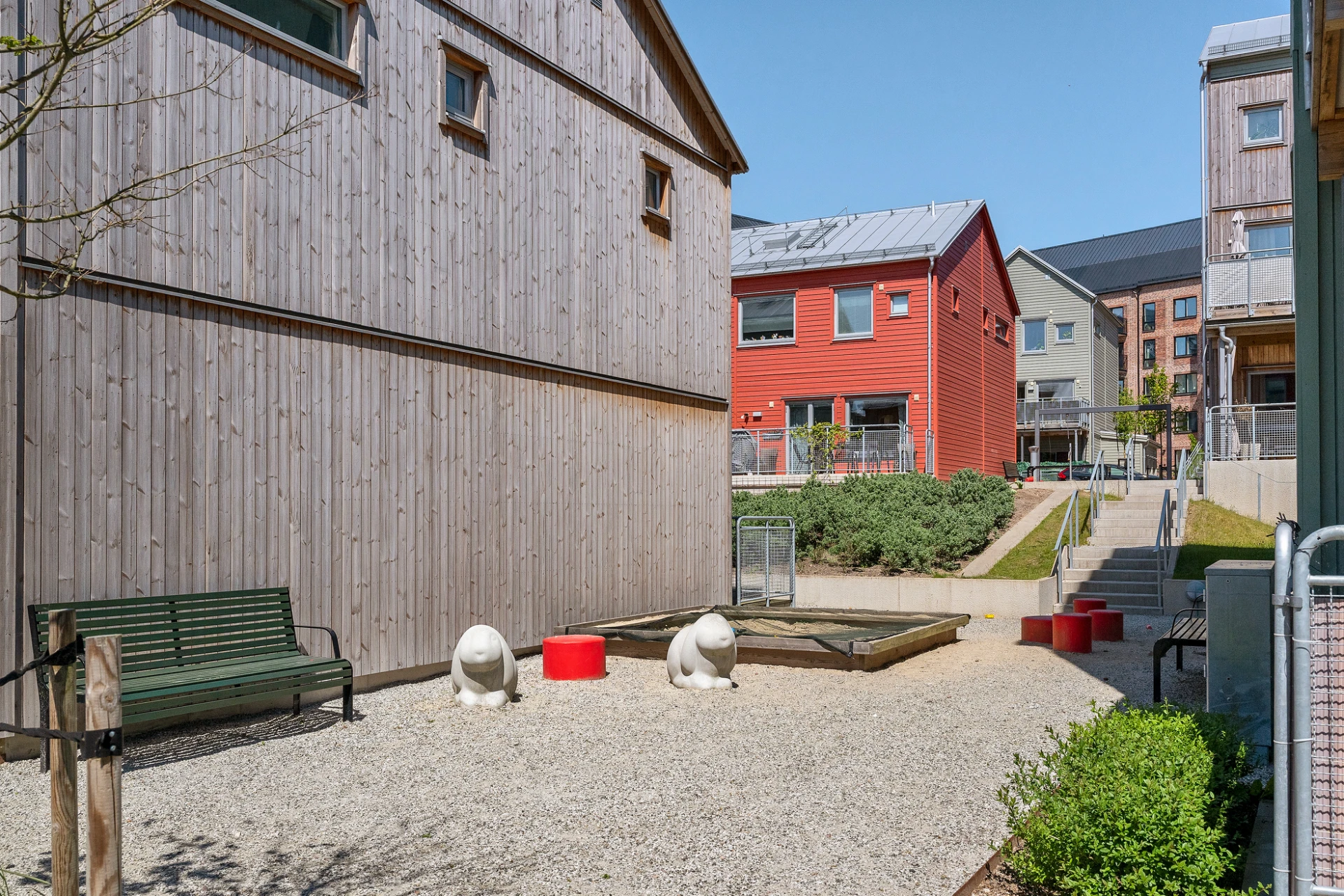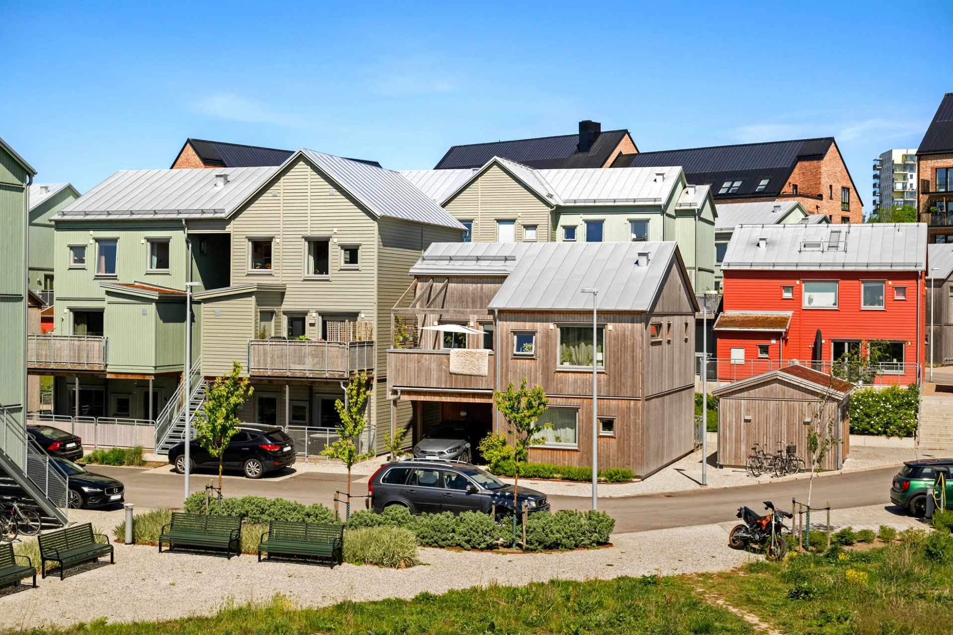 Området kring bostaden är både smakfullt bebyggt och harmoniskt planerat, med grönskande omgivningar och trygga kvarter, en idyll för barnfamiljen. Här bor du i ett lugnt och trivsamt kvarter där arkitekturen samspelar med naturen, vilket skapar en inbjudande och hemtrevlig känsla redan från första steget utanför dörren.