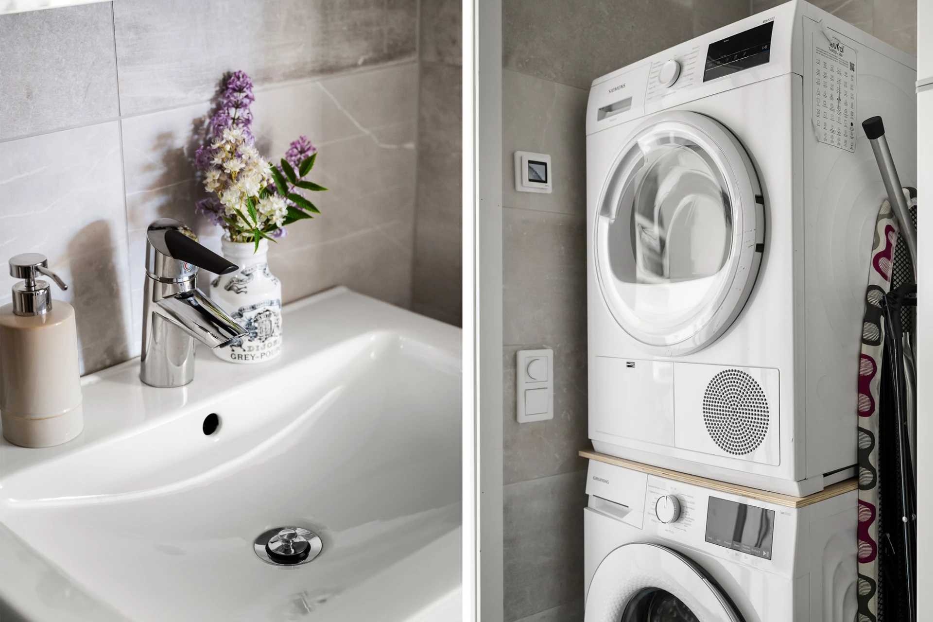 Varje lägenhet är utrustad med egna tvättmöjligheter.