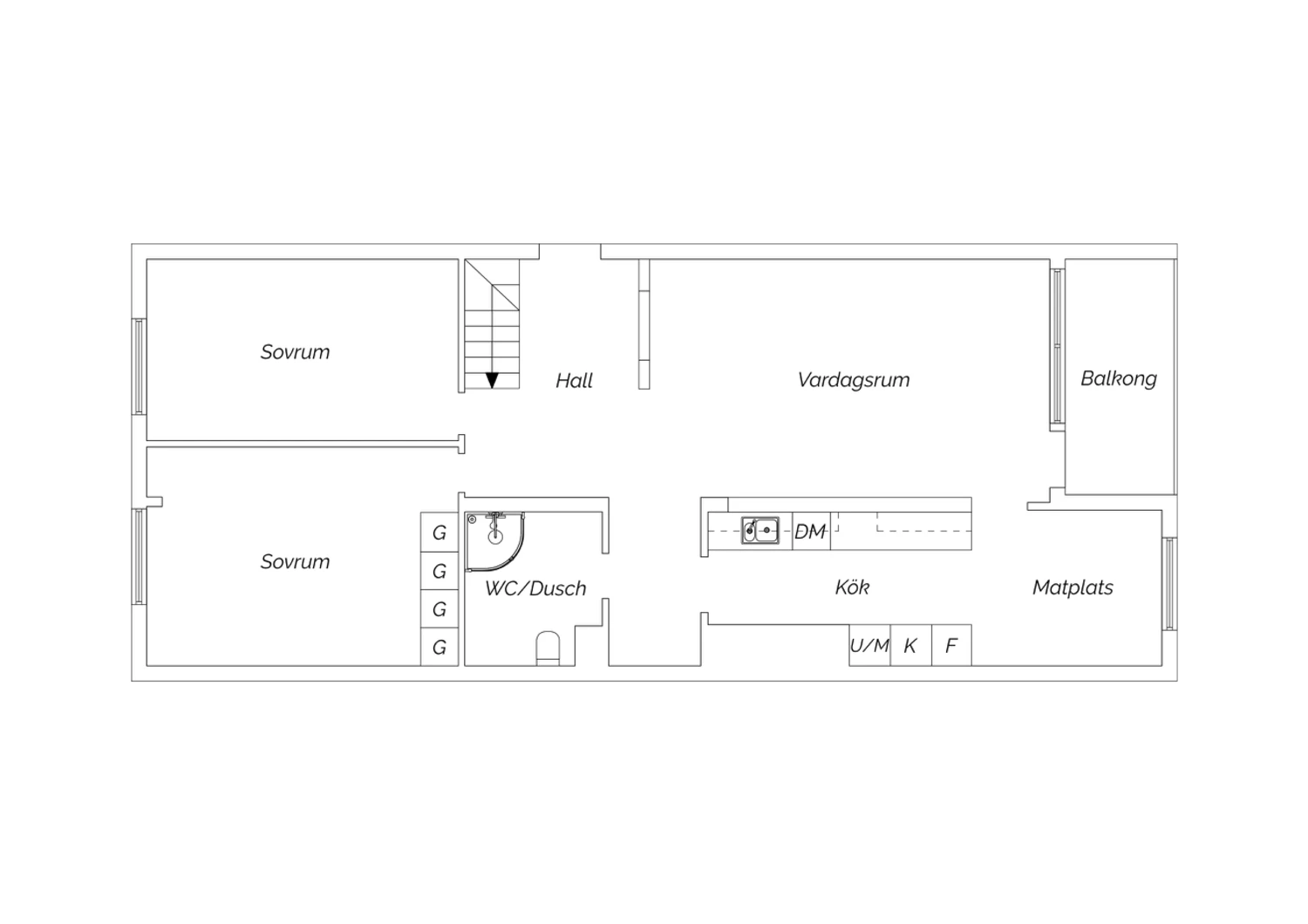 3 rum, 87 kvm boarea
