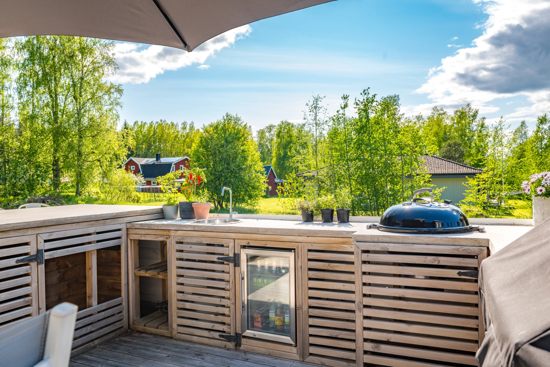 På bara några minuter med bil tar du dig från hemmet in till Vi som är centrum på Alnön. Här finns gym, matbutik, paketutlämning, vårdcentral, folktandvård, pizzerior, restauranger, café, konditori, frisörer, badhus, idrottsplats, skidstadion med elljusspår och rullskidbana samt stadsbussar som tar dig vidare in till Sundsvall. Här finns även flertalet förskolor samt kommunala Vibackeskolan (F-9) och Uslands skola (F-6).