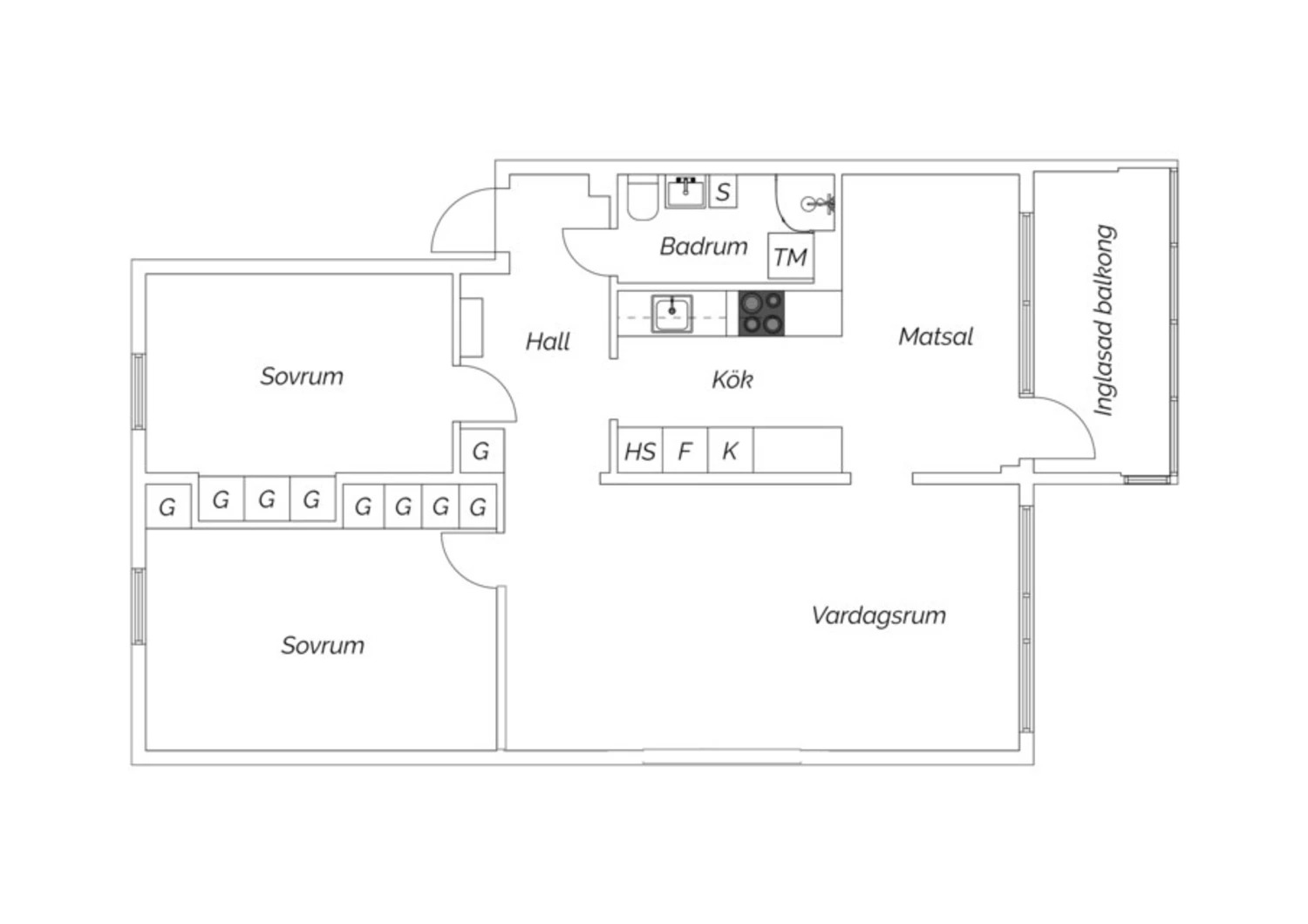 3 rum, 83 kvm boarea
