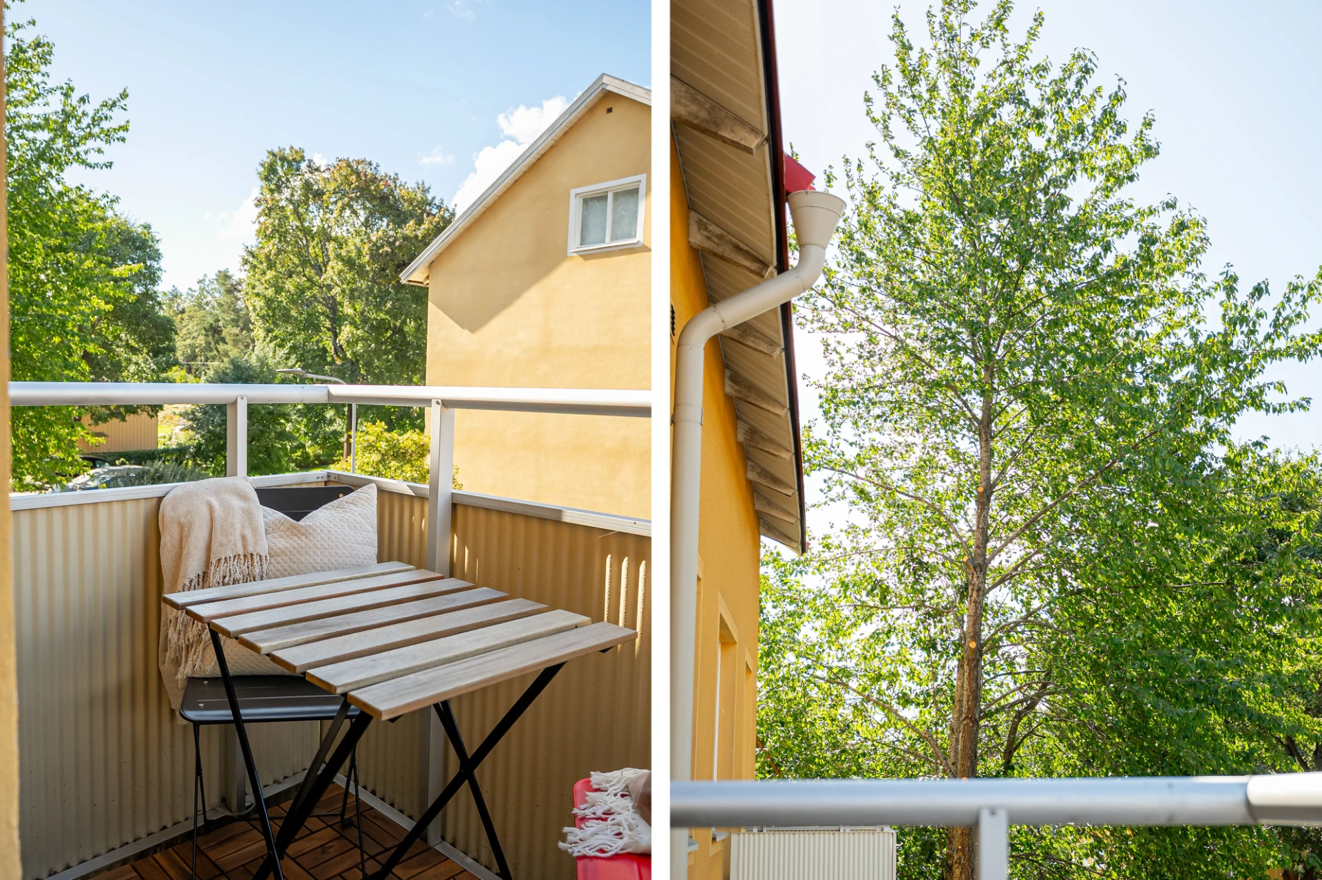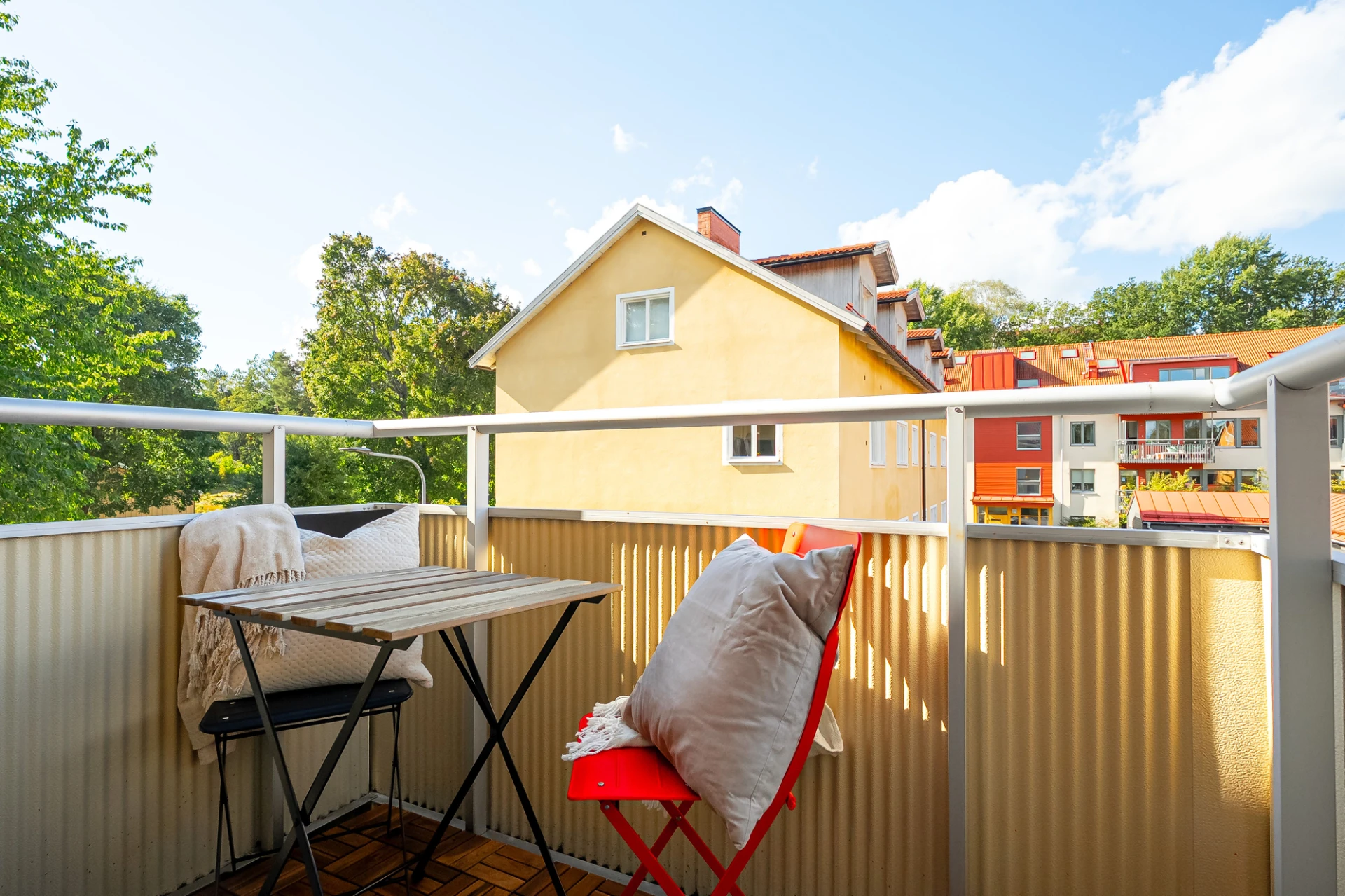Från vardagsrummet nås den härliga balkongen i soligt läge med plats för mindre möblemang, växter och dekoration.