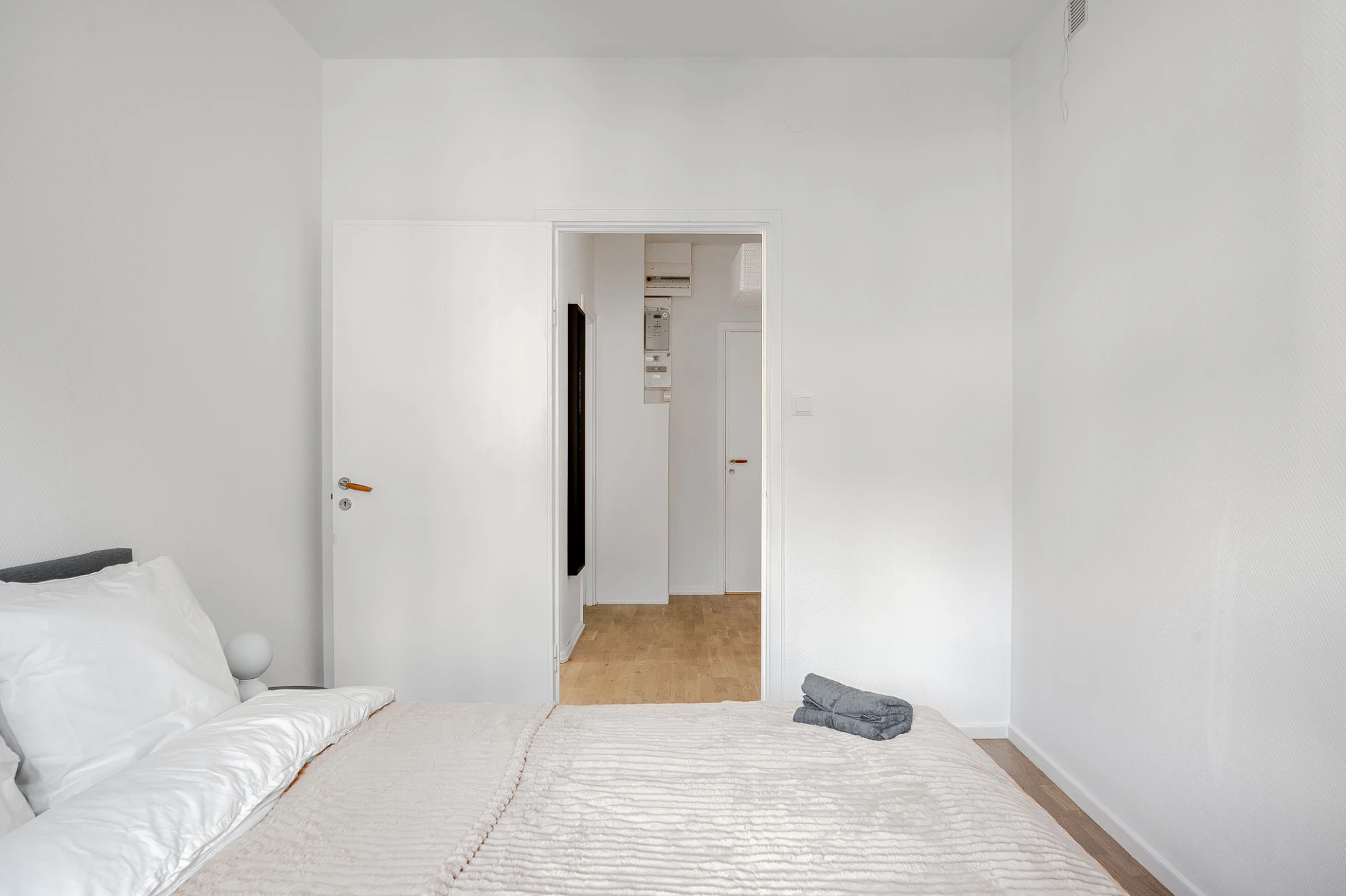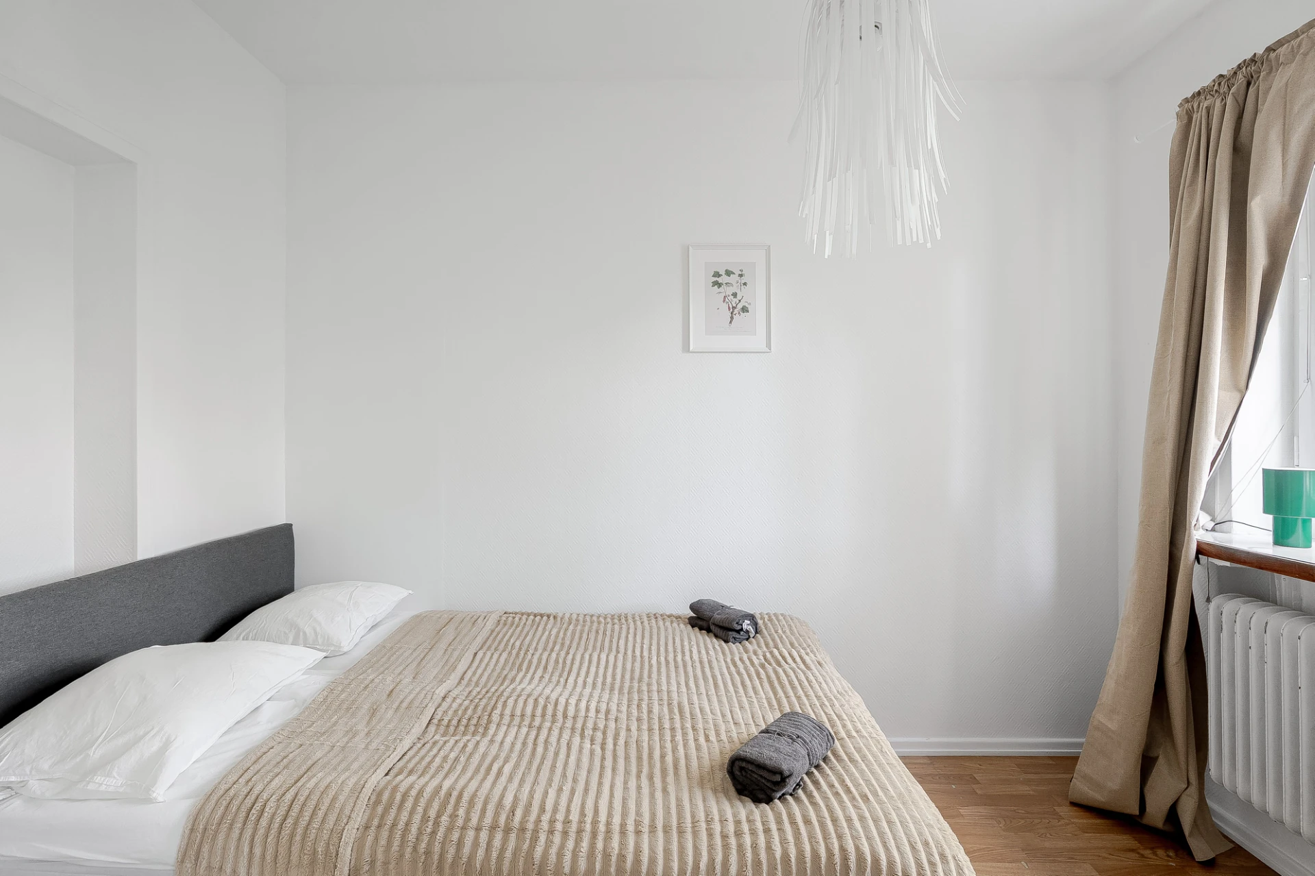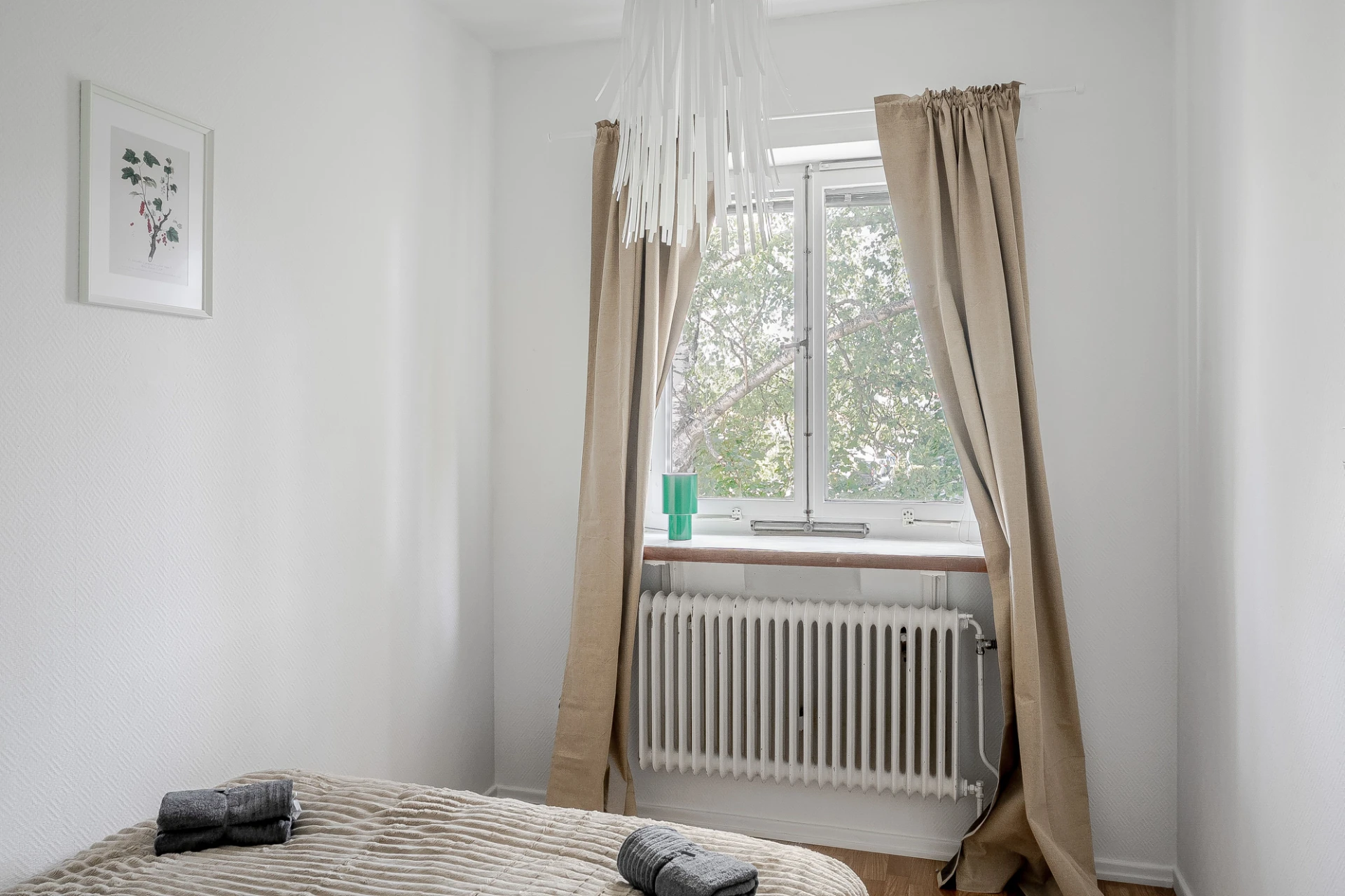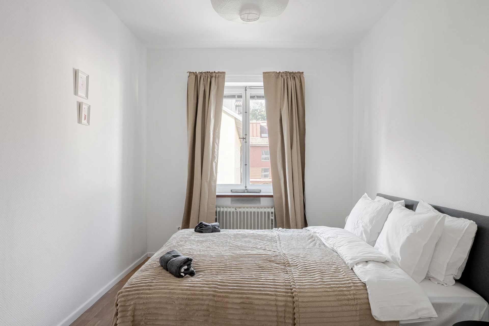 Rofyllt sovrum med plats för dubbelsäng, nattduksbord och förvaringsmöbler eller skrivbord. Här sover du ostört i lugnt läge.