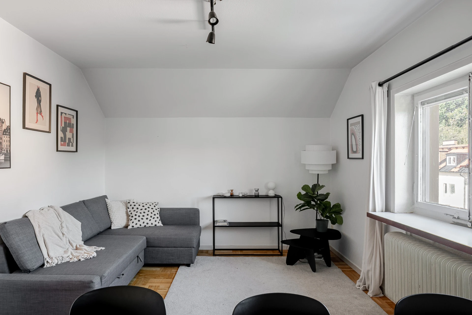 **JURIDISK PERSON GODKÄNNS!** Välkommen till denna smart planerade tvåa högst upp i huset, en ljus och trivsam bostad där du bor ostört och insynsfritt. Med genomtänkt planlösning, stora fönsterpartier och ett generöst ljusflöde erbjuds ett hem som känns både öppet och ombonat.