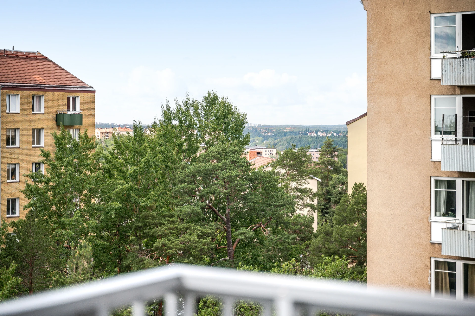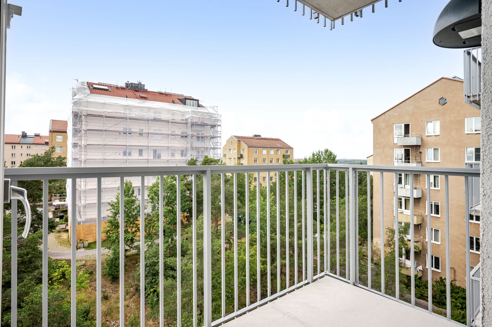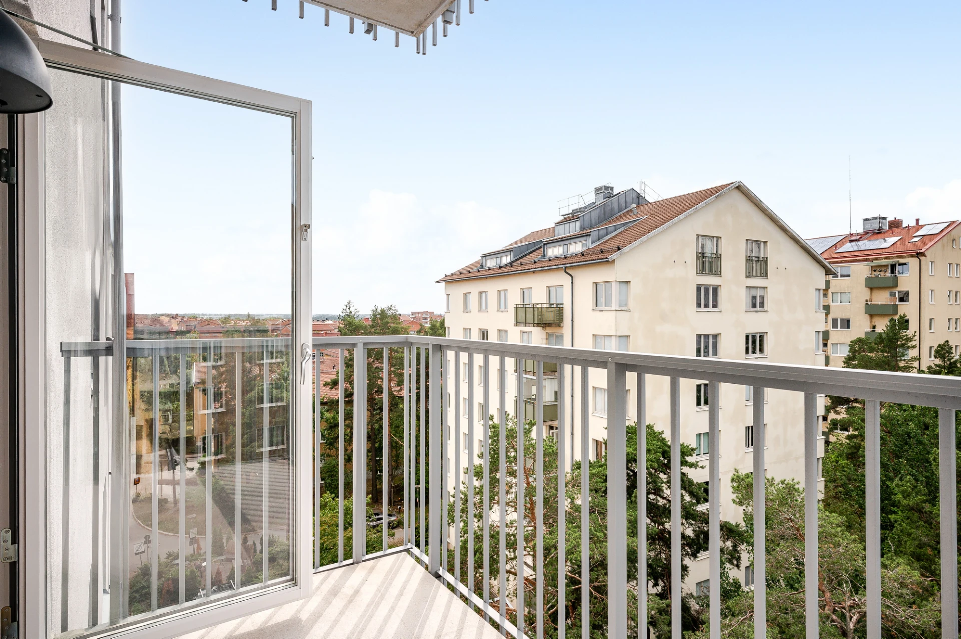 Generös balkong i soligt läge med milsvid utsikt. Här erbjuds en perfekt plats för avkoppling, odling eller middagar under bar himmel. Balkongen rymmer loungemöbler eller matgrupp för trevliga tillställningar.