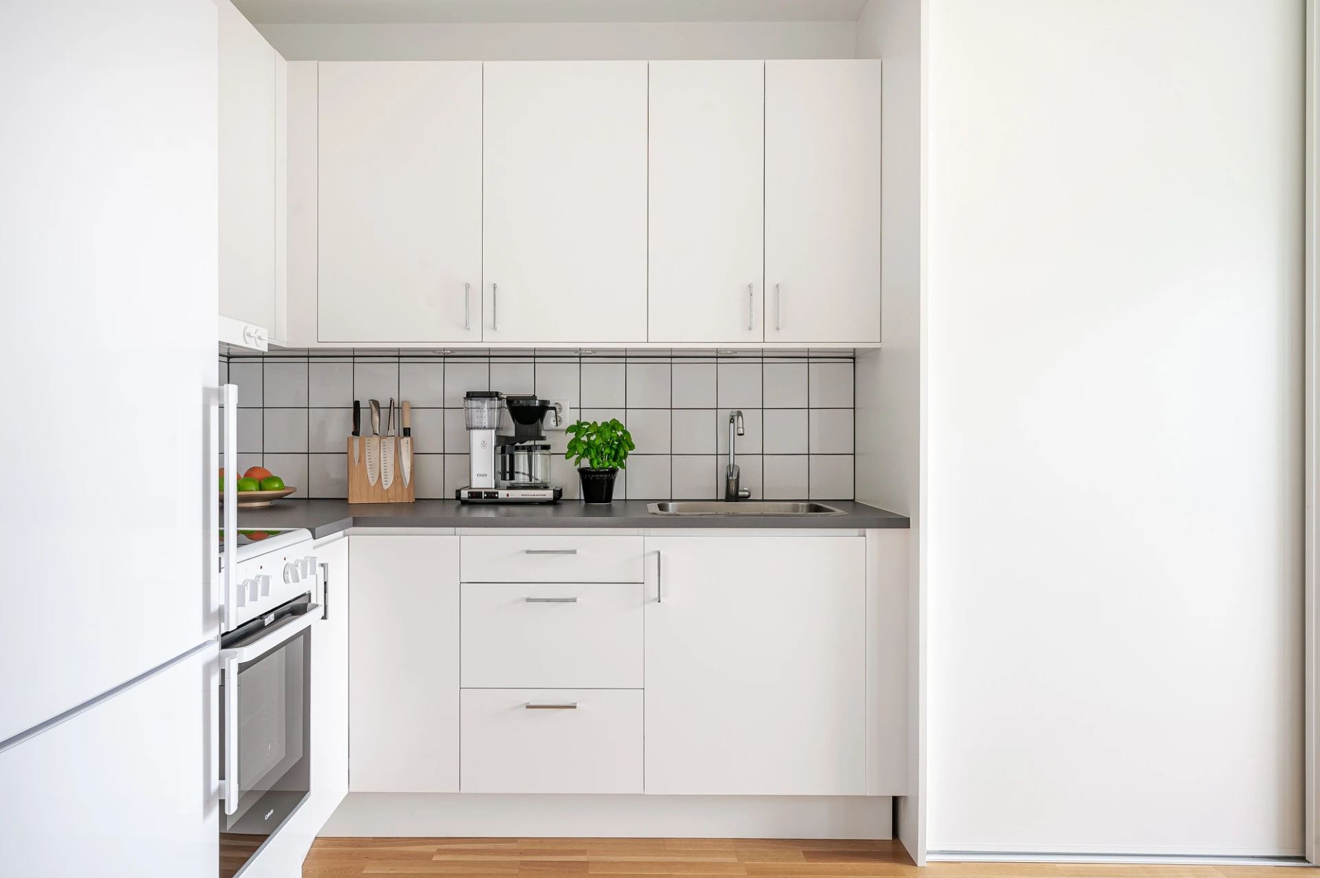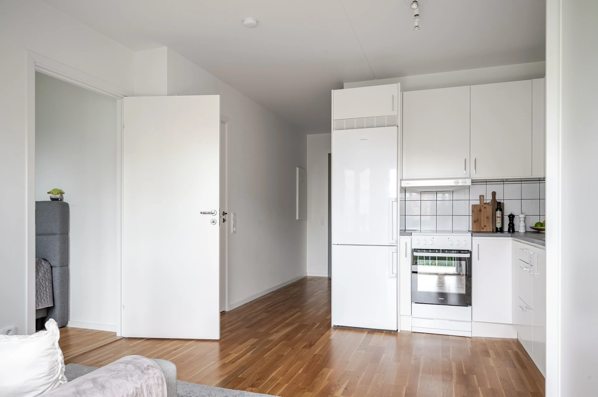 Lägenheten bjuder på en öppen planlösning mellan kök och vardagsrum som skapar härliga sociala ytor med ett naturligt ljusinsläpp från stora fönsterpartier. Från vardagsrummet når du den soliga balkongen i eftertraktat solläge, perfekt för eftermiddagskaffe, middagar eller avkoppling med milsvid utsikt över horisonten. Genomgående parkettgolv och ljusa ytskikt förstärker den moderna känslan i hela hemmet. Köket är stilrent och modernt med allt du behöver för att trivas direkt. Bostadens sovrum är beläget i ett rogivande läge och ger utrymme för bredare säng. Det helkaklade badrummet är fräscht och utrustat med tvättmaskin.