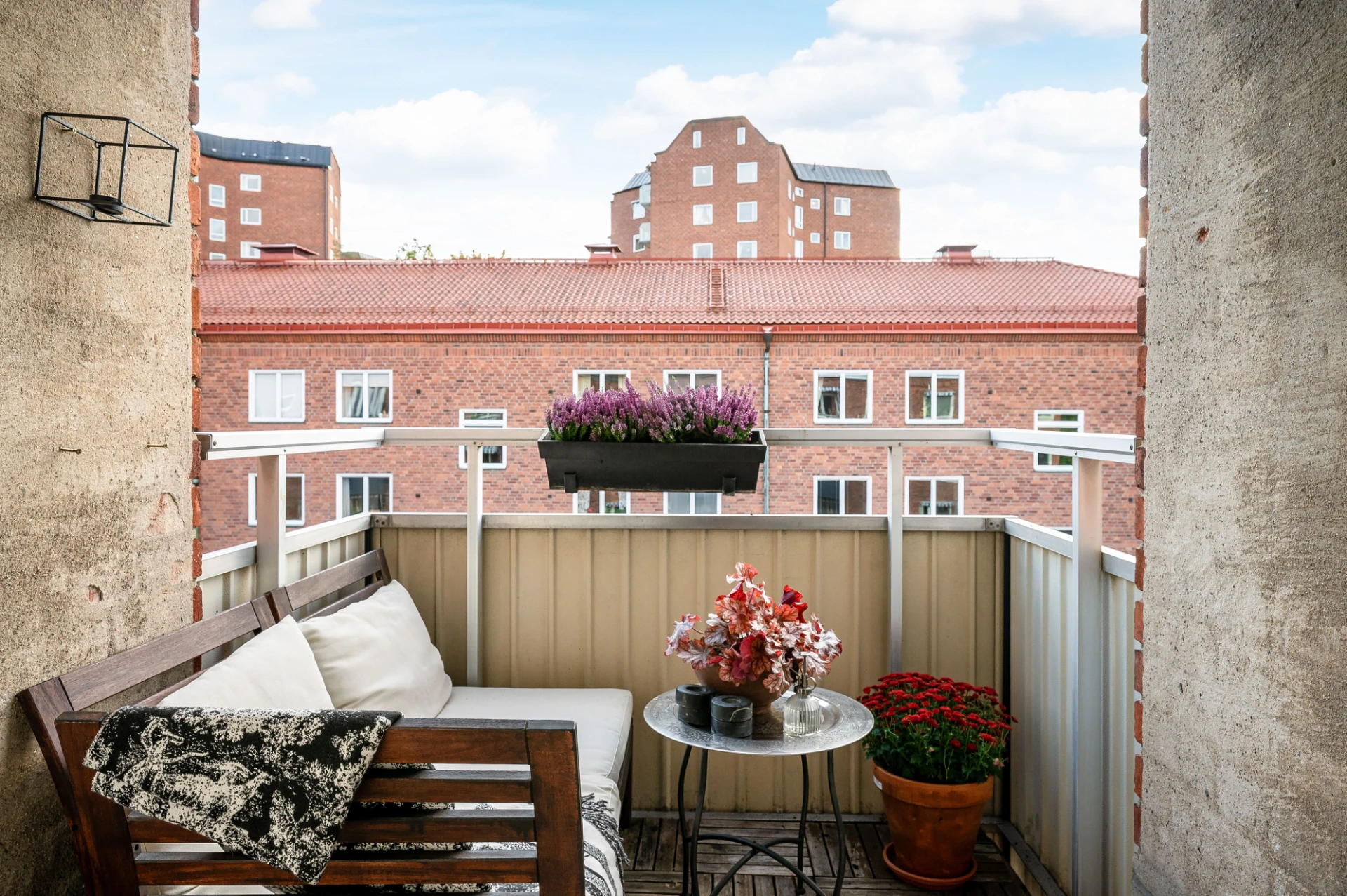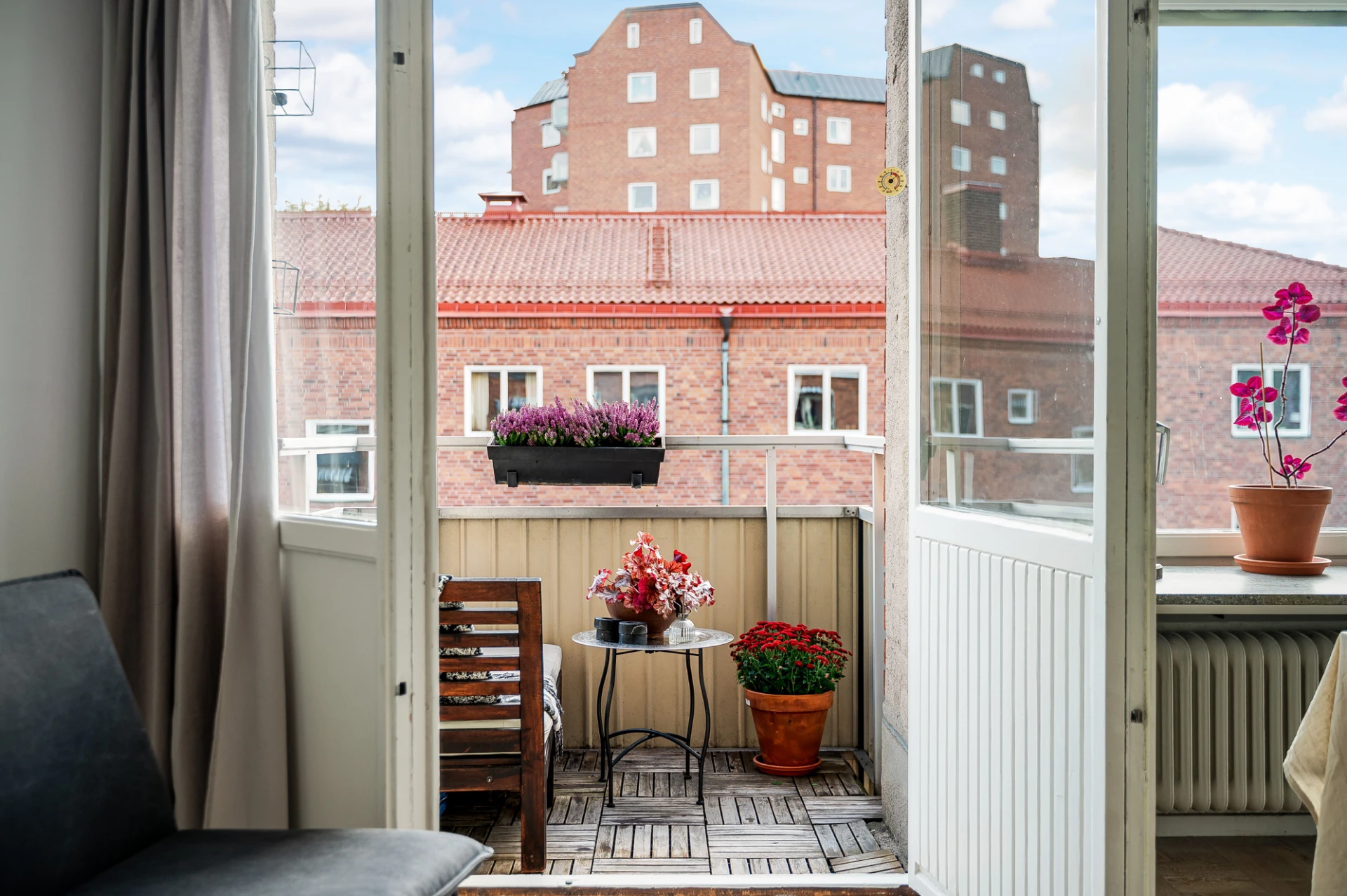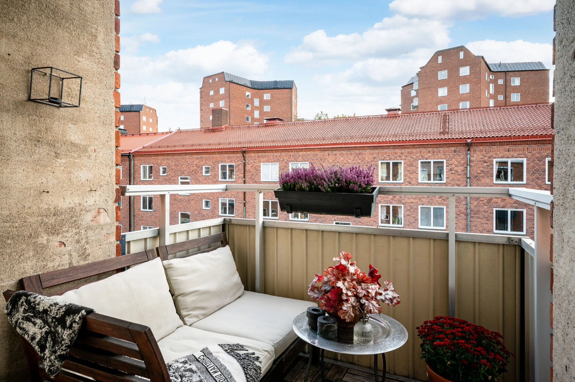 Härlig balkong som vetter i soligt och eftertraktat sydvästläge. Duka upp till middagar och njut av det härliga middagar.