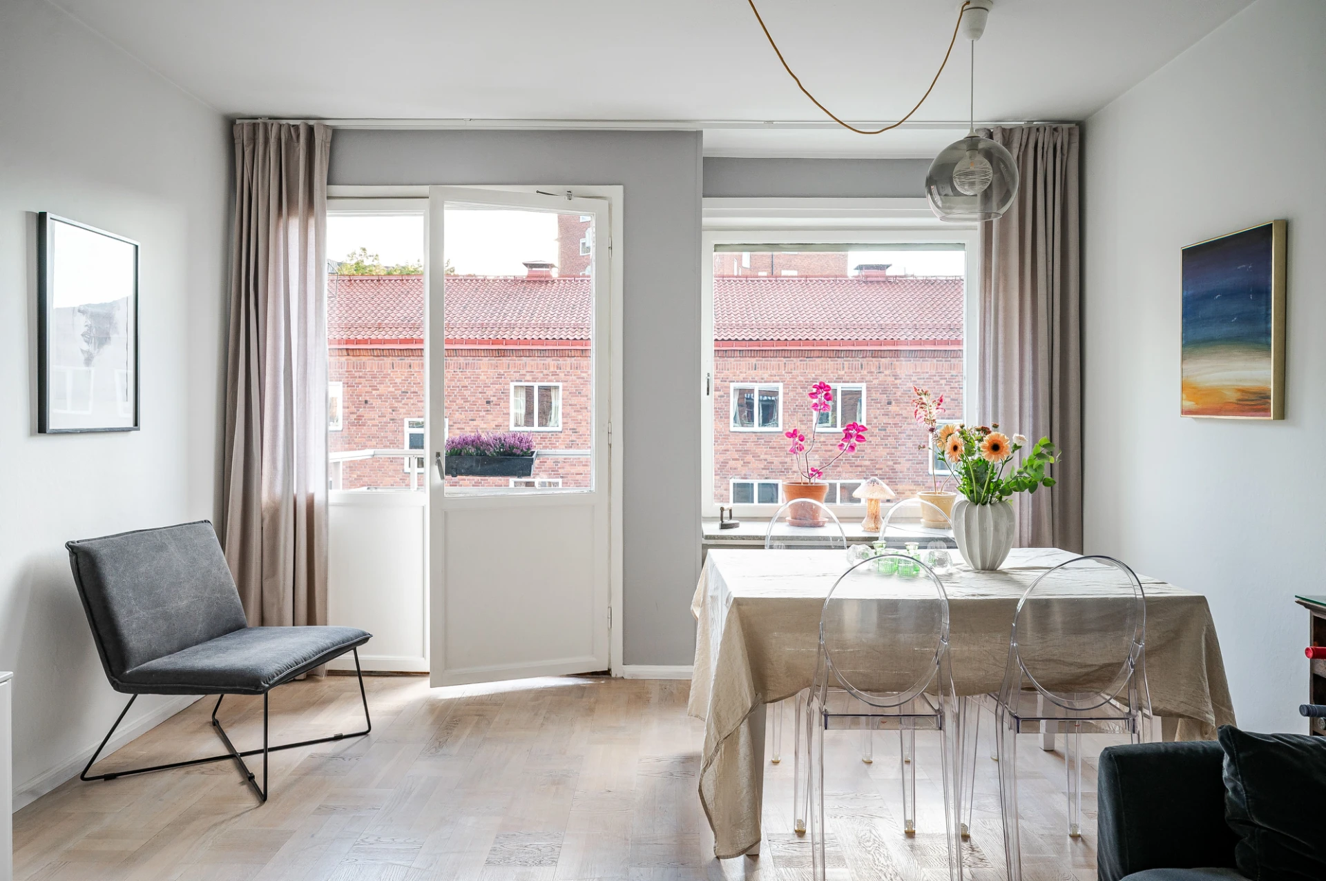 Välkommen till Störtloppsvägen 24, en trivsam och praktisk tvårummare med genomtänkt planlösning och hemtrevlig känsla. Här erbjuds du ett boende med charm och funktion i perfekt kombination. Lägenheten har ett ljust kök med plats för matgrupp, vilket gör det till en naturlig samlingspunkt för både vardag och middag med vänner. Vardagsrummet är rymligt och ljust och leder ut till balkongen. Genomgående goda förvaringsmöjligheter skapar en ordningsam och lättmöblerad bostad, och det rogivande sovrummet vetter mot härligt grönskande läge. Det helkaklade badrummet är fräscht och utrustat med dusch. Avslutningsvis hall med rymlig garderobsvägg.