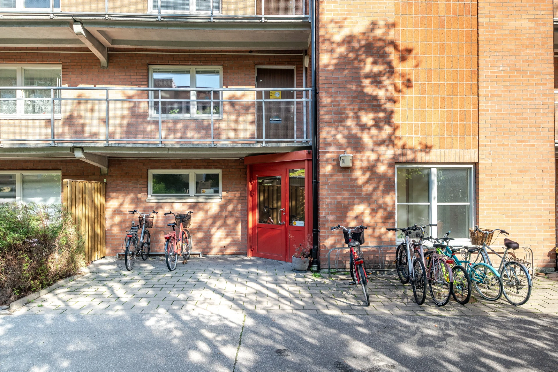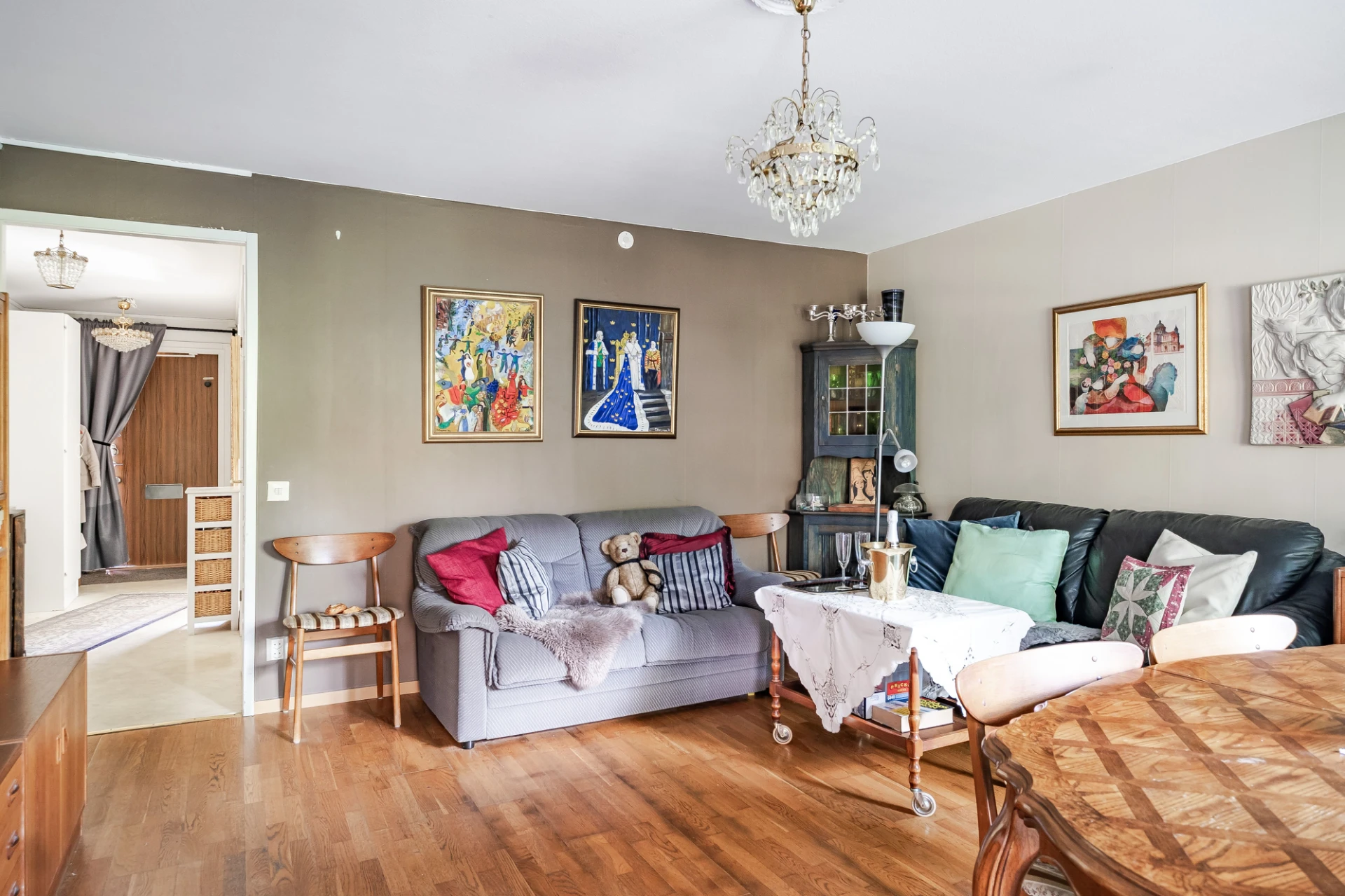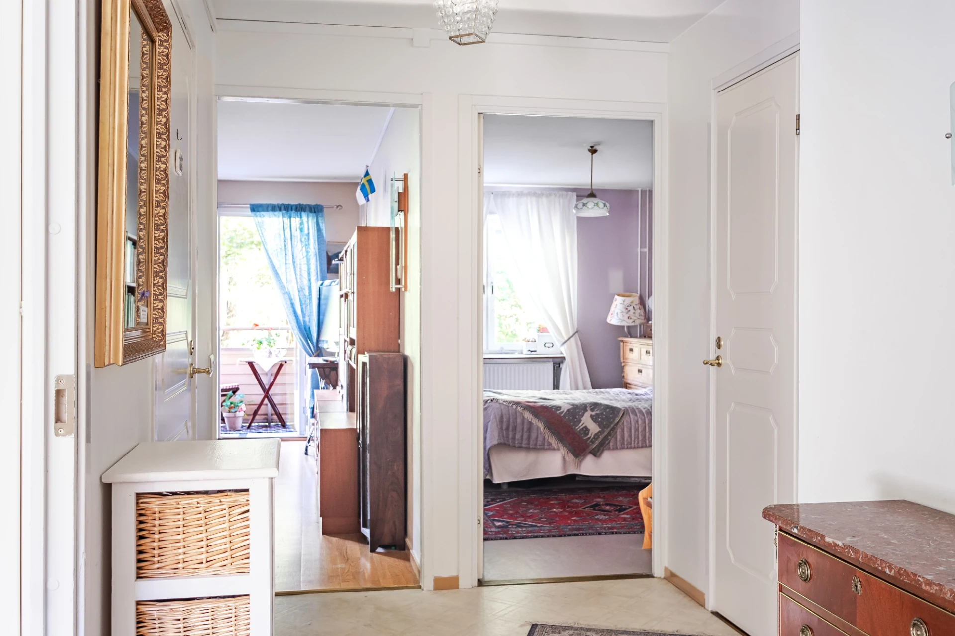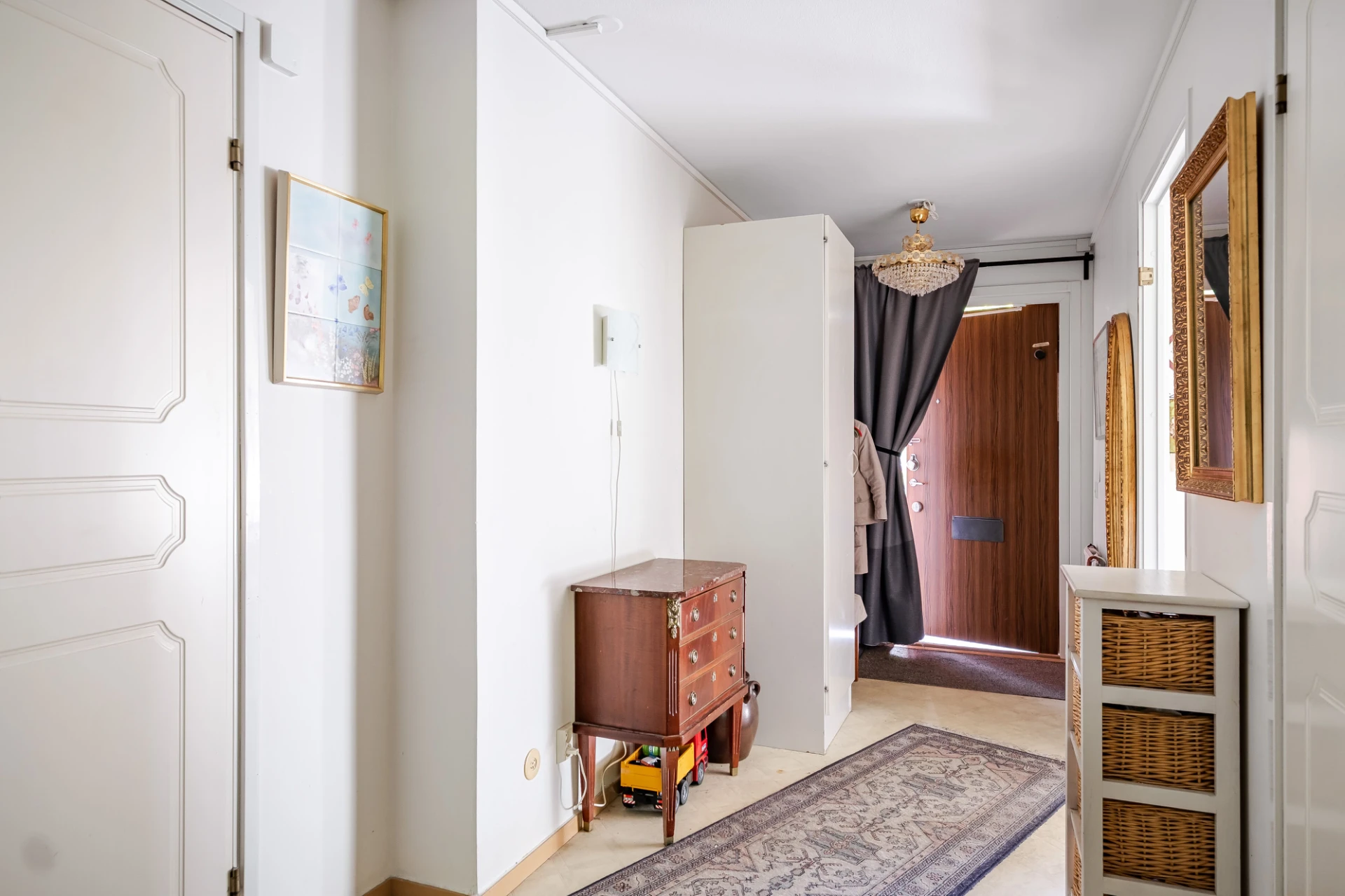 Här bor du i ett lugnt och grönt område med direkt närhet till kommunikationer, service och vacker natur. Bostaden erbjuder genomgående ljusinsläpp från två håll, tidstypiska detaljer och en härlig balkong med utsikt mot grönska – perfekt för morgonkaffet.