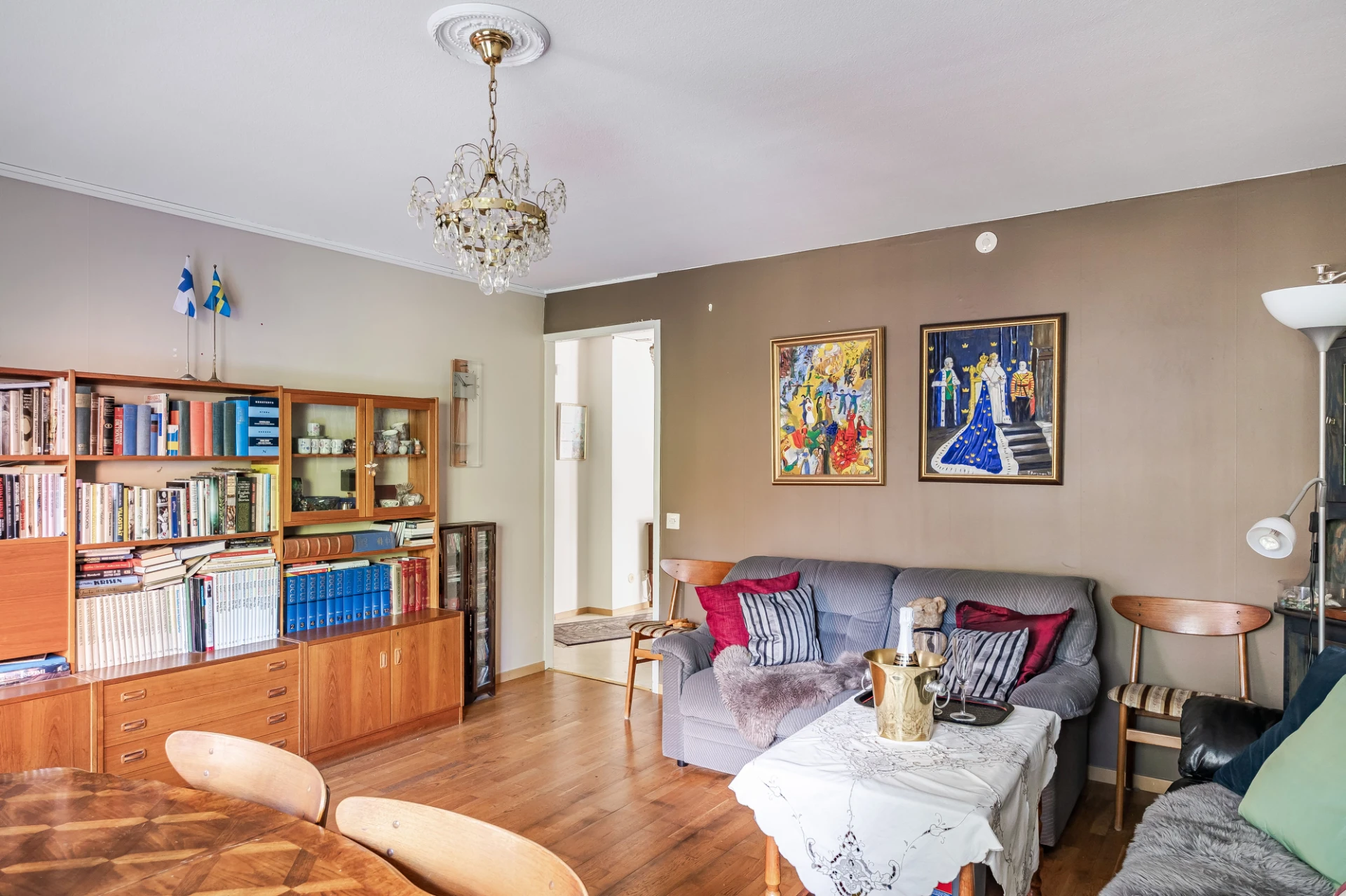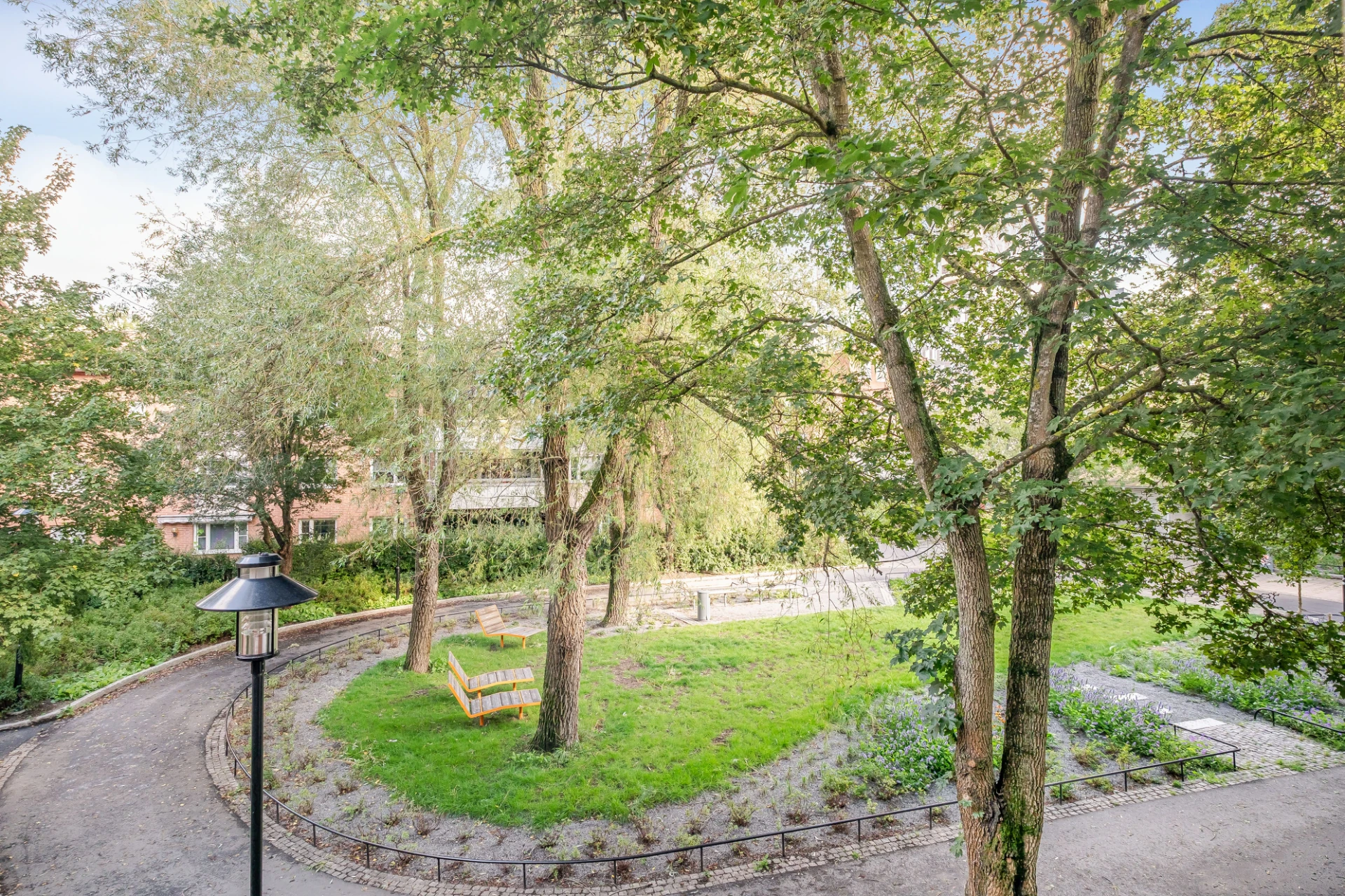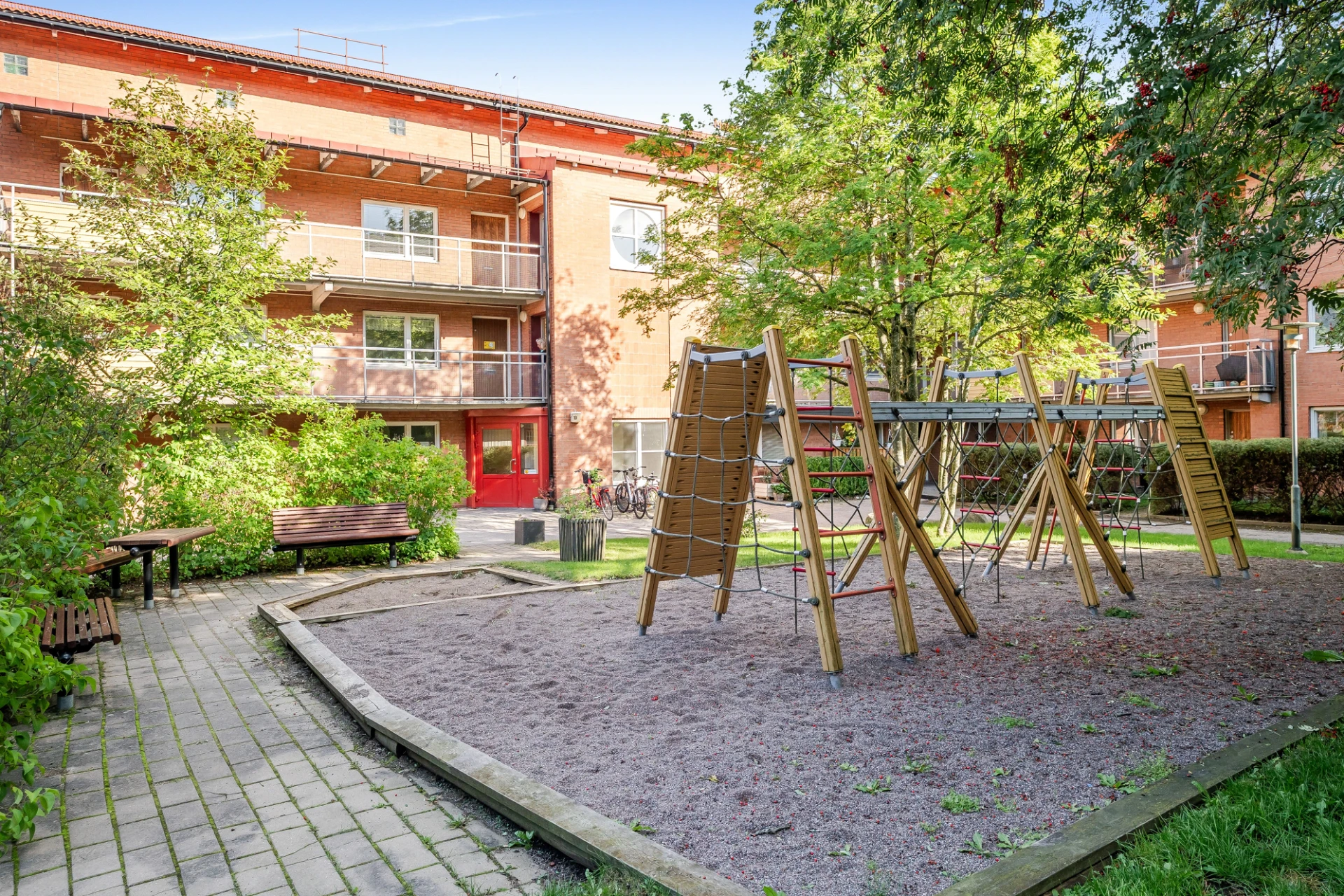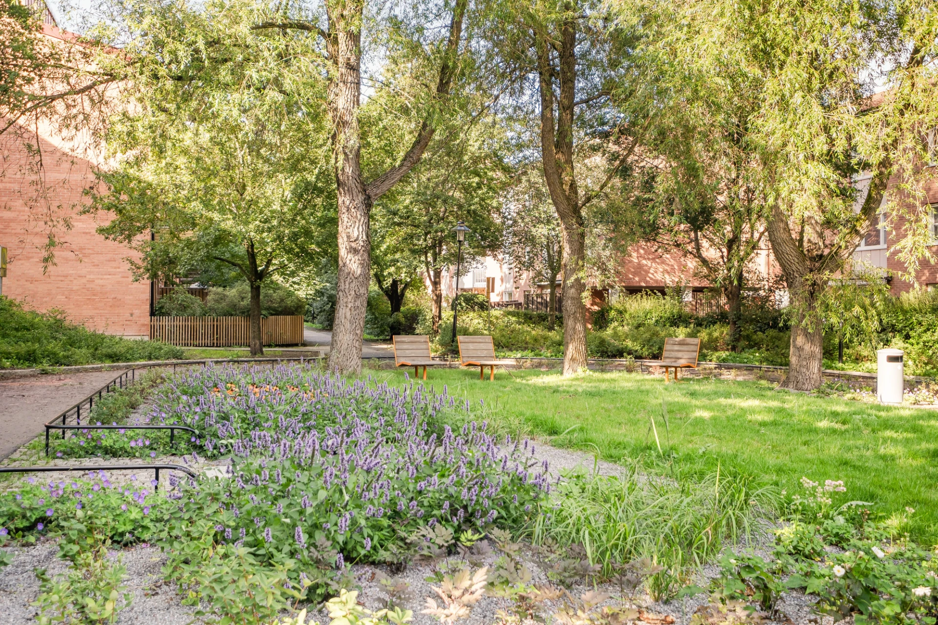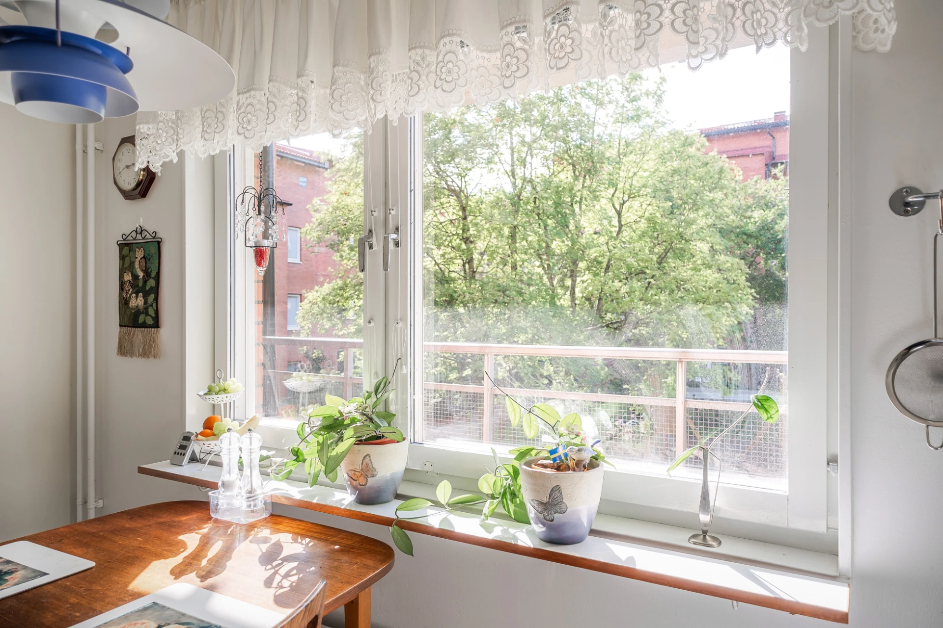 Här bor du i ett lugnt och grönt område med direkt närhet till kommunikationer, service och vacker natur. Bostaden erbjuder genomgående ljusinsläpp från två håll, tidstypiska detaljer och en härlig balkong med utsikt mot grönska – perfekt för morgonkaffet.