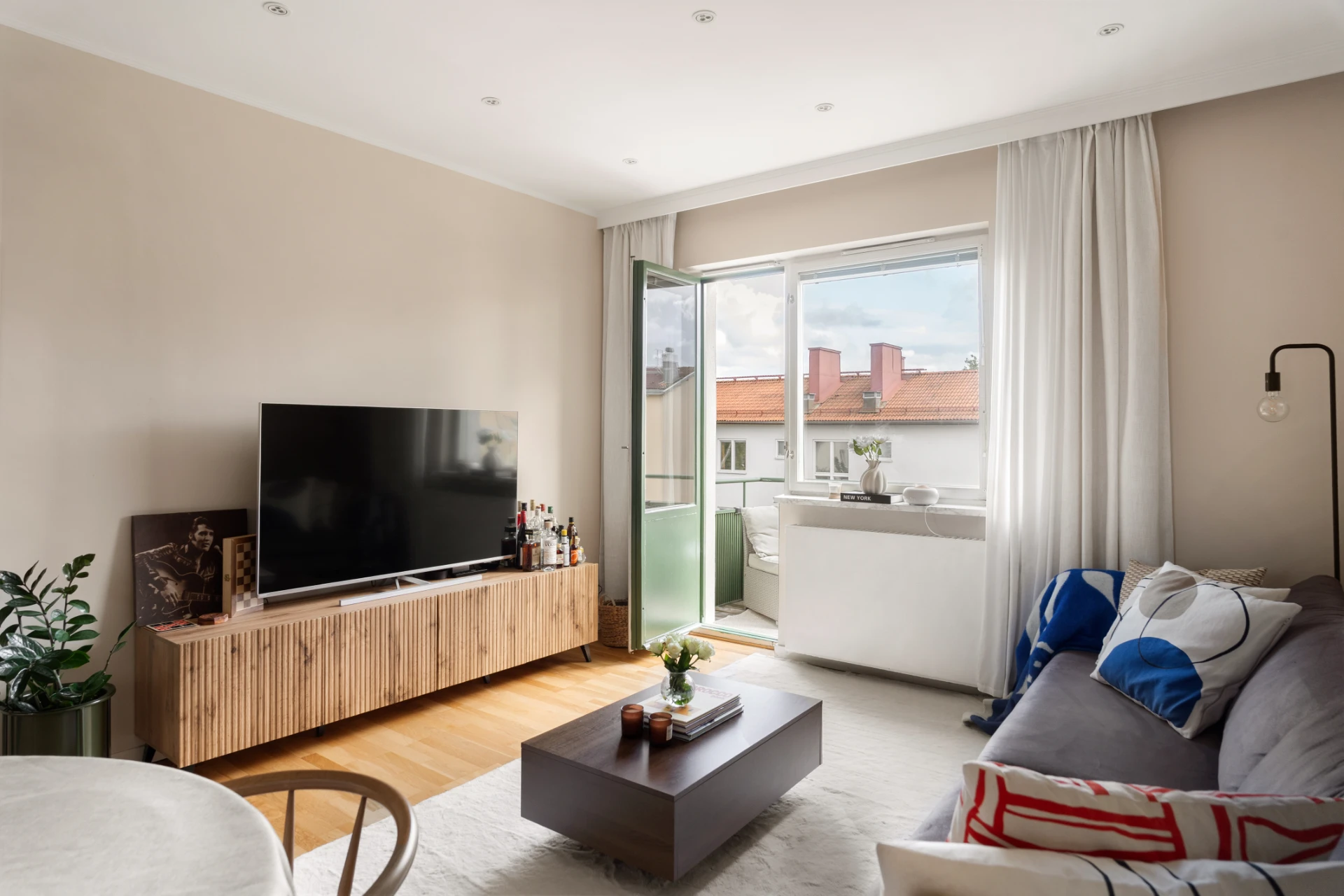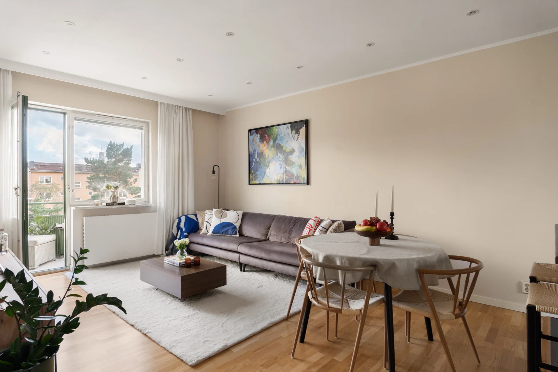 Med sitt perfekta läge på Bäckvägen, ett stenkast från Telefonplan, Aspudden och Midsommarkransen, finns nu chansen att förvärva denna toppmoderna bostad belägen högst upp i huset och soldränkt balkong! En perfekt planerad bostad med mycket väldisponerade kvadratmeter och generösa sociala ytor. Från vardagsrummet nås den ljuvliga balkongen i ett härligt solläge, där ni kan njuta av soliga dagar i en perfekt oas. Bostaden har en väl bevarad 40-tals charm i form av djupa fönsternischer, tilltagen takhöjd samt ett fint ljusinsläpp från de stora fönsterpartierna. Dessa attribut, förenat med ett modernt kök och badrum, skapar ett hemtrevligt och bekvämt boende. Här bor ni på en attraktiv adress med närhet till goda kommunikationer, vackra promenadstråk, restauranger, caféer och brett serviceutbud. Varmt välkommen till en bostad att trivas i!