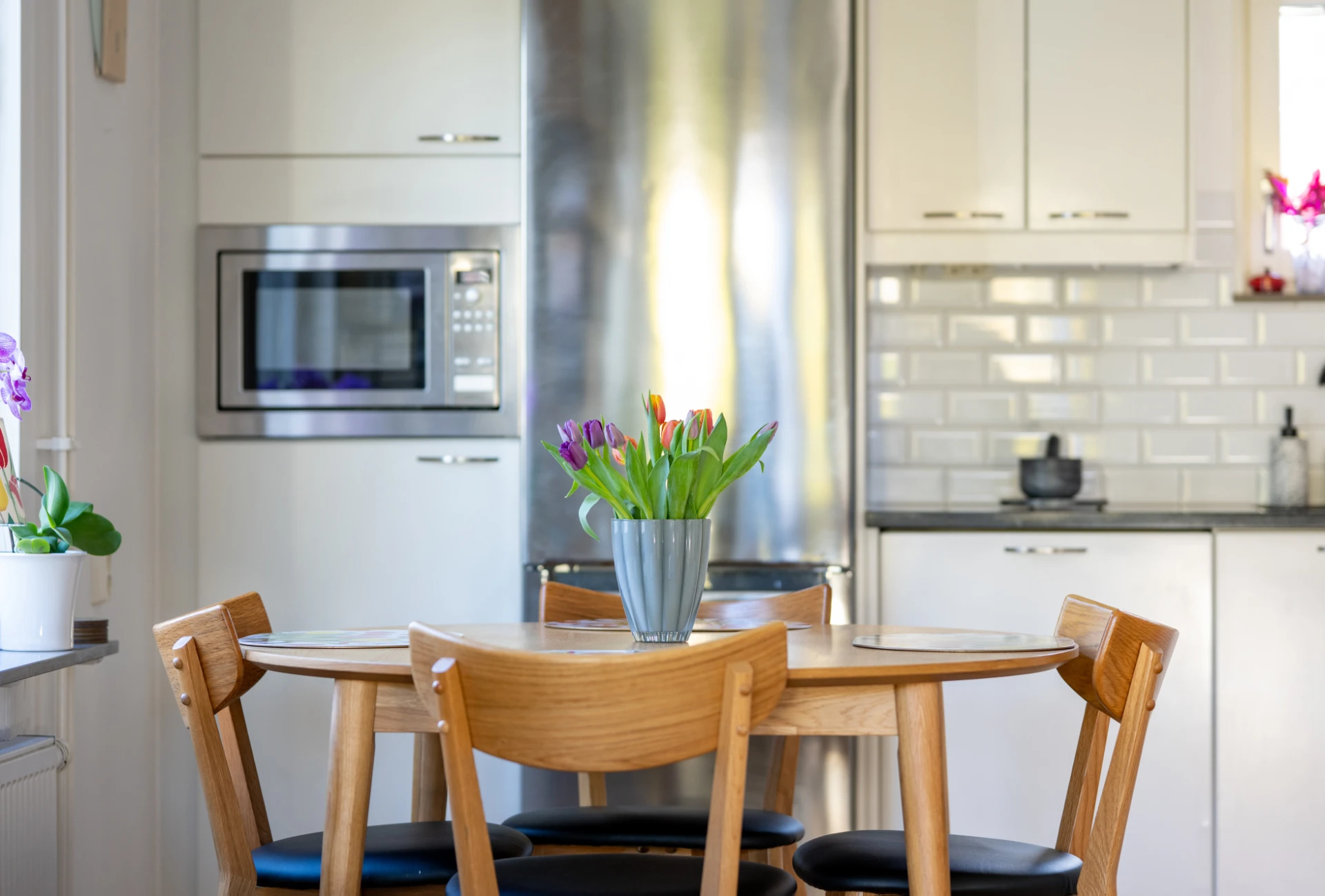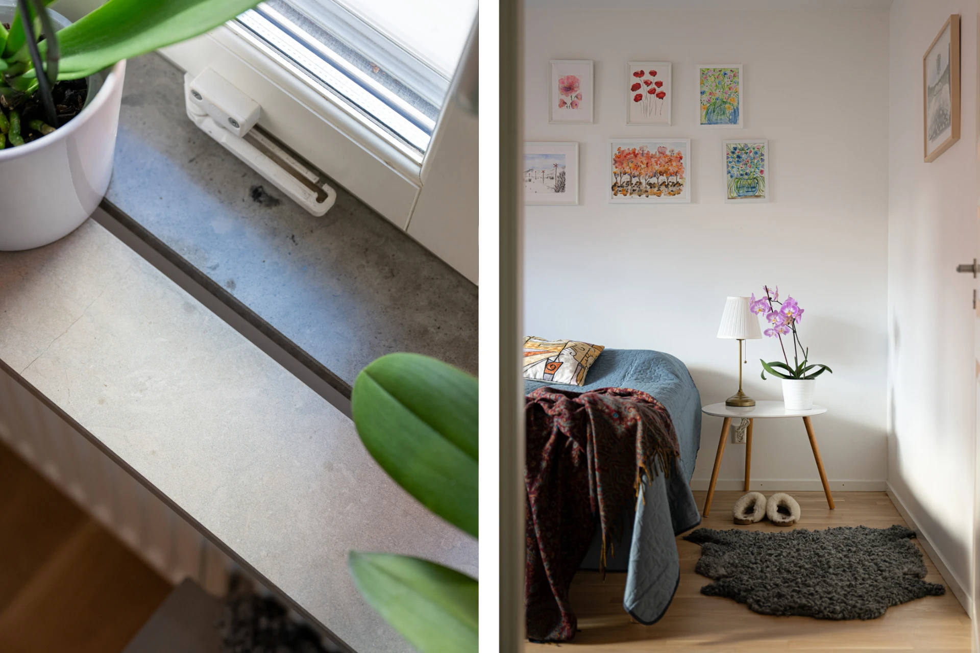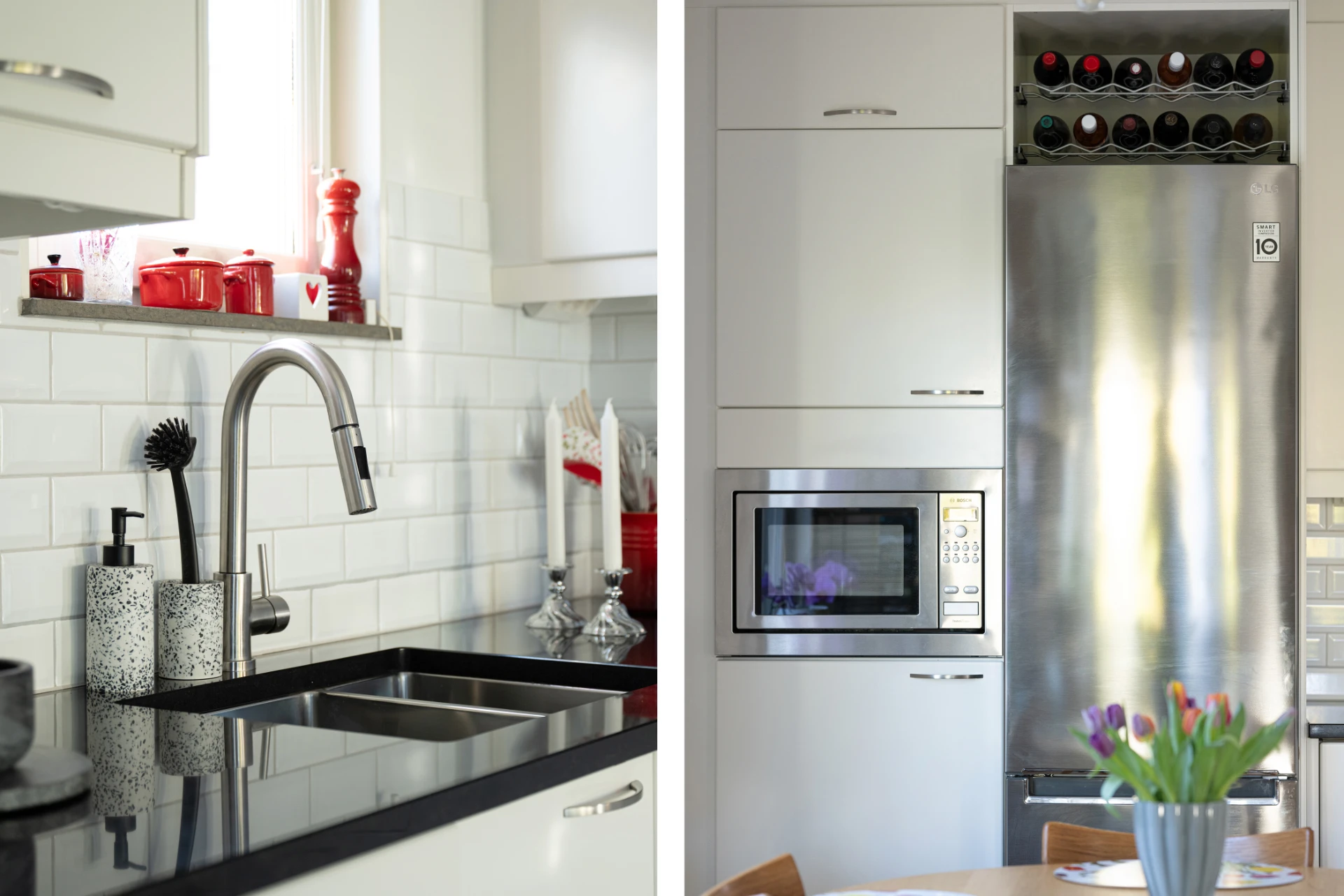 2025: Ny bänkskiva i svart granit, ny glashällspis, ny köksbänkbelysning, golvslipning och ytbehandling i hela lägenheten.