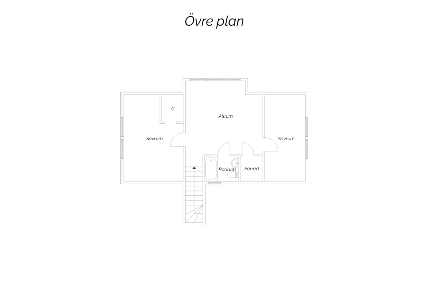 Trägolv och vitmålade väggar. Rummet erbjuder plats för en dubbelsäng med tillhörande möblemang och och gott om plats för avhängning samt förvaring I inbyggda garderober.