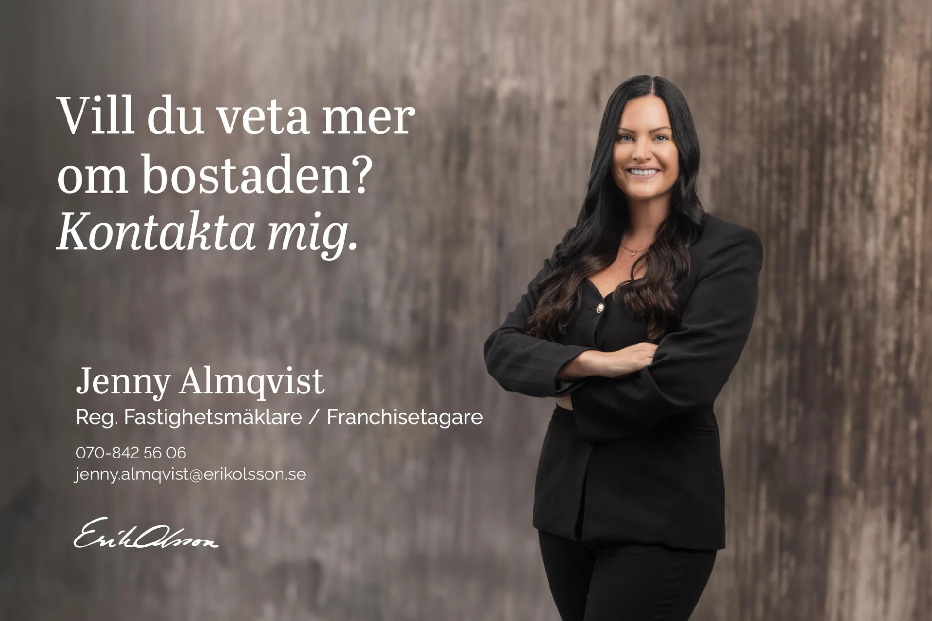 Välkommen att kontakta ansvarig mäklare Jenny Almqvist för mer information eller visningsbokning.