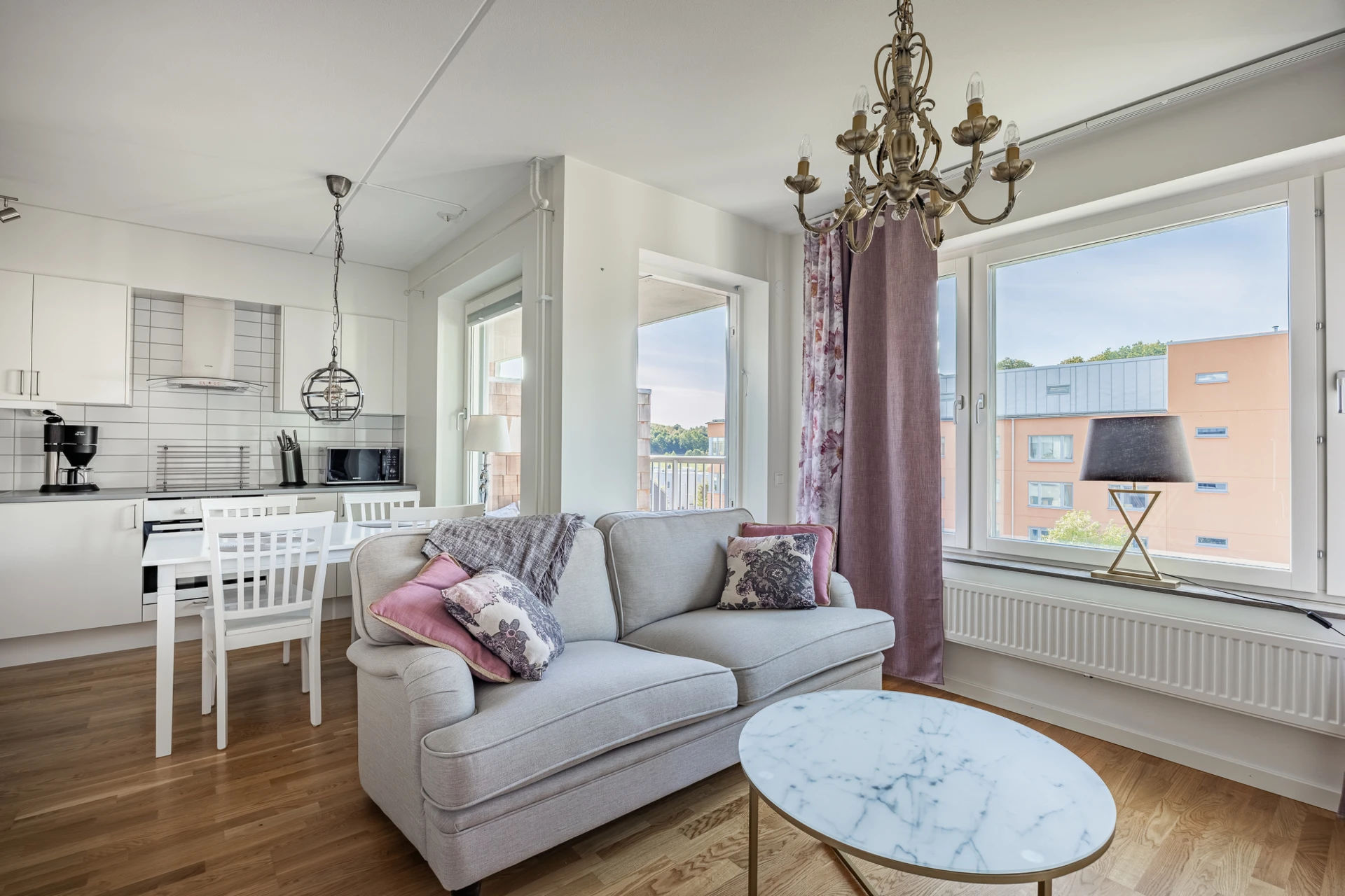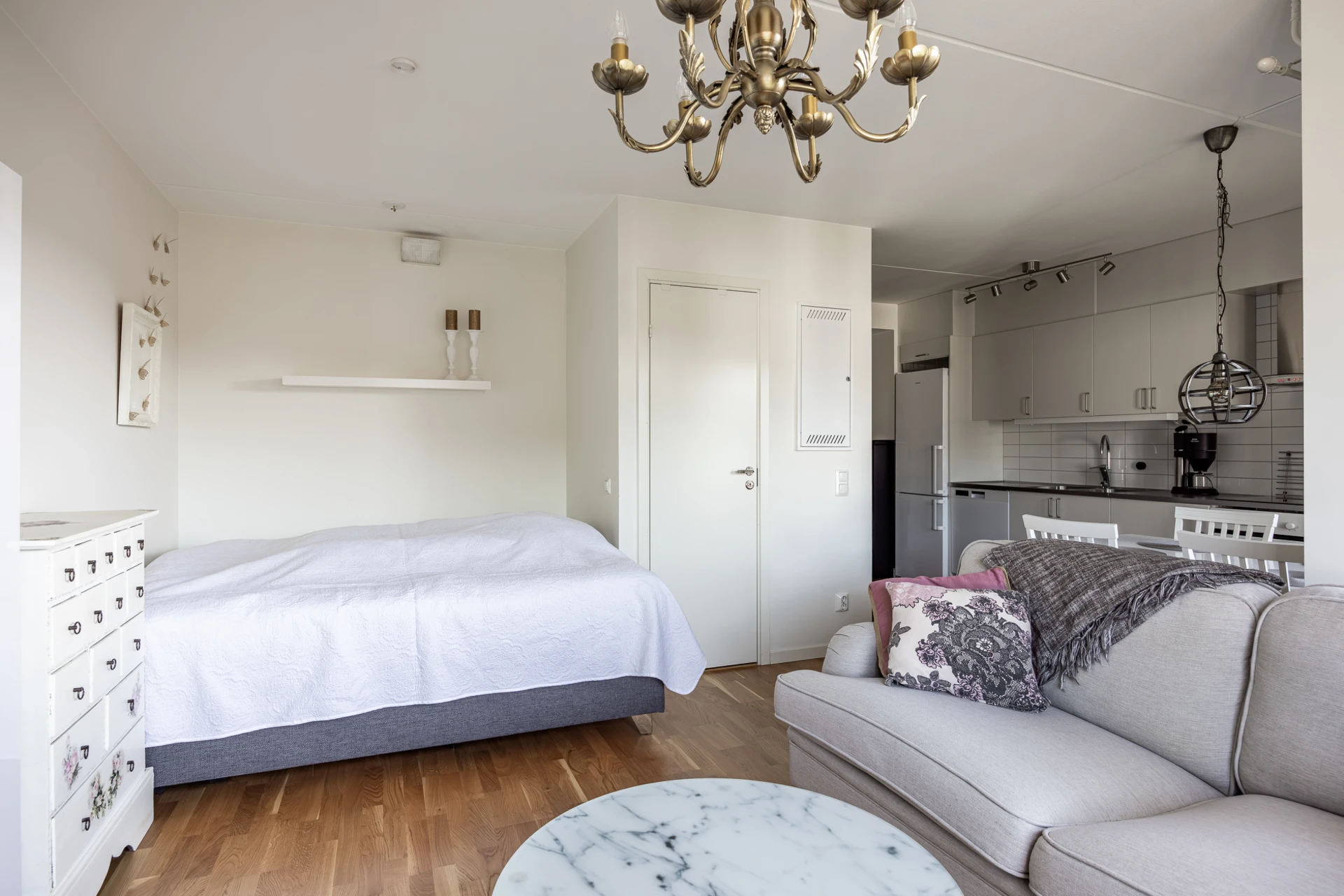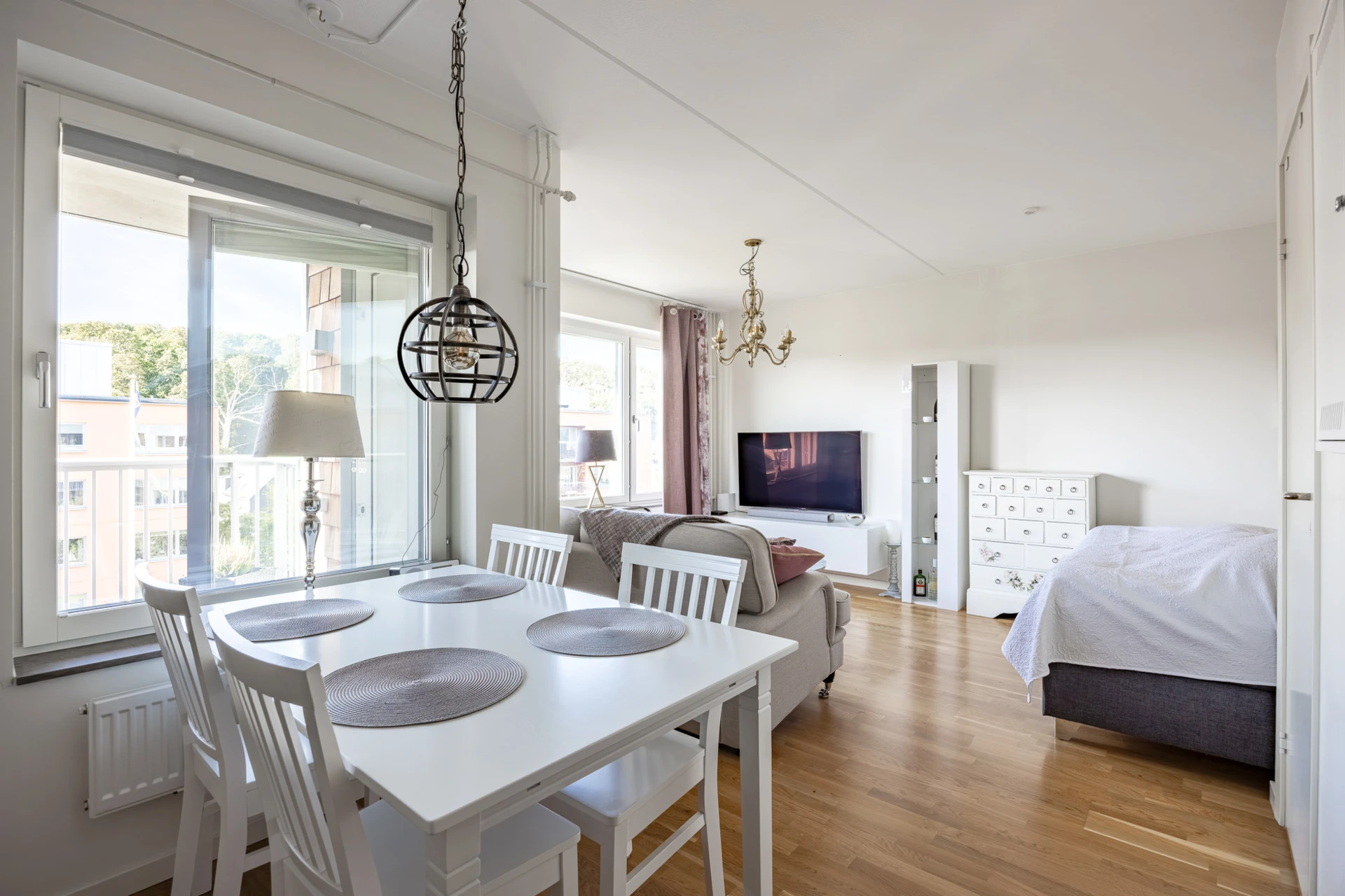 Äntligen en välplanerade enrumslägenhet högst upp i huset i expansiva Björkris. Ett kvadratsmart hem med sociala ytor, sovalkov, vackert ljusinsläpp och stilren design. Lägenheten erbjuder kök och vardagsrum i en öppen planlösning med en naturligt placerad matplats och bra förvaringsmöjligheter. Bostadens balkong med sitt västliga läge höst upp i huset ger solchanser från eftermiddag till solen sänker sig bakom trätopparna Som gjort för att njuta av kvällssolen i goda vänners lag.