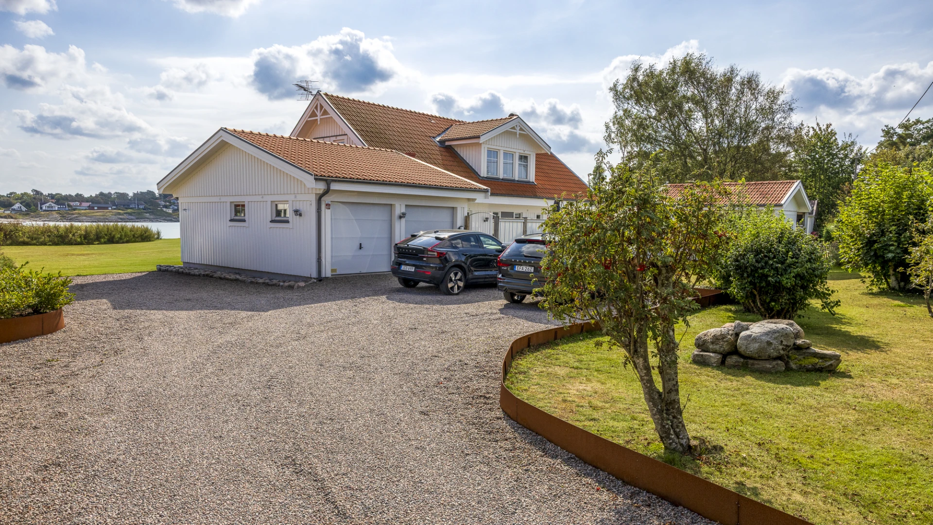 Bilen parkeras enkelt i dubbelgarage samt på uppfart