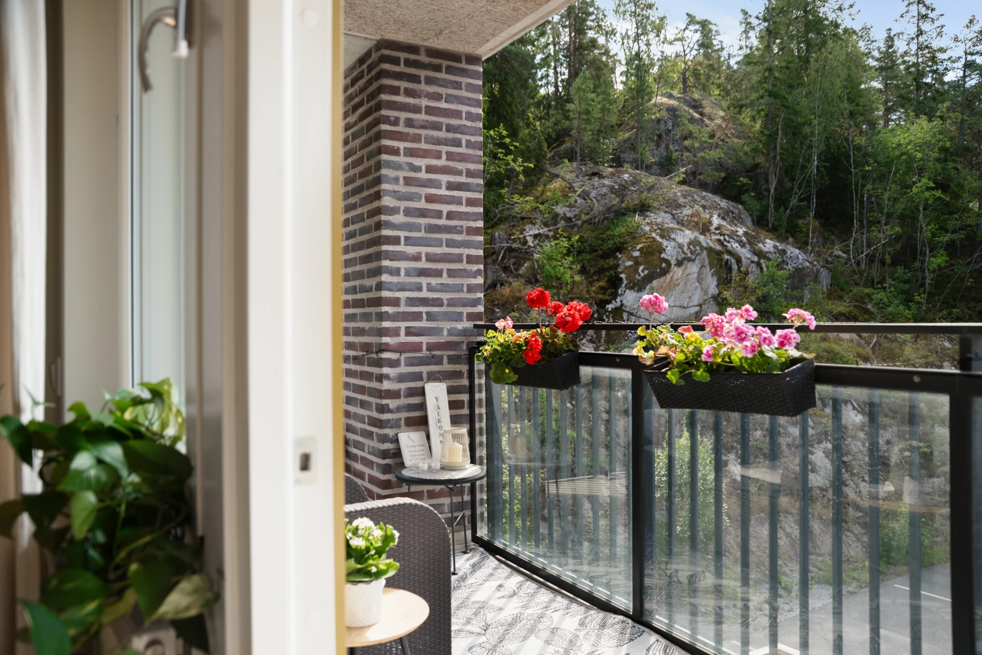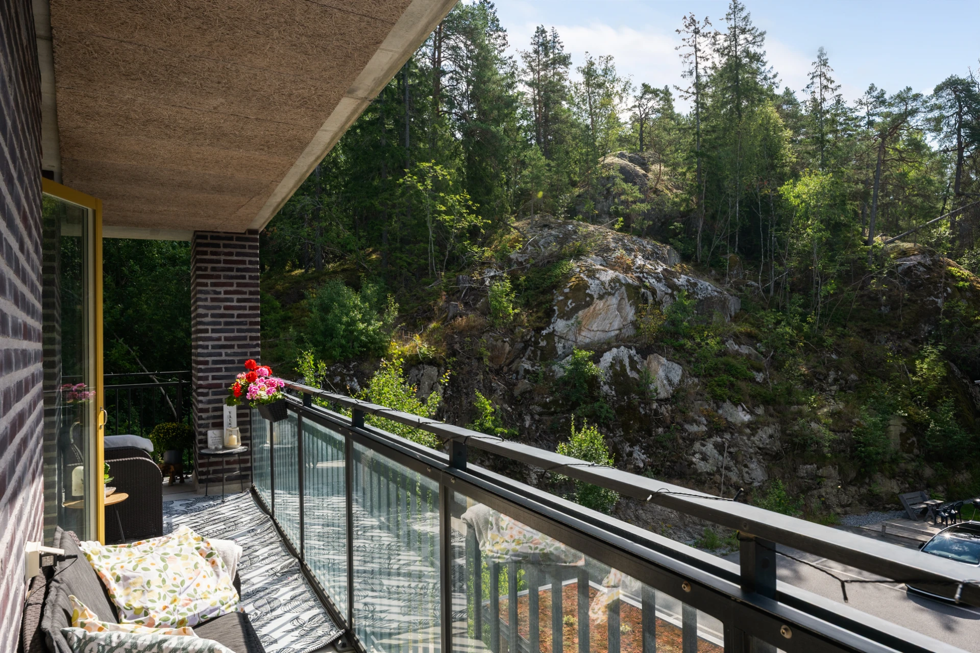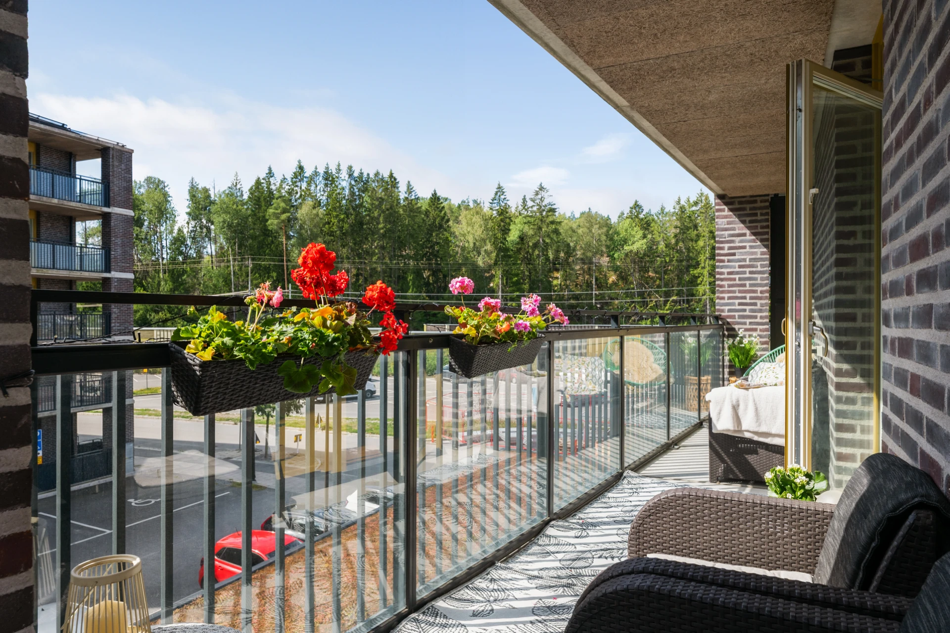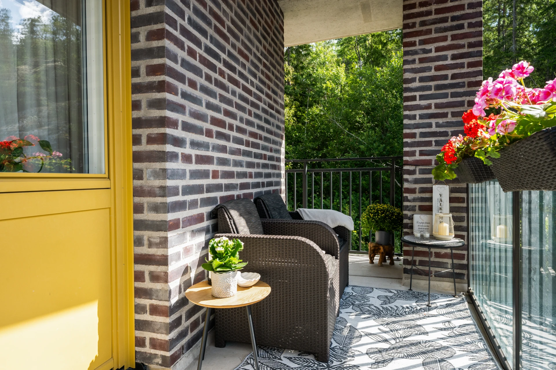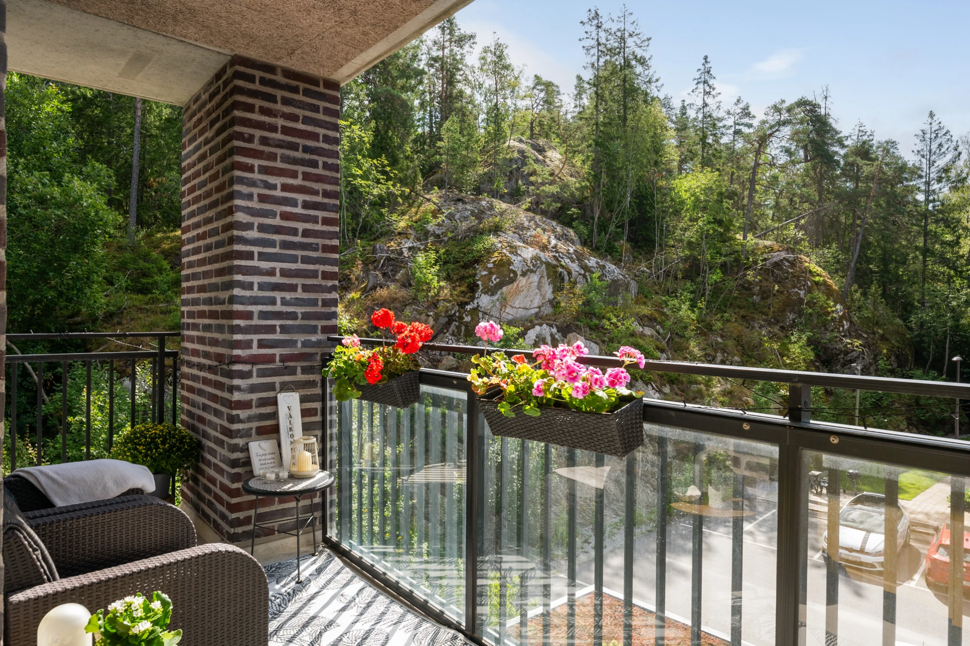 Hörntvåa med fantastiskt läge i omtyckta Vega. Enorm hörnbalkong i soligt läge inbäddad i grönska.