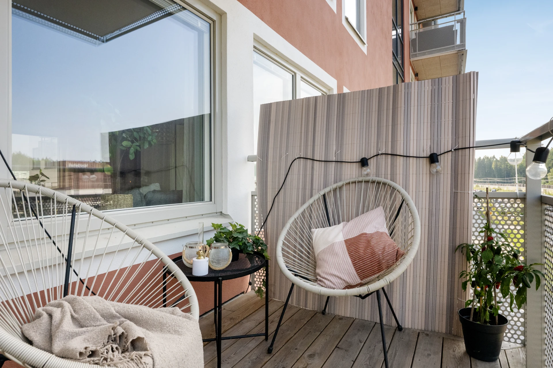 - Balkong i fritt läge med eftermiddags och kvällsol