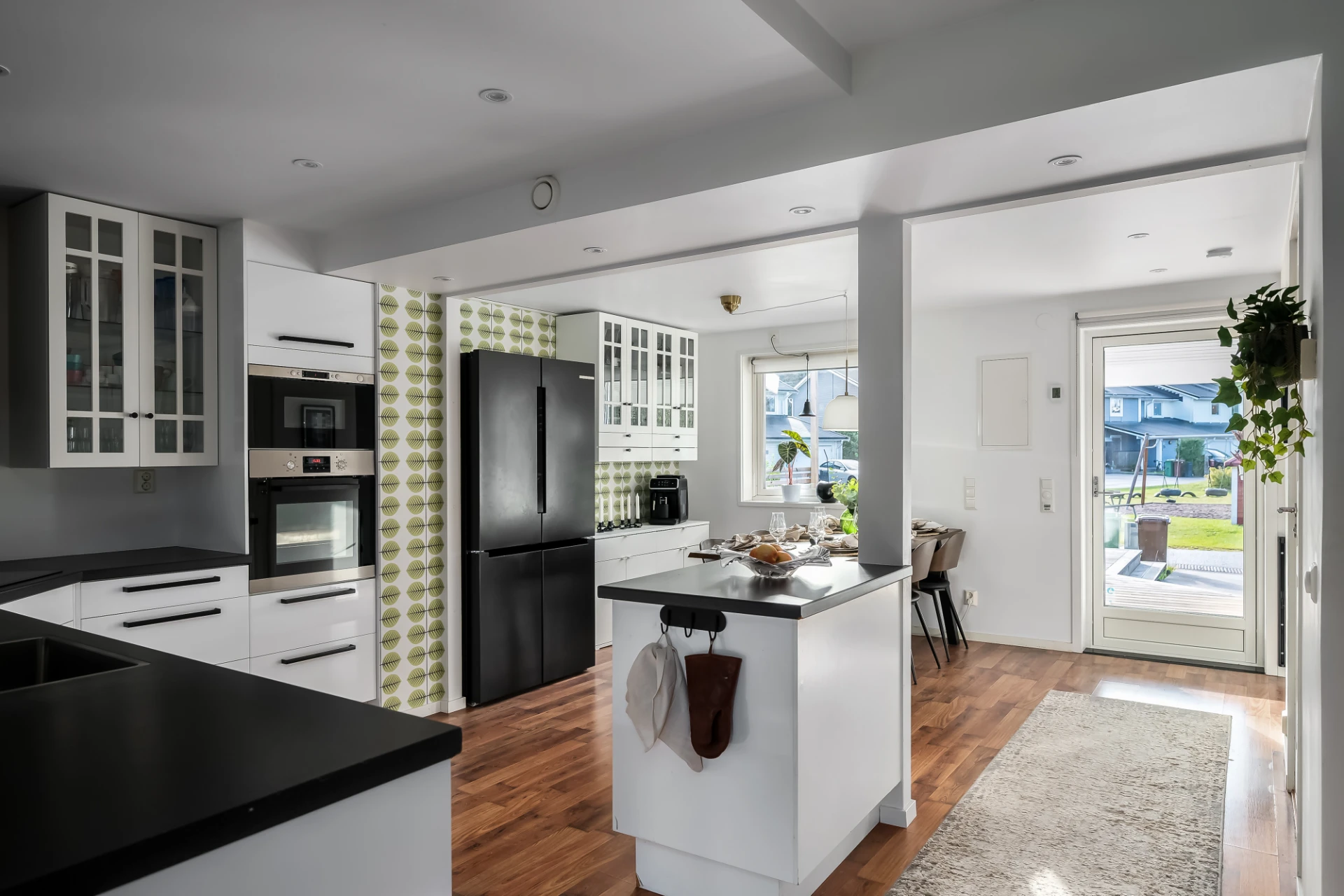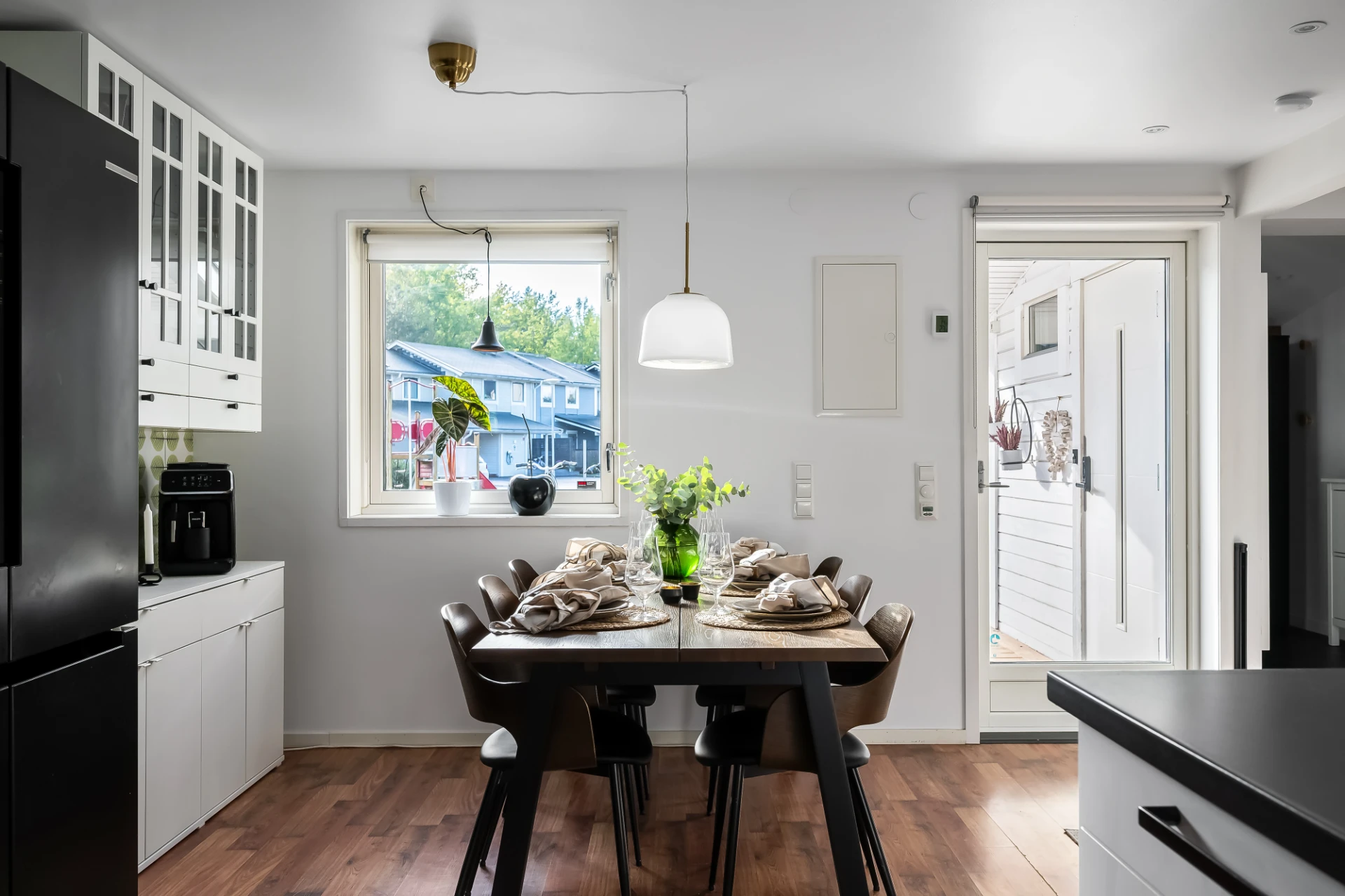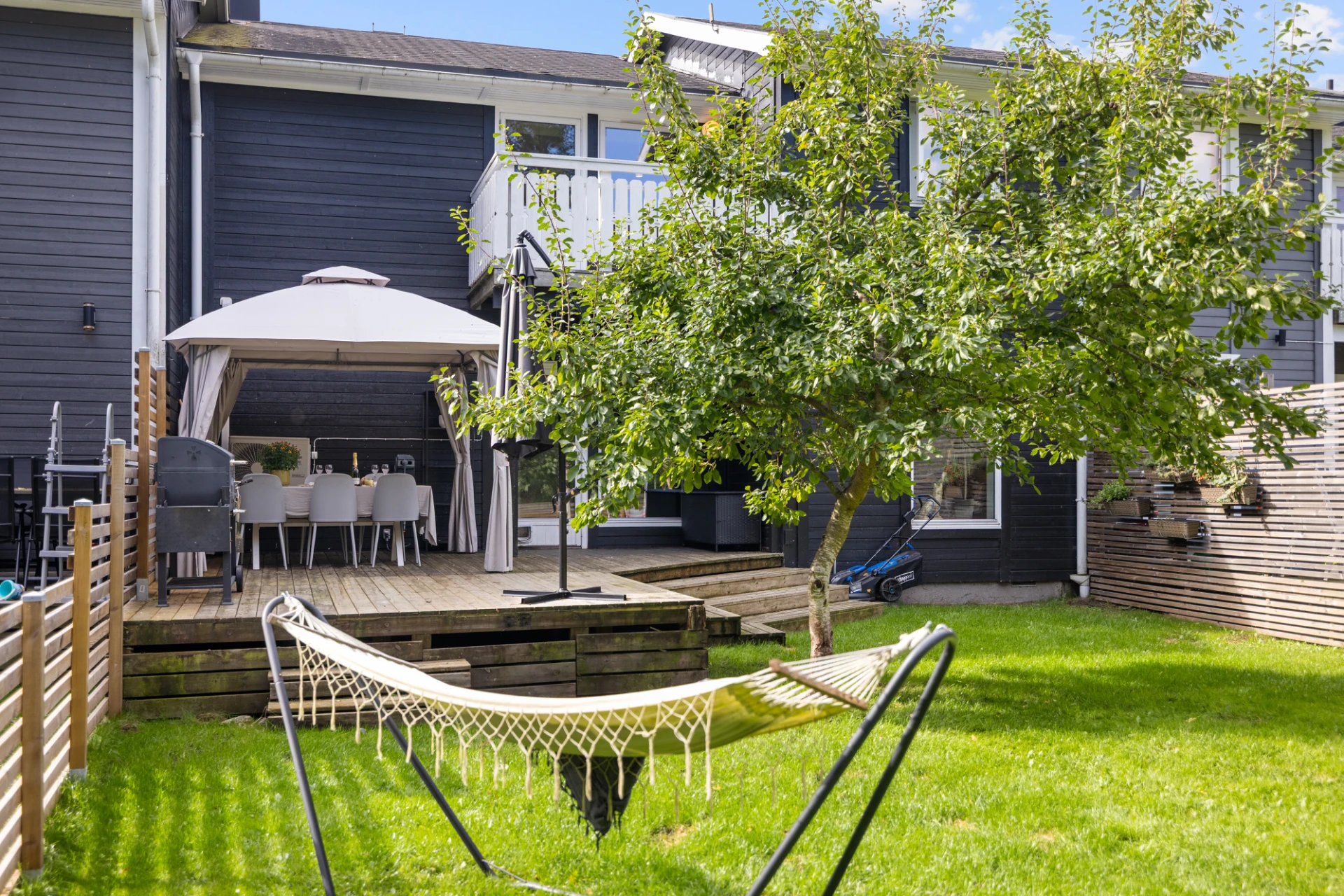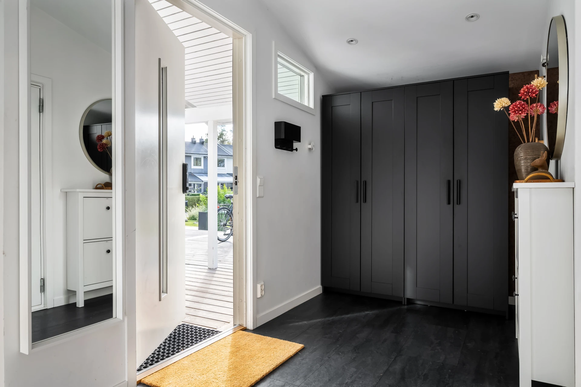 Här möts du av moderna ytskikt, genomtänkta materialval och en planlösning som gör vardagen enkel. På entréplan finns kök och matplats som flyter ihop med vardagsrummet, där de sociala ytorna blir självklara samlingspunkter. På entrévåningen har du även en fin tvättstuga med två stycken kombinerade tvätt/torkmaskiner. Via vardagsrummet når du uteplatsen på baksidan, perfekt för sommarens grillkvällar.