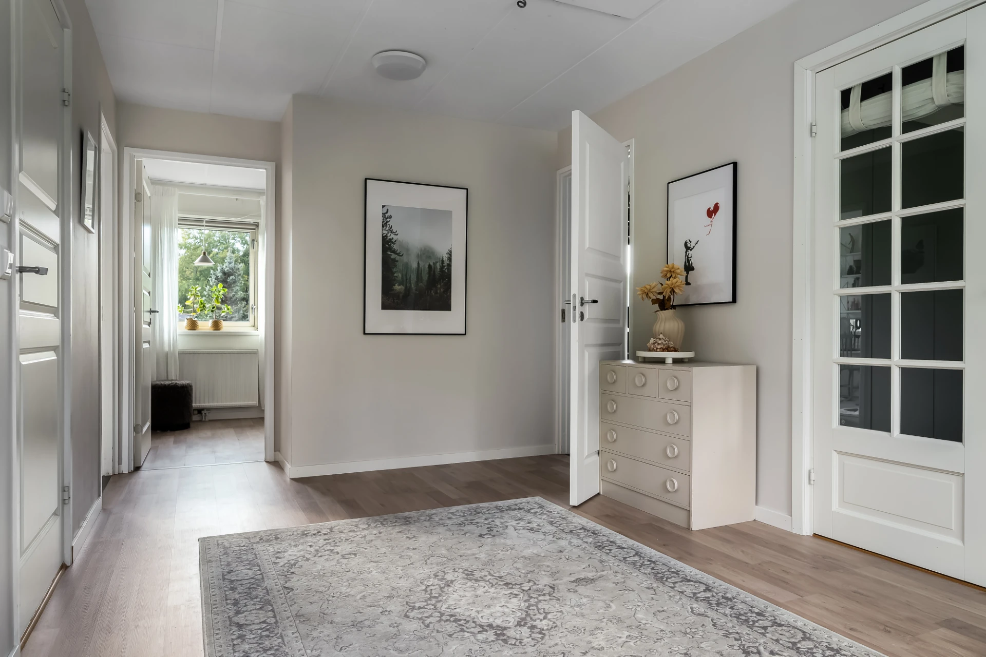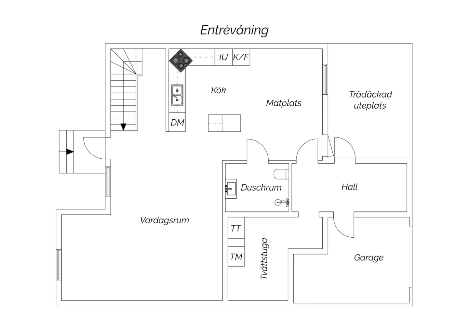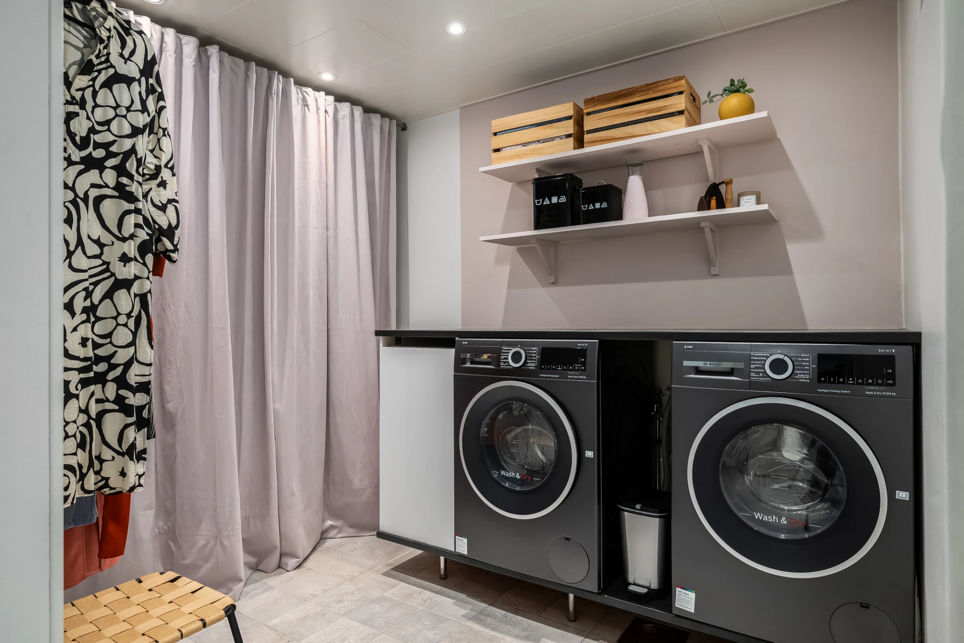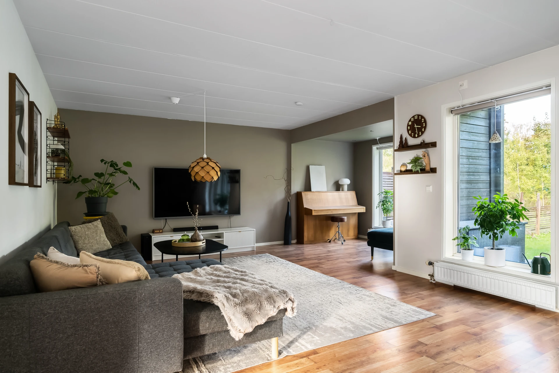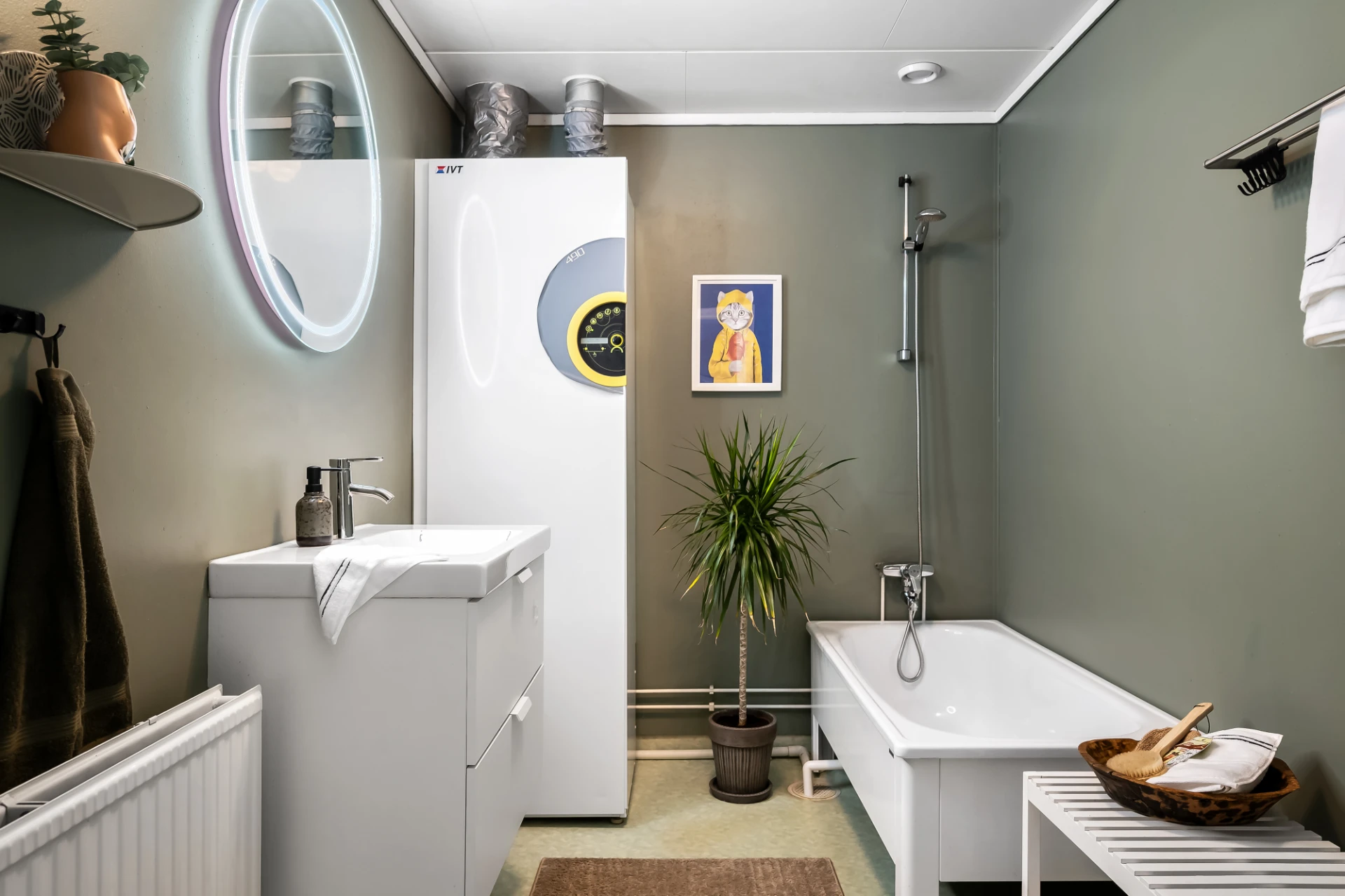 Här möts du av moderna ytskikt, genomtänkta materialval och en planlösning som gör vardagen enkel. På entréplan finns kök och matplats som flyter ihop med vardagsrummet, där de sociala ytorna blir självklara samlingspunkter. På entrévåningen har du även en fin tvättstuga med två stycken kombinerade tvätt/torkmaskiner. Via vardagsrummet når du uteplatsen på baksidan, perfekt för sommarens grillkvällar.