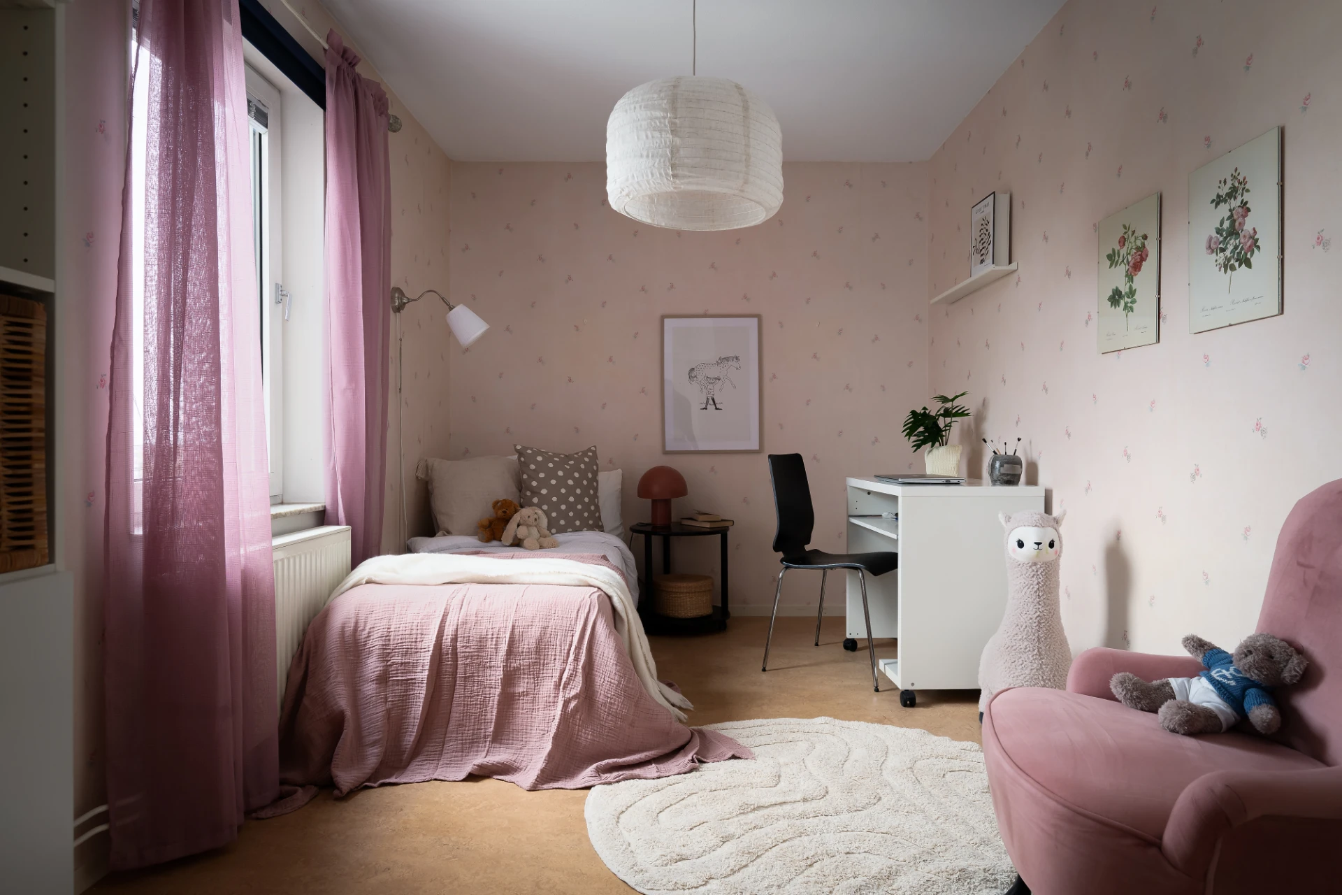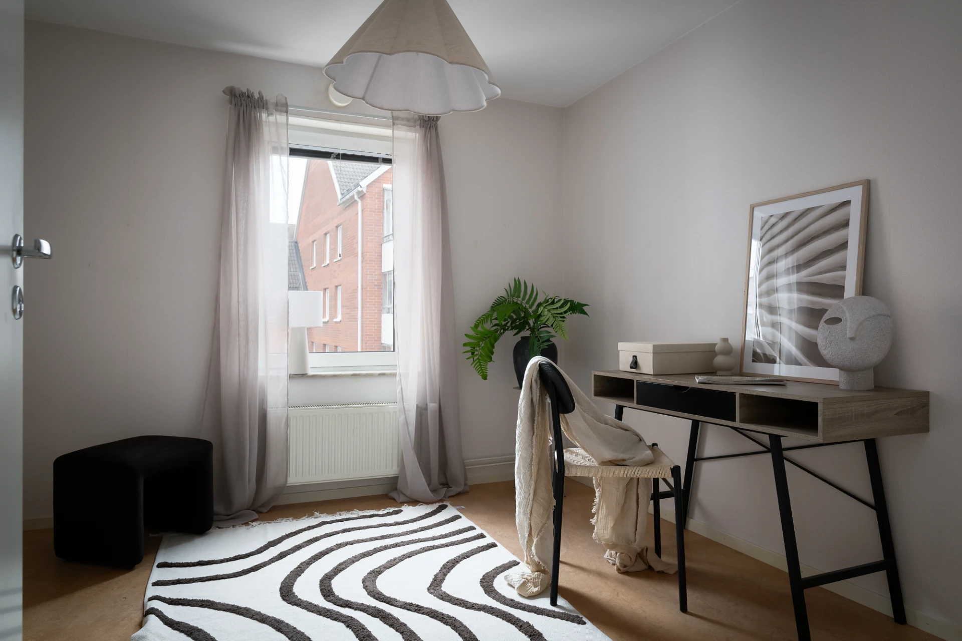 Två välplanerade sovrum med plats för säng, skrivbord och förvaring – perfekta som barnrum, gästrum eller hemmakontor. Båda rummen har fönster med bra ljusinsläpp och lugnt läge.