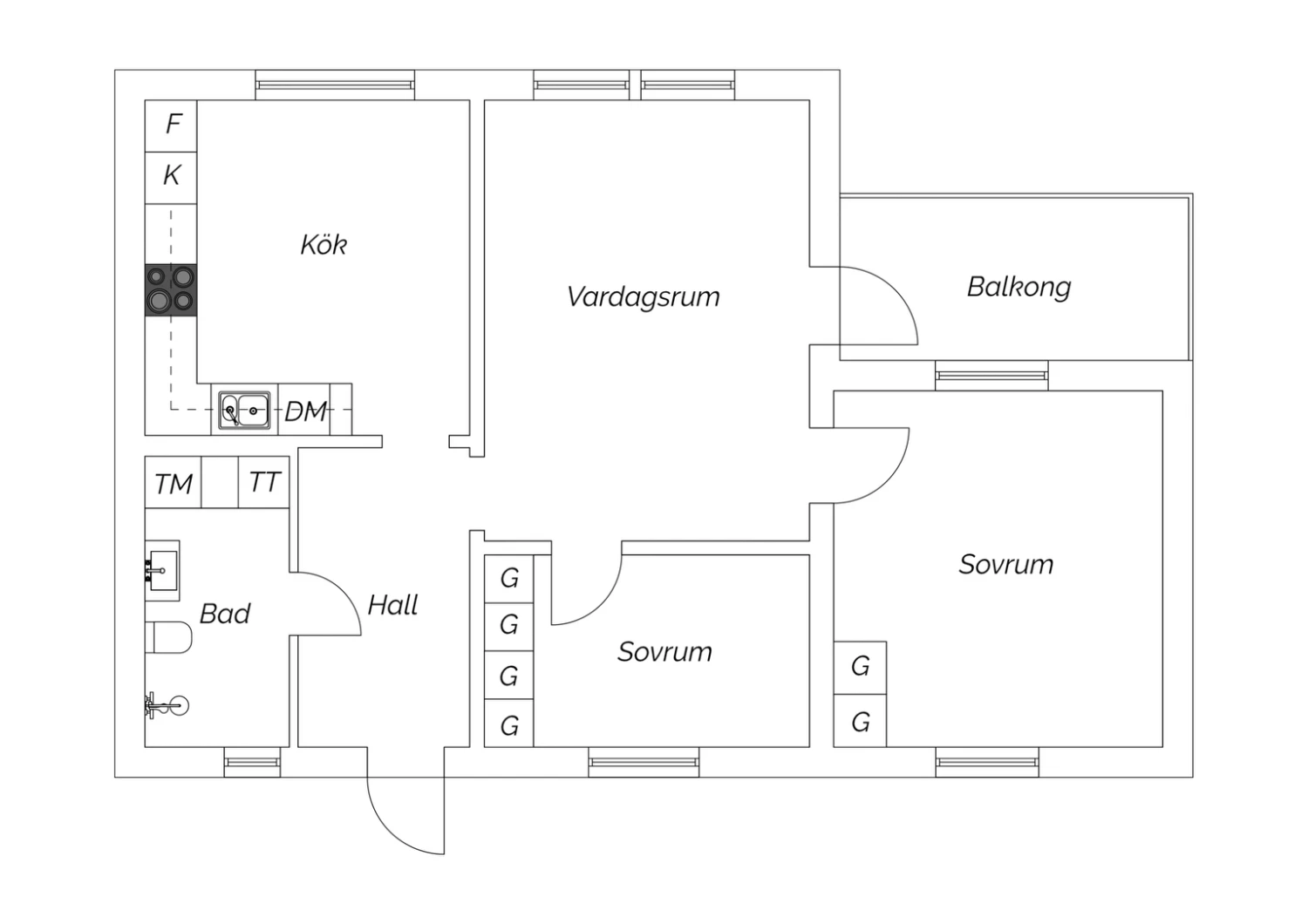 Lägenheten har två separata sovrum, båda med bra storlek och goda förvaringsmöjligheter i form av garderober. Rummen är lättmöblerade och kan anpassas efter behov – oavsett om det gäller barnrum, gästrum eller hemmakontor.
