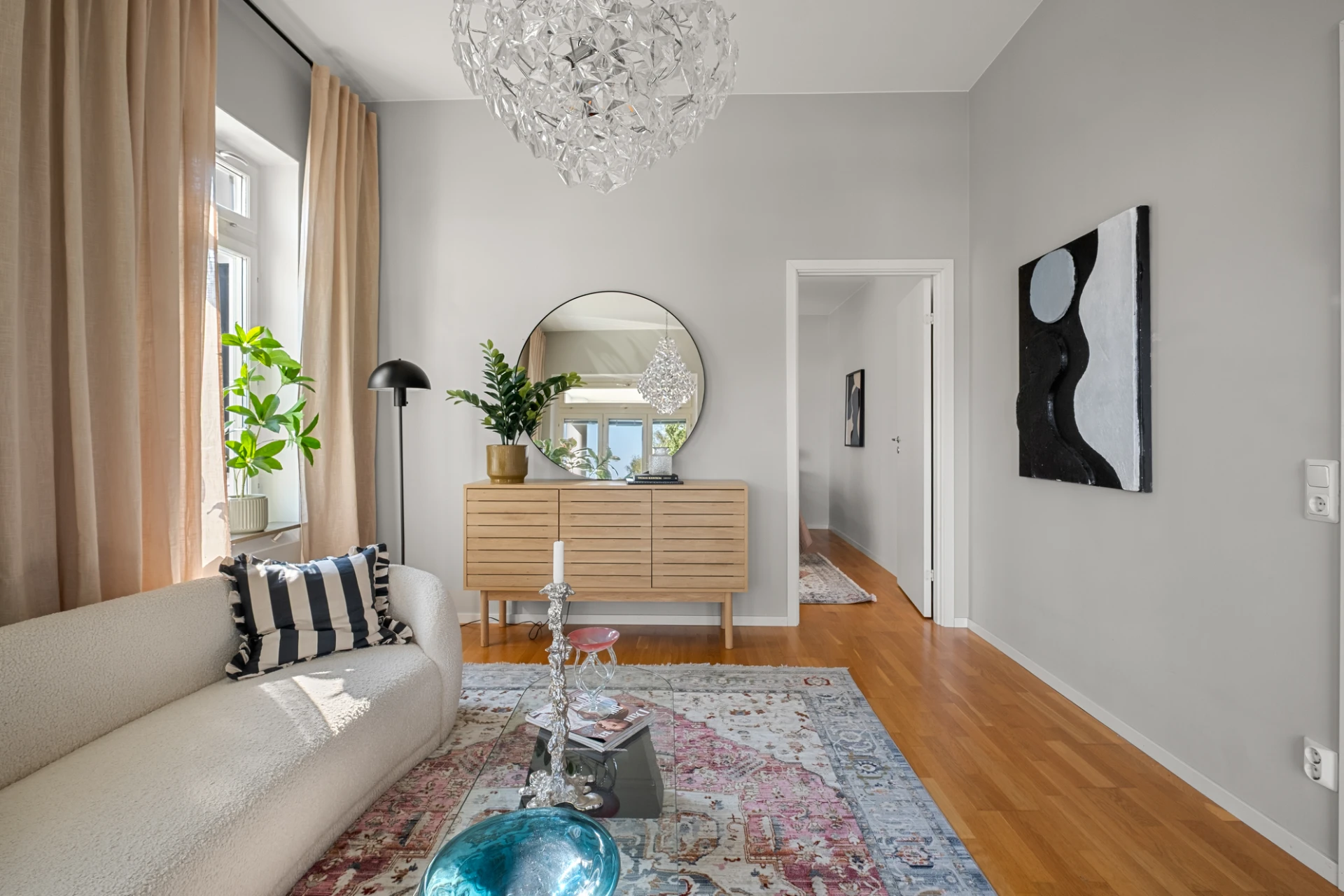Välkommen till denna ljusa och välplanerade tvåa om 56 kvm med generös takhöjd byggd 2009, som kombinerar modern design med genomtänkt funktion. Här bor du i ett attraktivt hörnläge med fönster i flera väderstreck som släpper in ett fantastiskt ljus under hela dagen. Ett boende som passar perfekt både för paret och singeln.