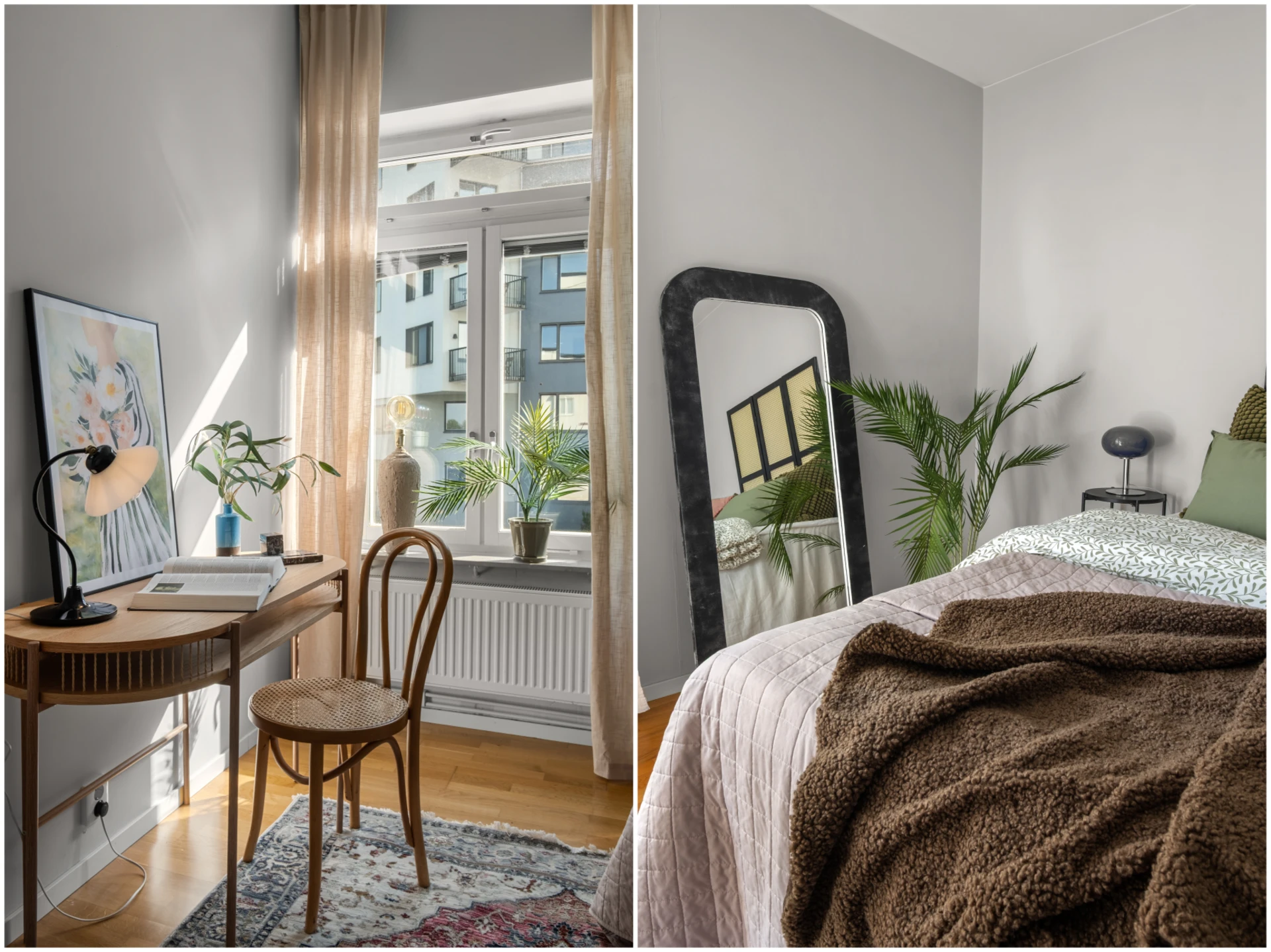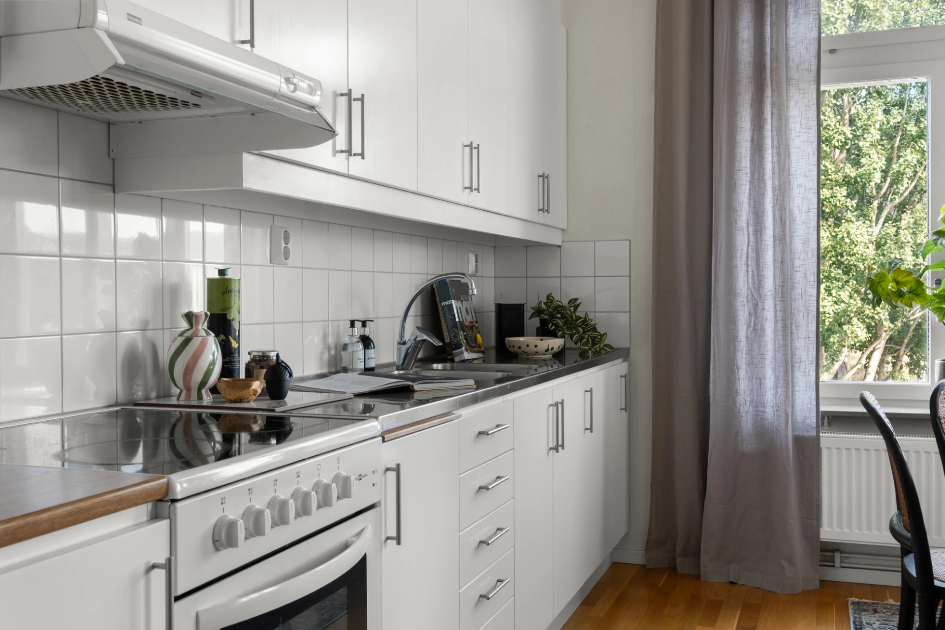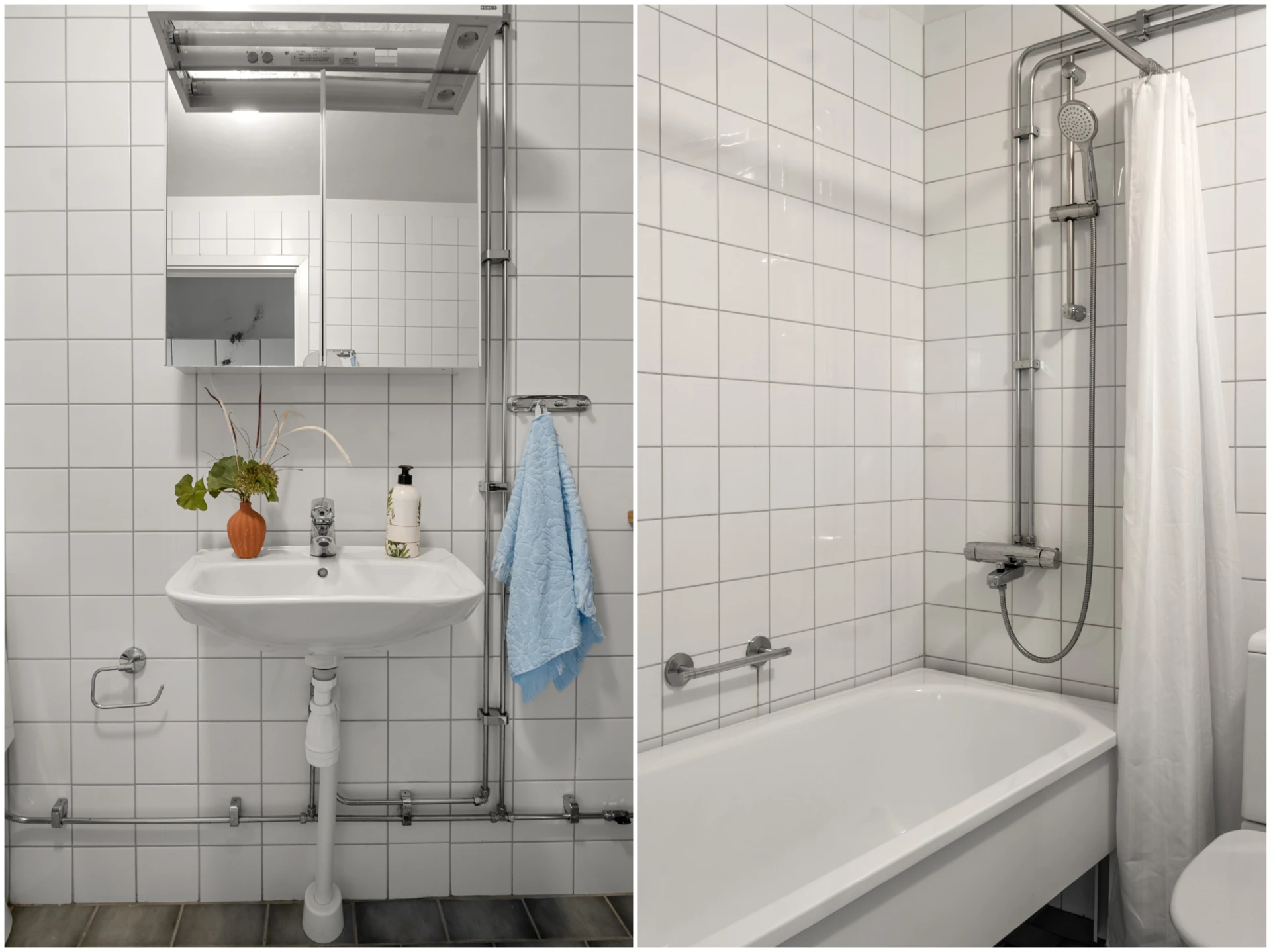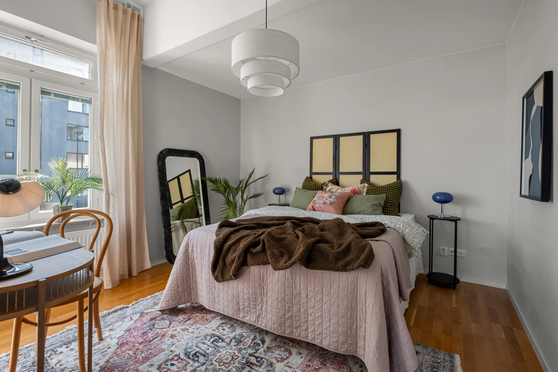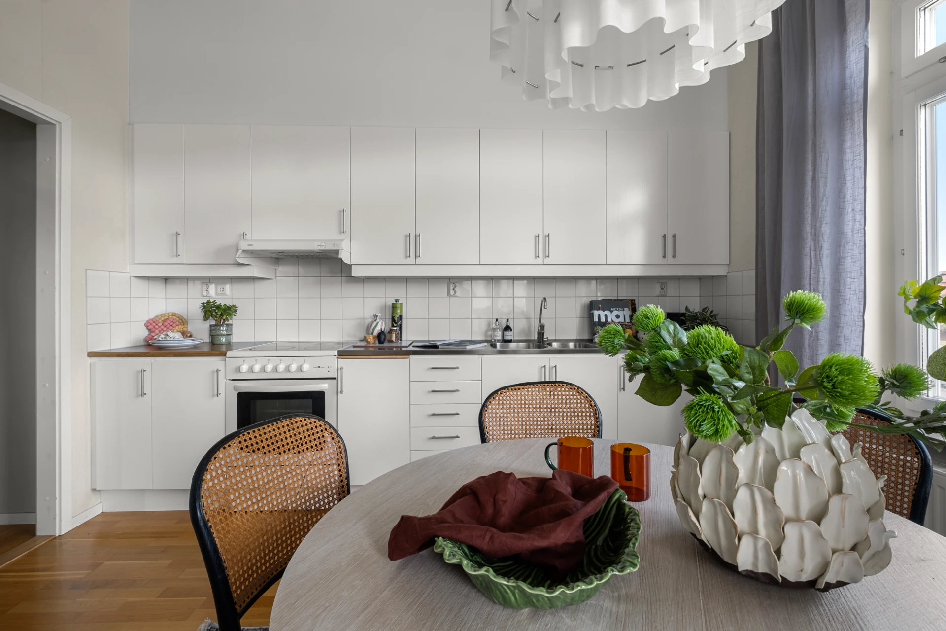Enligt lägenhetsförteckningen är bostaden 1 RoK. Disponeras idag som en 2 RoK.