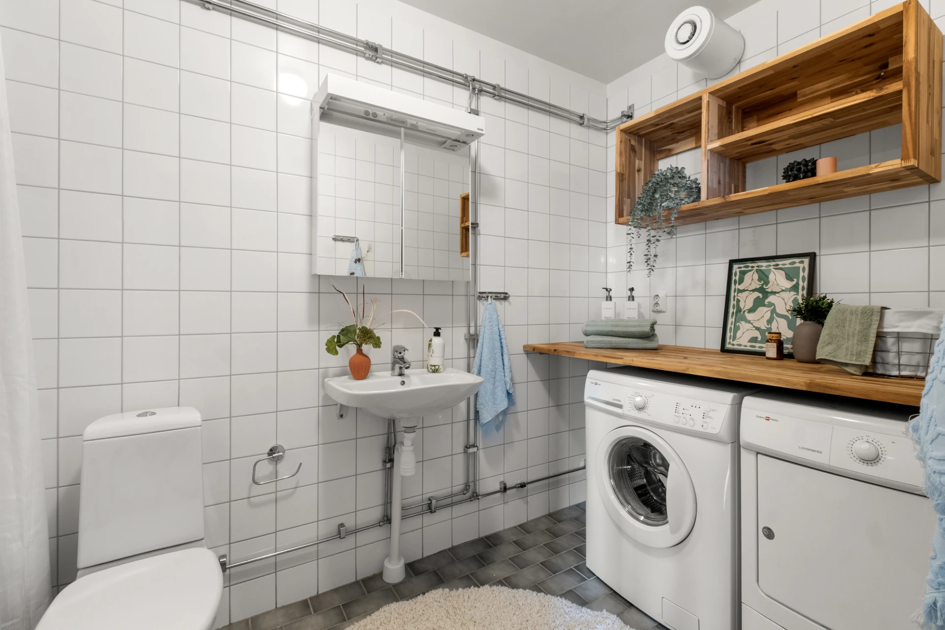 Föreningens gemensamma tvättstuga finns på Arkens väg 8, där bokar du även din tvättid på tavlan utanför med låscylindern.