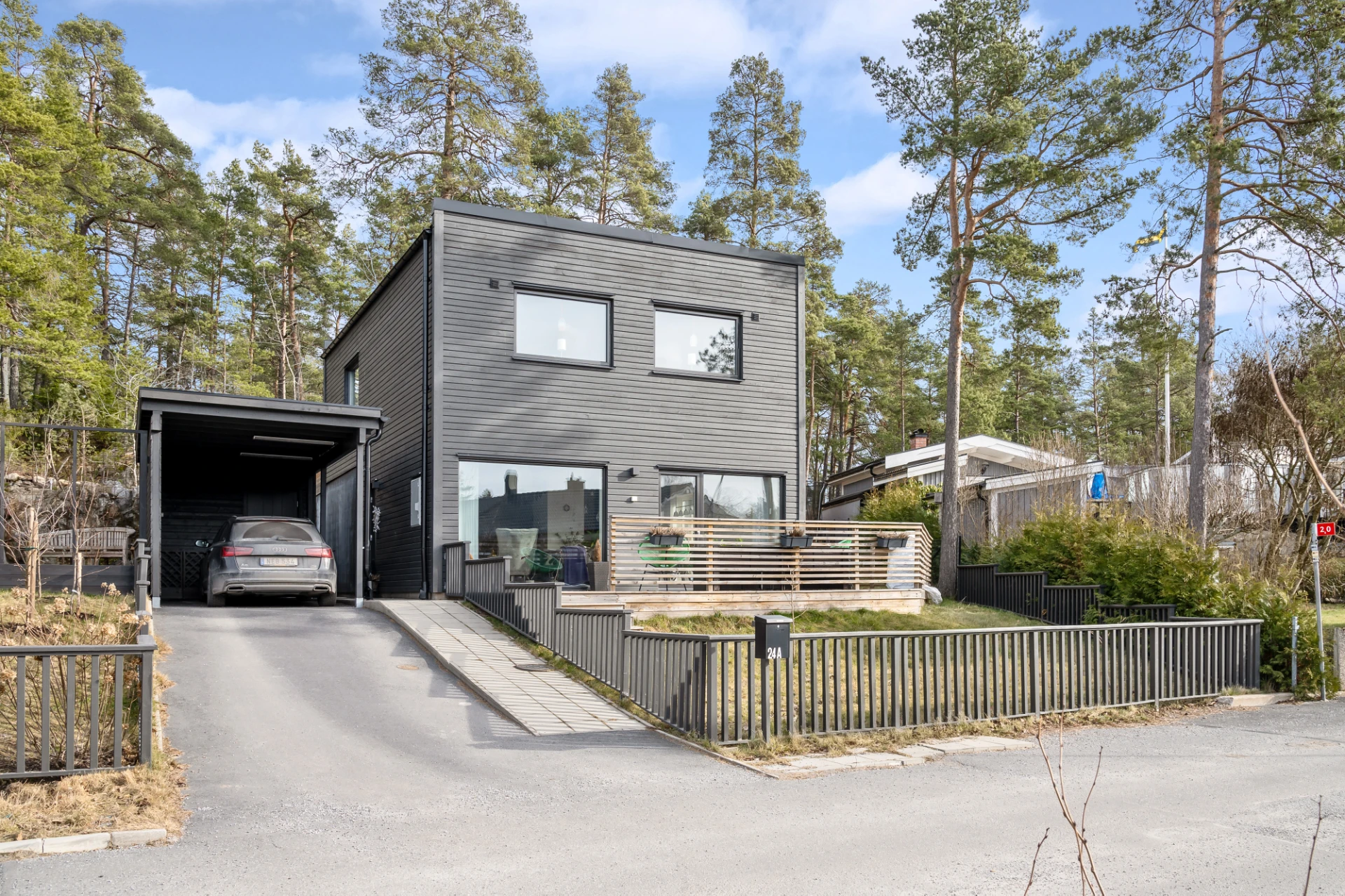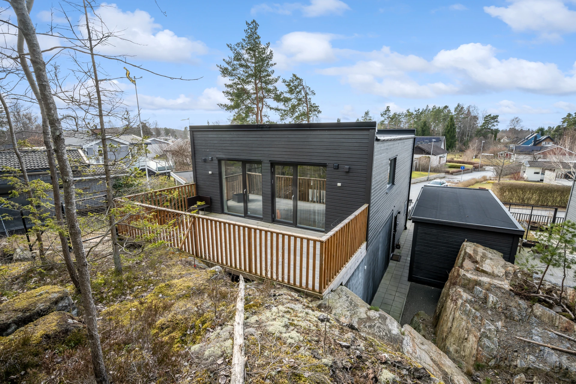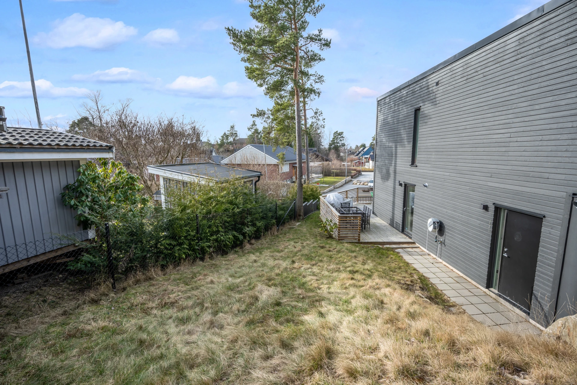 Bostadsrättsvilla byggd 2021 i tilltalande, stilren och modern funkisstil. Hörntomt. Med sina stora härliga fönsterpartier, uteplatser i insynsskyddade lägen, den fräscha och påkostade interiören och den smarta och flexibla planlösningen kan man inte göra annat än att trivas här. Huset har 6 rum varav 4 sovrum. Kök, vardagsrum, badrum och tvättstuga på entréplanet. På övre planet finns 4 sovrum, allrum samt ytterligare ett badrum. Huset ligger på en lugn återvändsgata och på baksidan kan man kliva rätt ut i naturen. En fantastisk miljö att bo i. På gångavstånd finns goda kommunikationer i form av pendeltåg och bussar för att enkelt kunna ta sig mot t ex centrala Stockholm. Söker du något utöver det vanliga är detta sannolikt något för just dig. För mer information, välkommen att kontakta ansvarig mäklare Urban Flynner