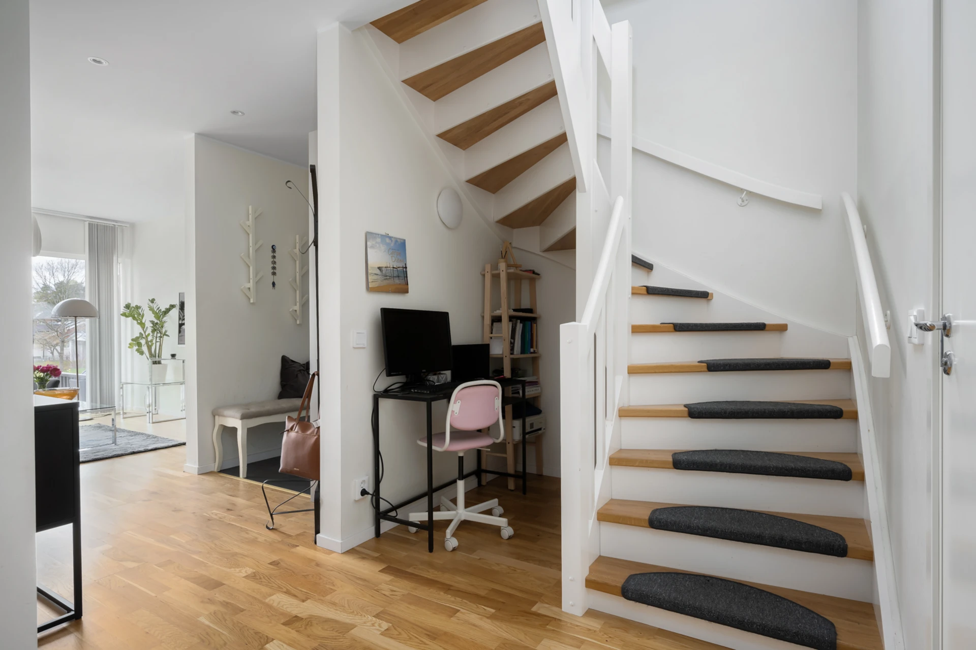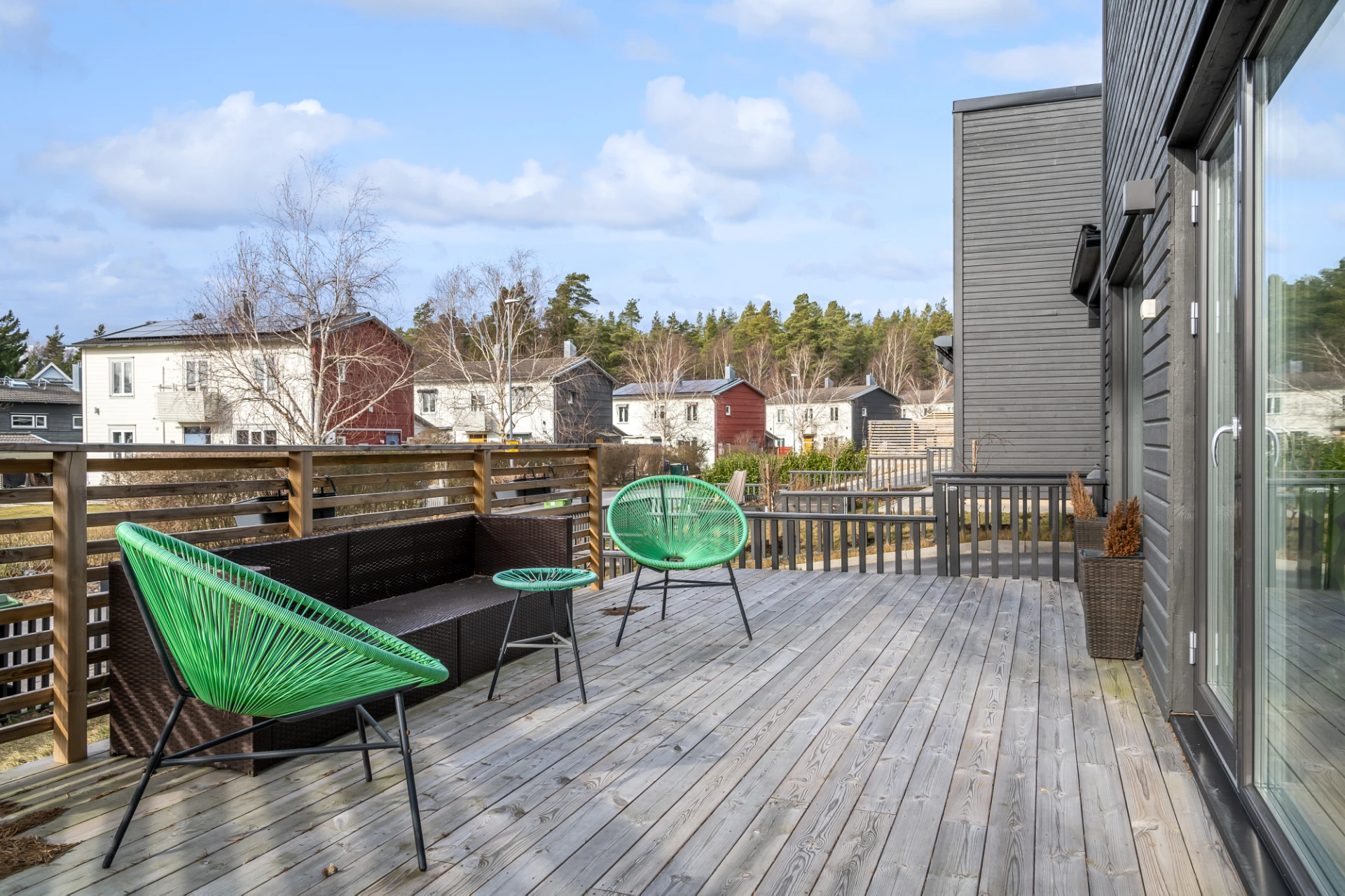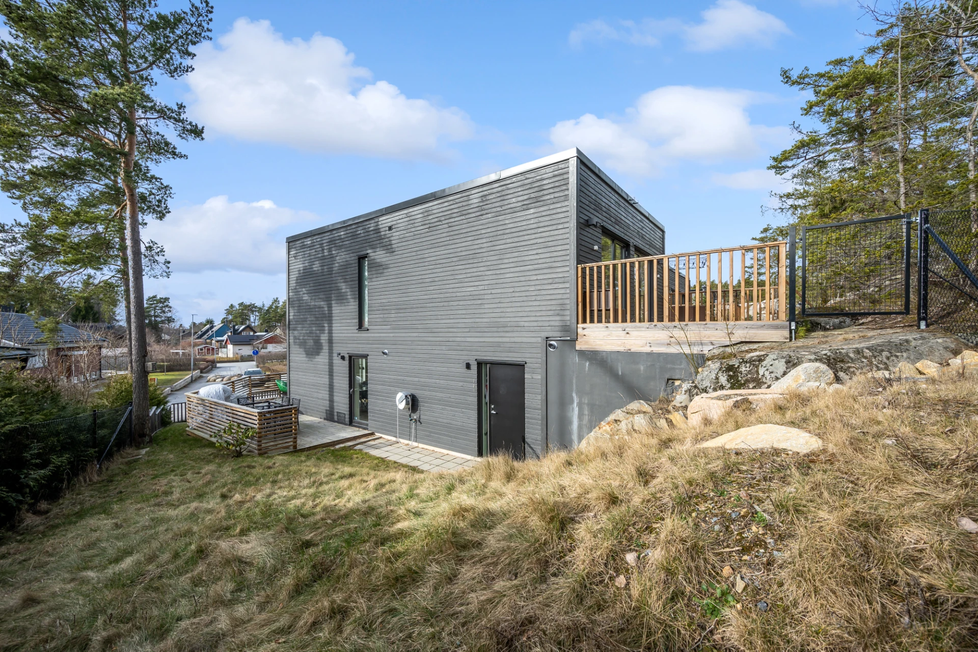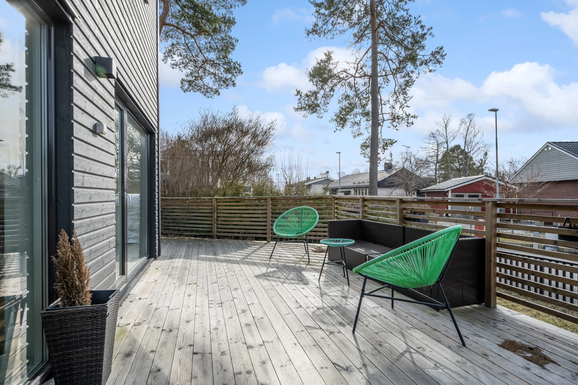 Bostadsrättsvilla byggd 2021 i tilltalande, stilren och modern funkisstil. Hörntomt. Med sina stora härliga fönsterpartier, uteplatser i insynsskyddade lägen, den fräscha och påkostade interiören och den smarta och flexibla planlösningen kan man inte göra annat än att trivas här. Huset har 6 rum varav 4 sovrum. Kök, vardagsrum, badrum och tvättstuga på entréplanet. På övre planet finns 4 sovrum, allrum samt ytterligare ett badrum. Huset ligger på en lugn återvändsgata och på baksidan kan man kliva rätt ut i naturen. En fantastisk miljö att bo i. På gångavstånd finns goda kommunikationer i form av pendeltåg och bussar för att enkelt kunna ta sig mot t ex centrala Stockholm. Söker du något utöver det vanliga är detta sannolikt något för just dig. För mer information, välkommen att kontakta ansvarig mäklare Urban Flynner